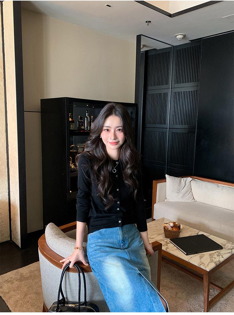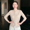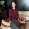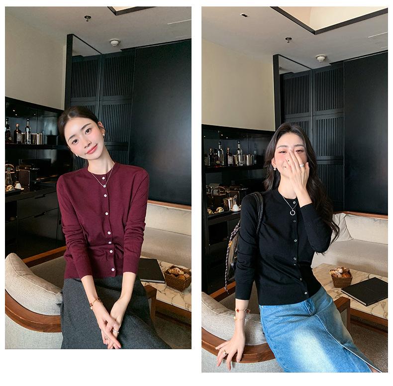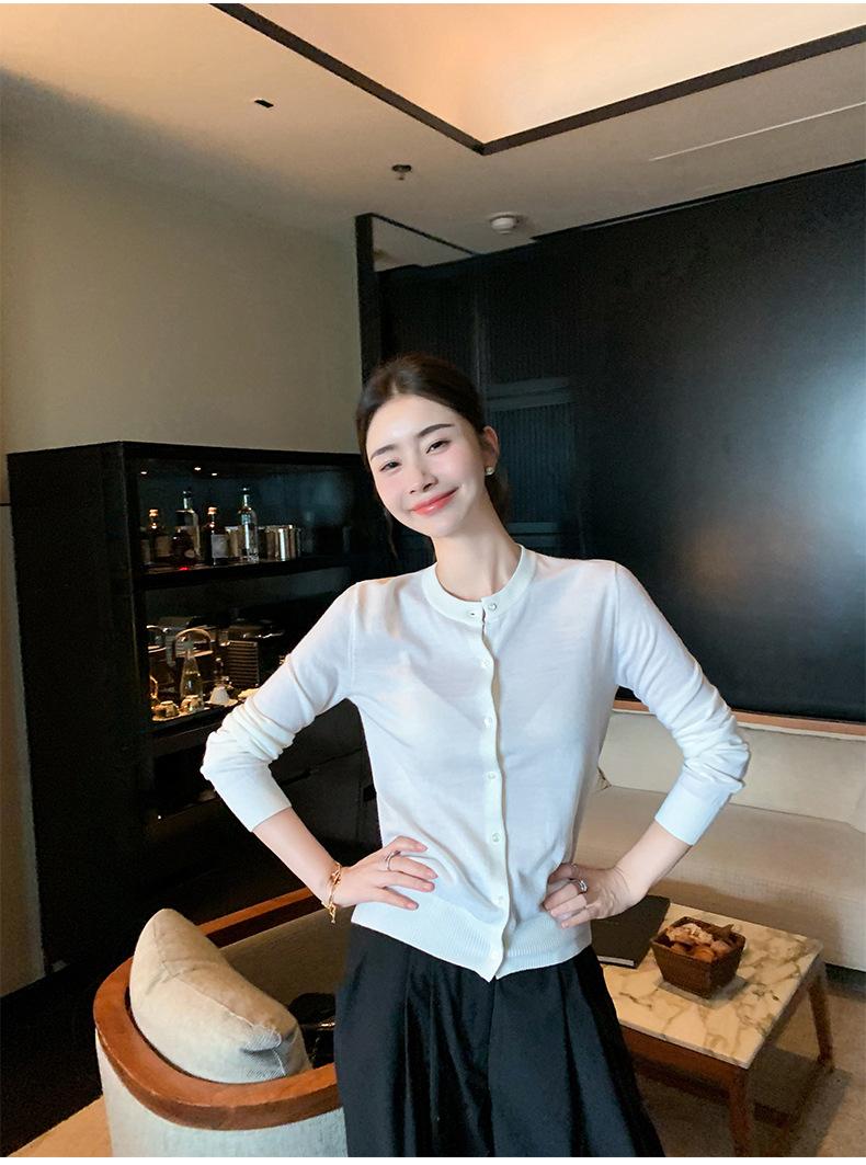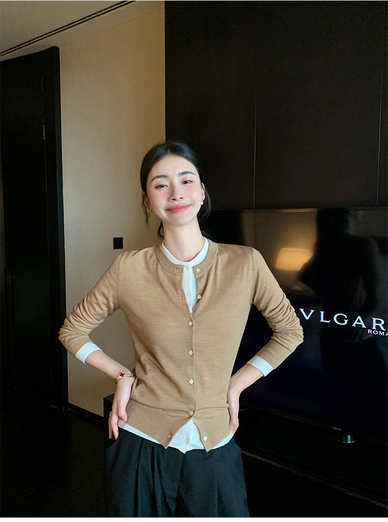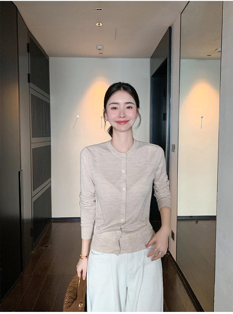 Cárdigan de Lana para Mujer 100% Lana Pura Hilo Alemán Yangtze Color Sólido Cuello Redondo Sencillo Abrigo Suéter Tejido