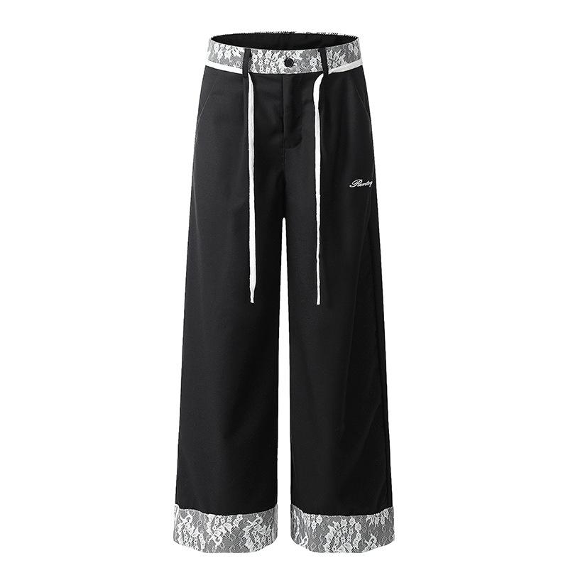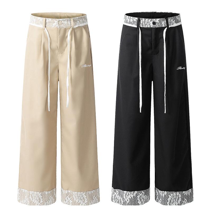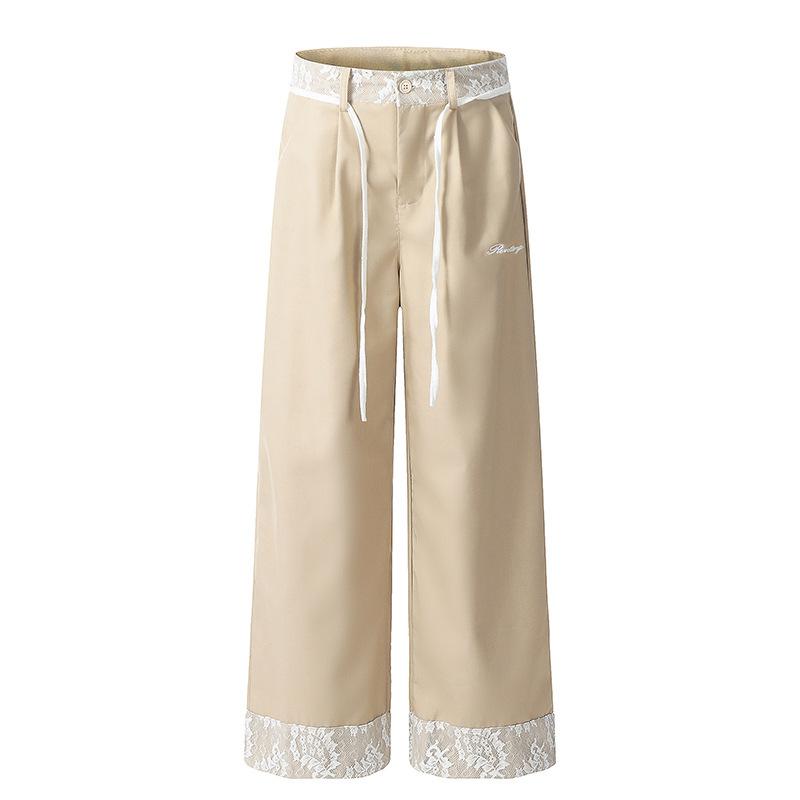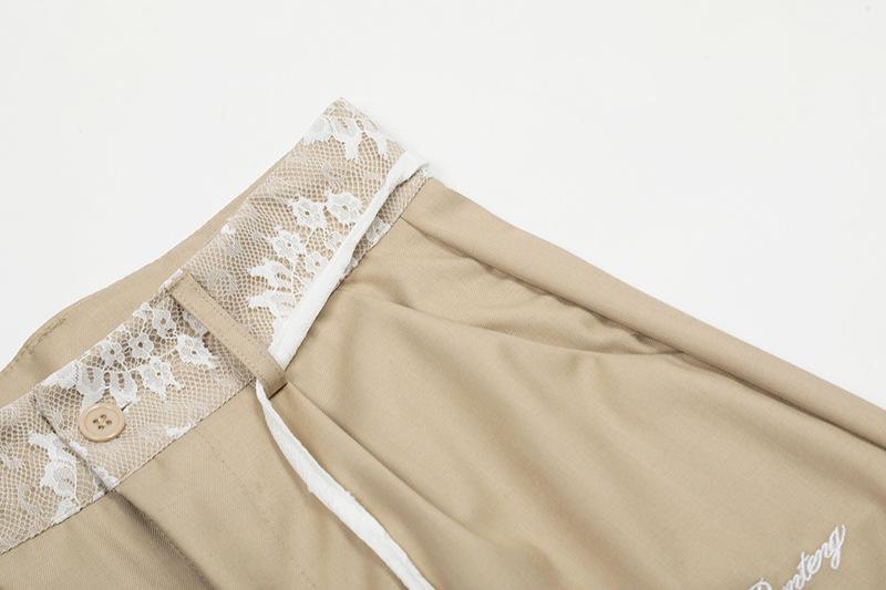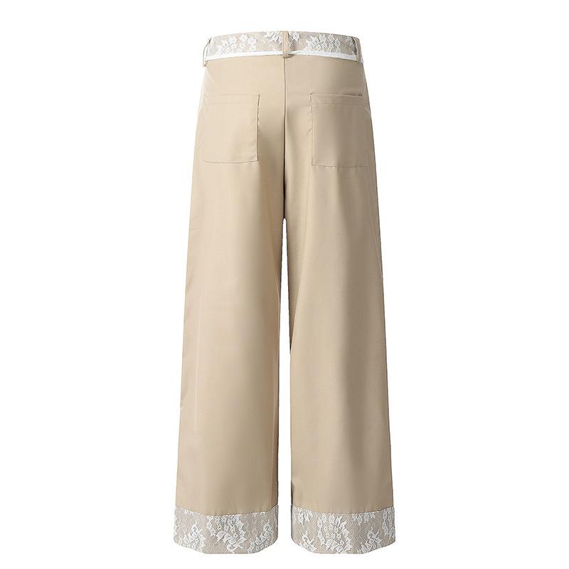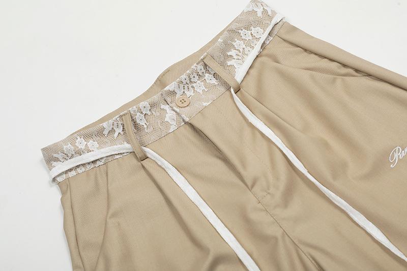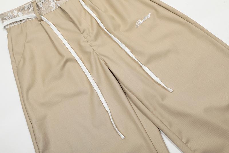 2025 Nuevo Traje Nicho Retro con Encaje para Mujer con Pantalones Casuales Rectos Holgados