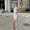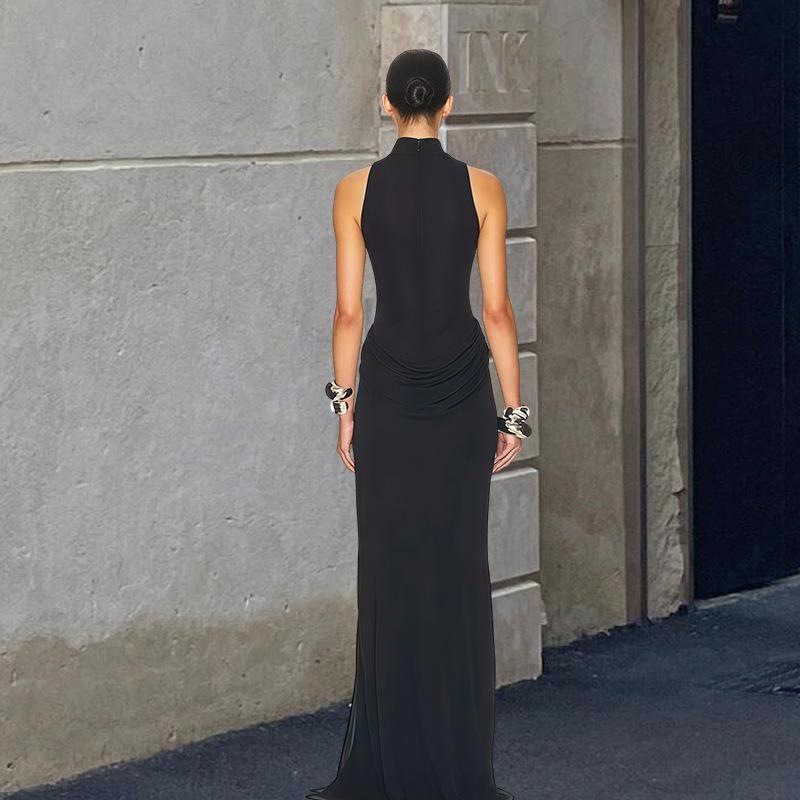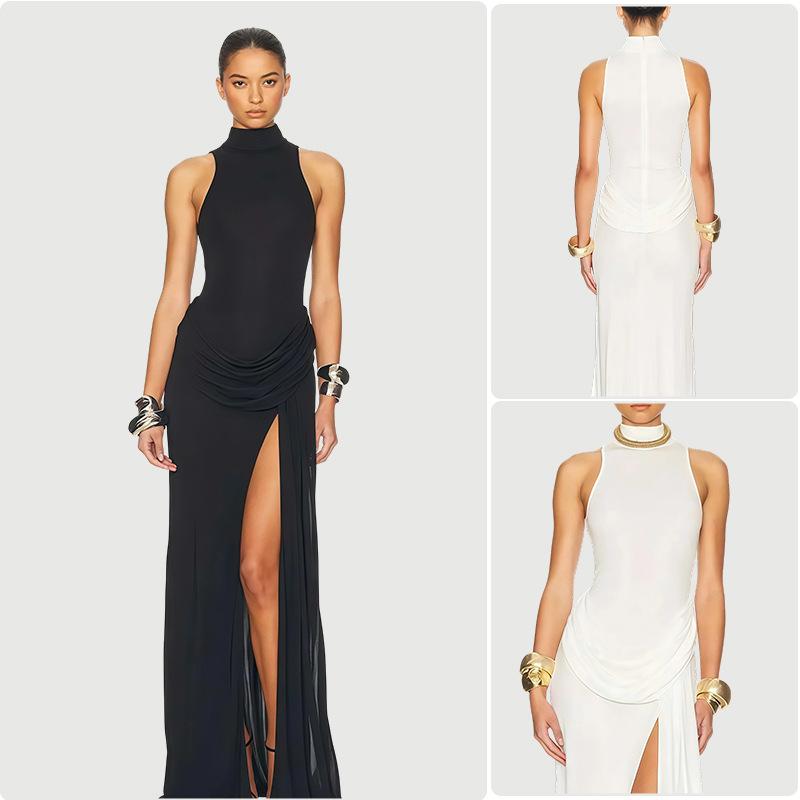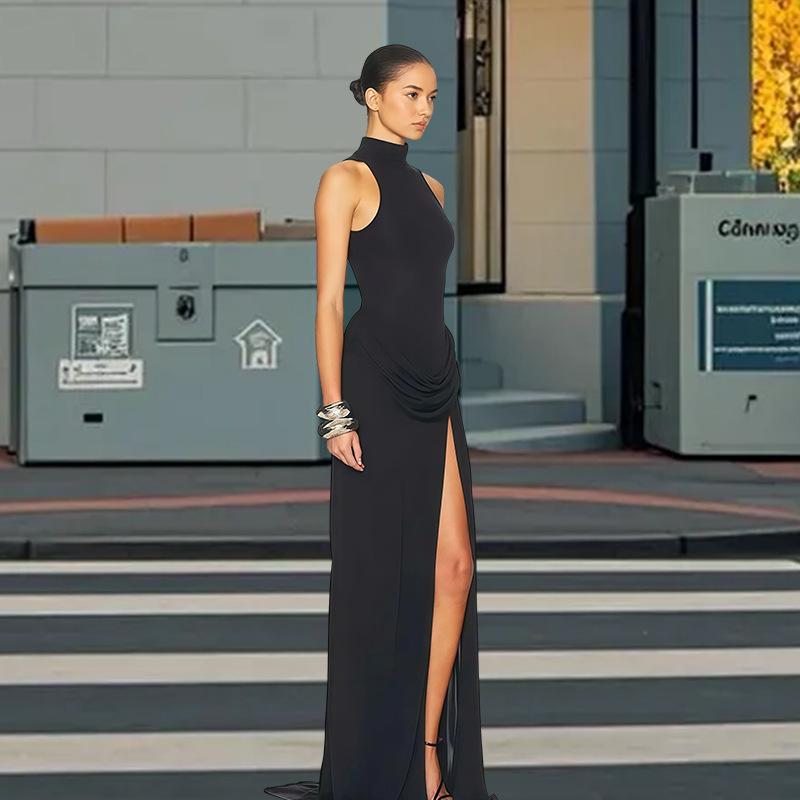 Amazon europeo y americano transfronterizo 2025 otoño nuevo vestido halter con abertura ropa de mujer sexy halter sin mangas