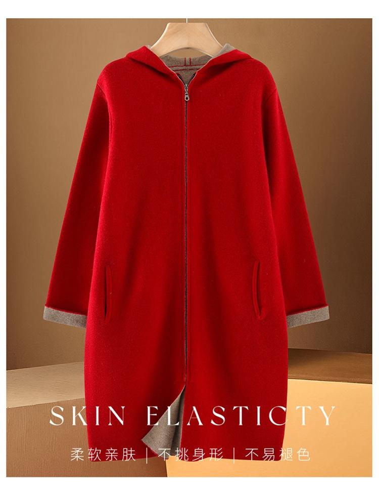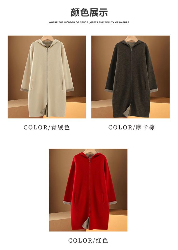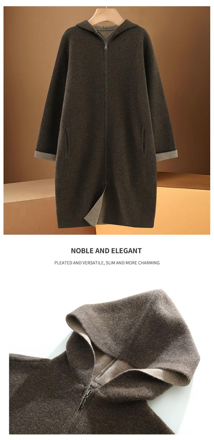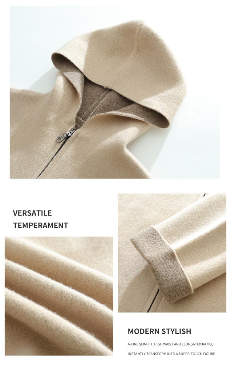 Cárdigan de Lana 100 Pura con Capucha de Largo Medio para Mujer Abrigo Grueso Bicolor de Capa de Aire Ropa Exterior de Cachemira Holgada y Relajada