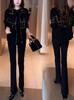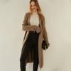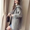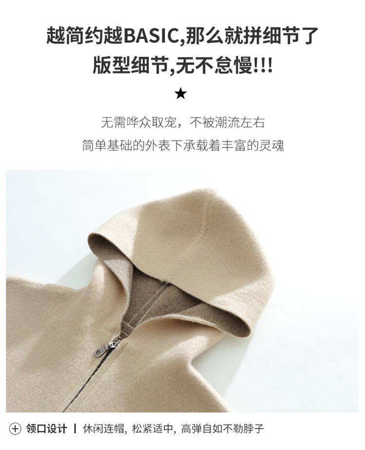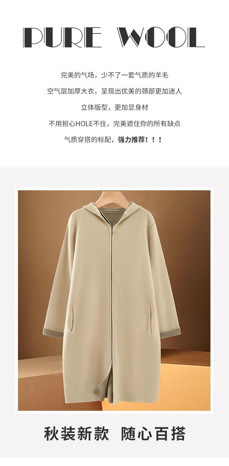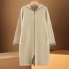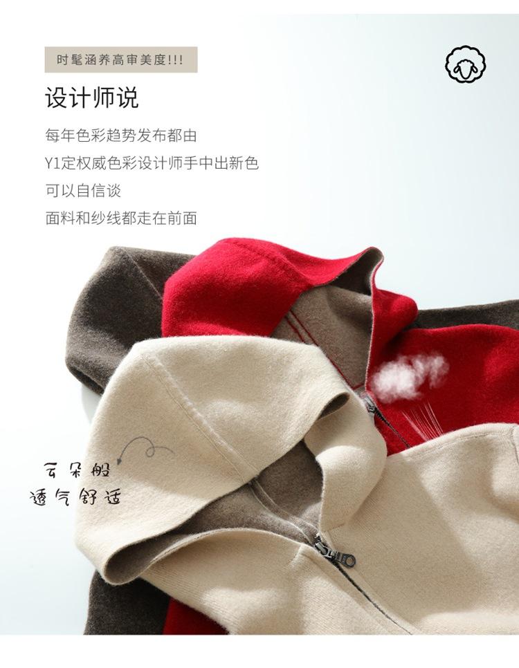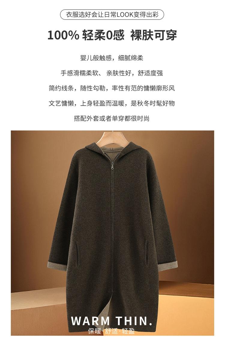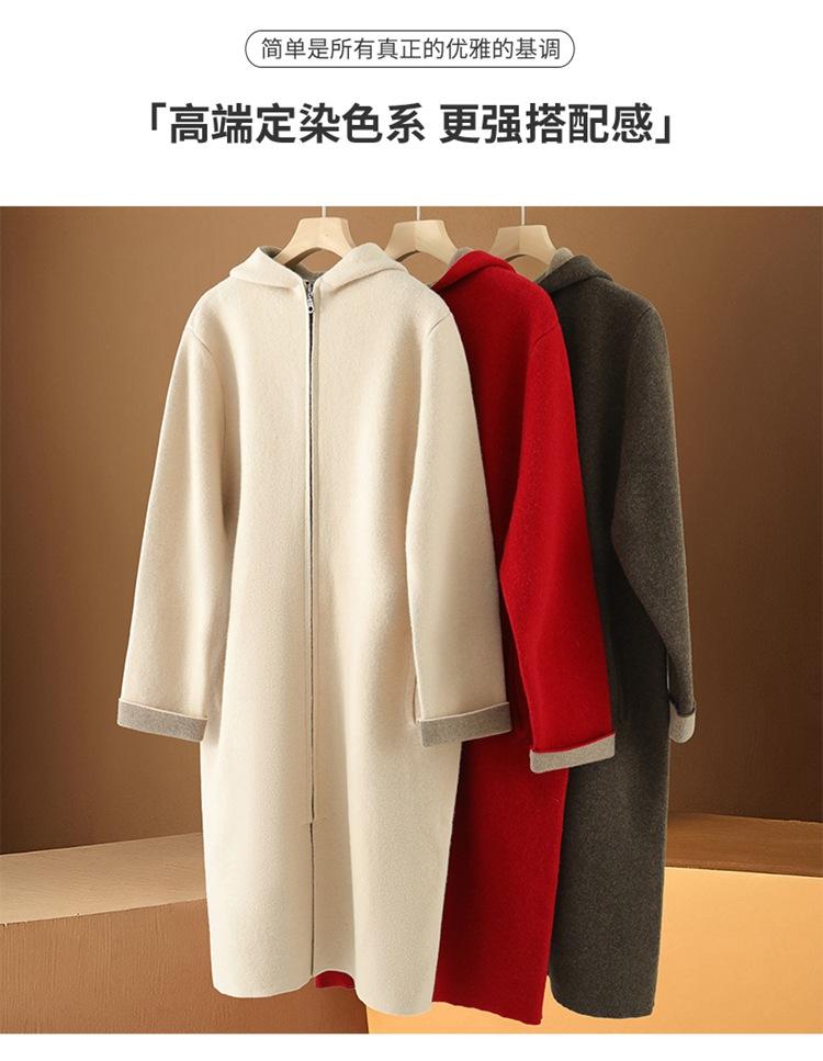 Cárdigan de Lana 100 Pura con Capucha de Largo Medio para Mujer Abrigo Grueso Bicolor de Capa de Aire Ropa Exterior de Cachemira Holgada y Relajada