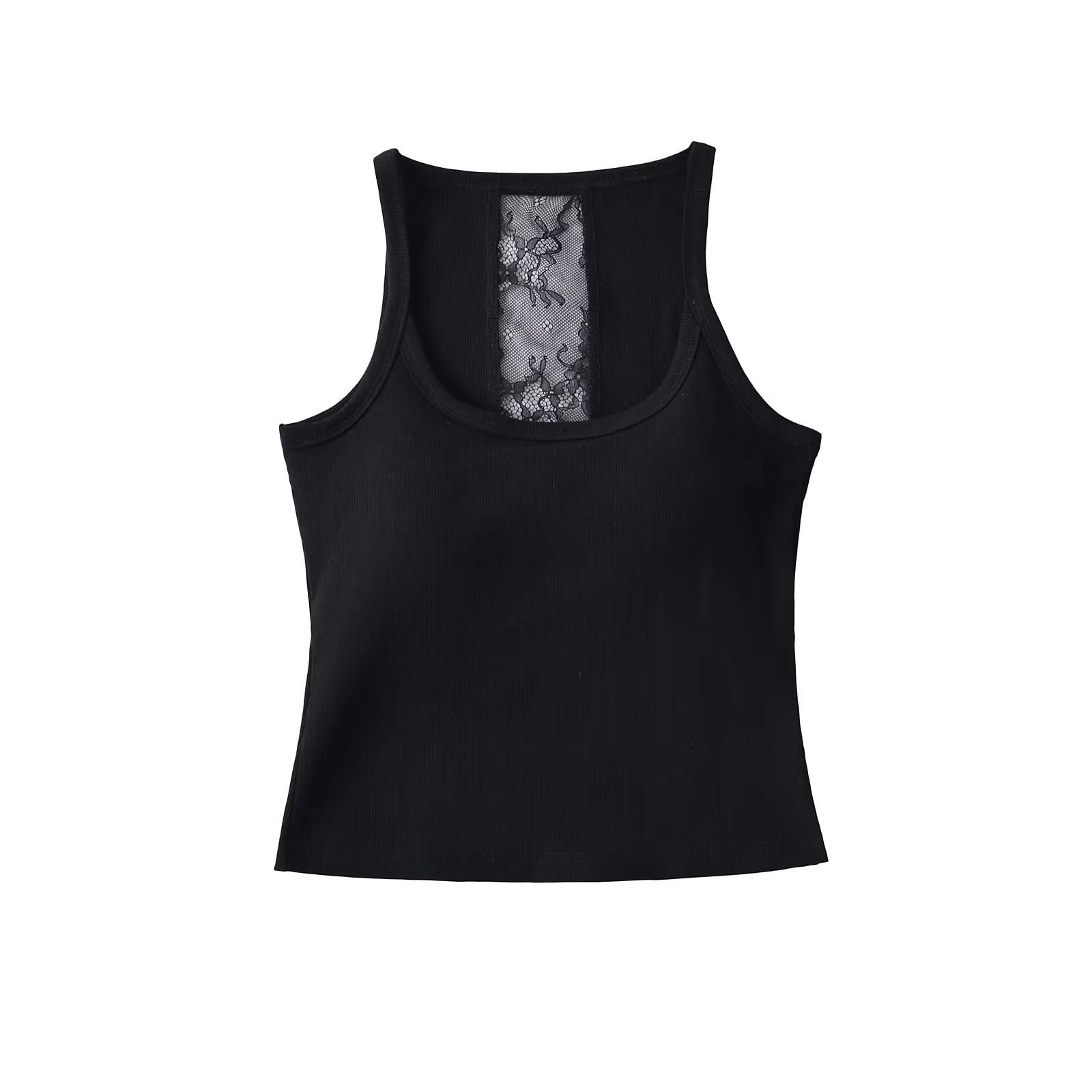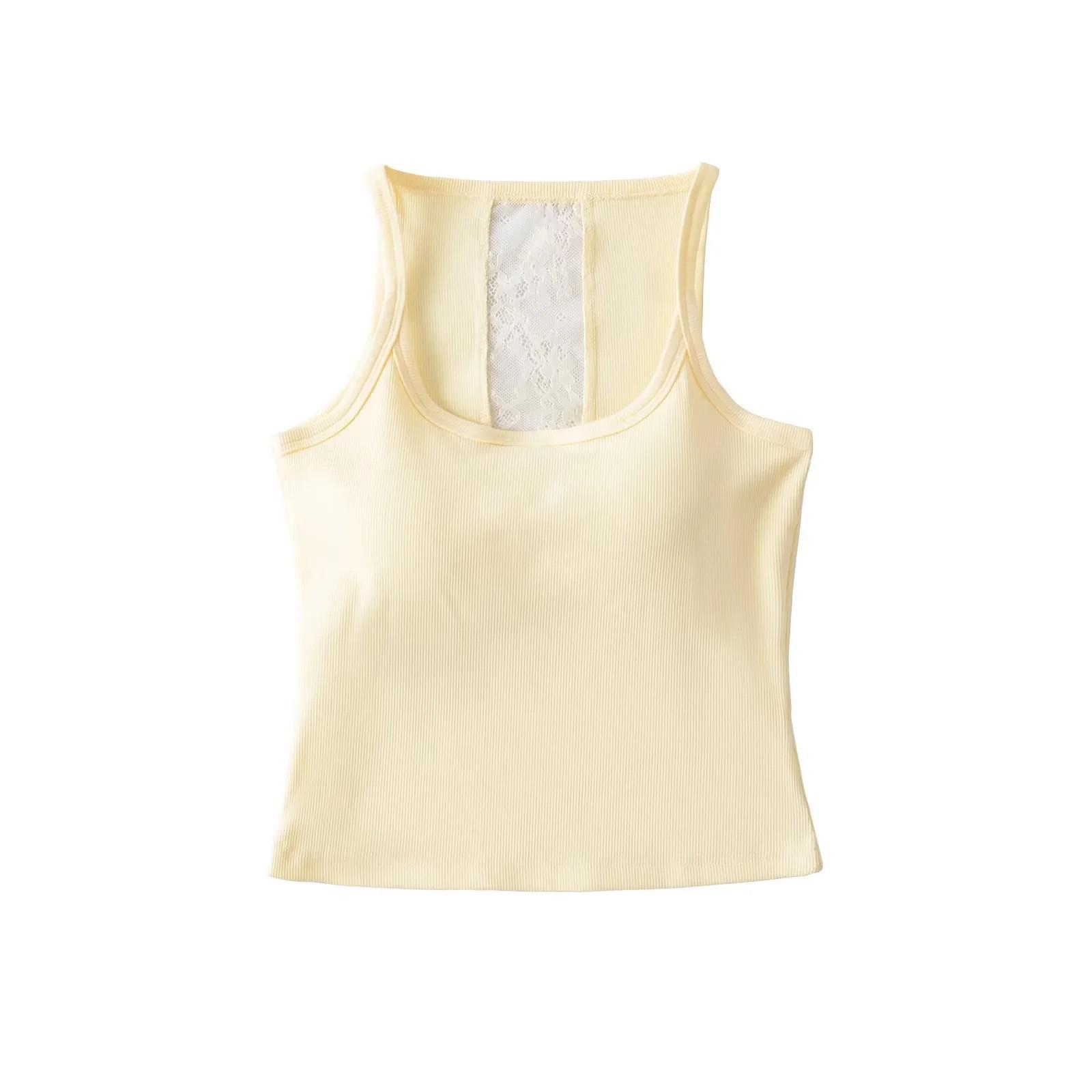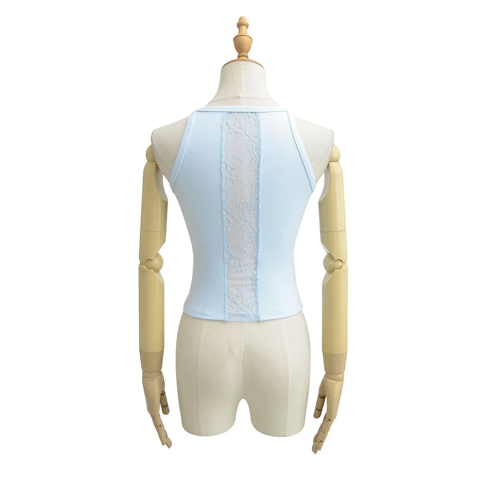 Camisola dulce y picante con encaje empalmado para uso exterior, hermosa espalda, sexy, capa interior, top racer sin espalda, chaleco