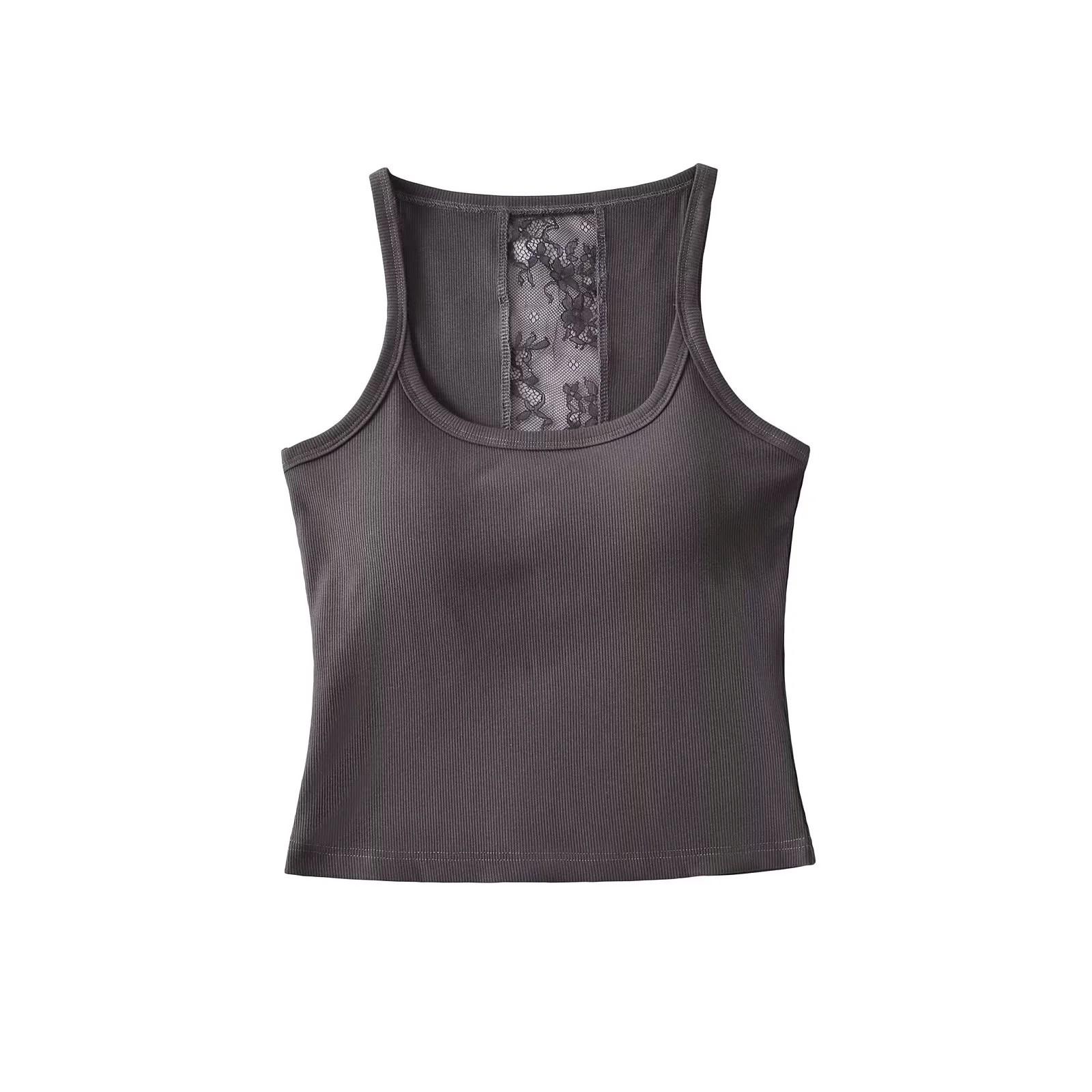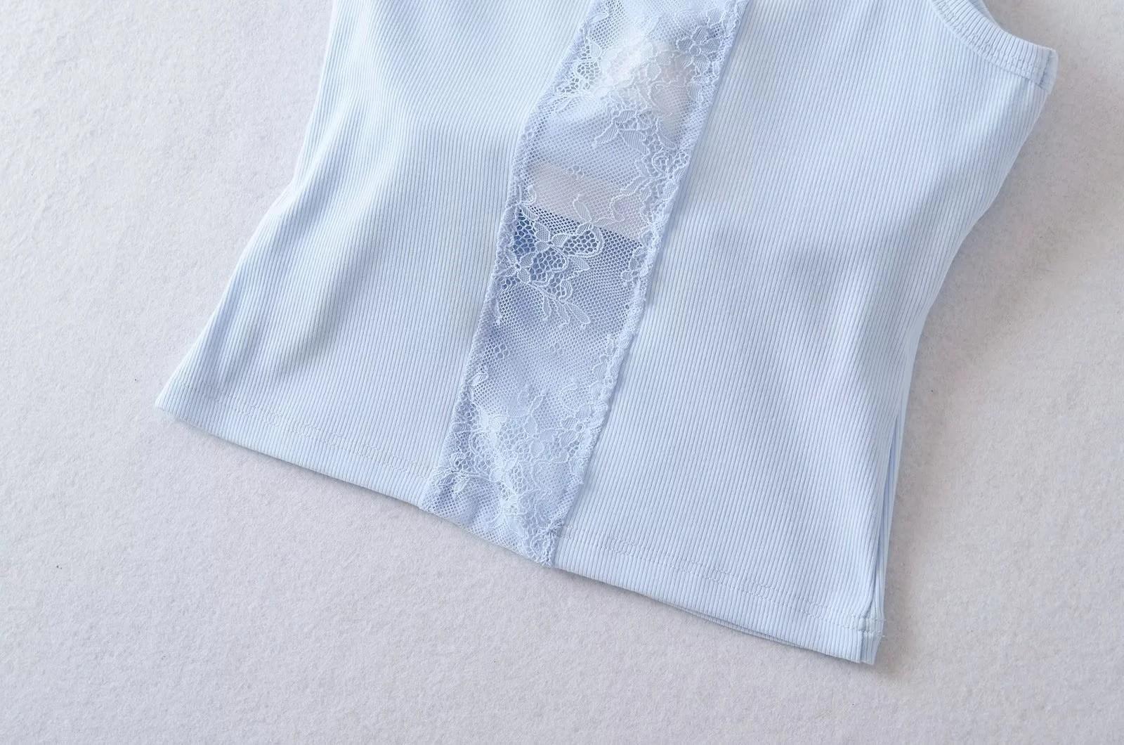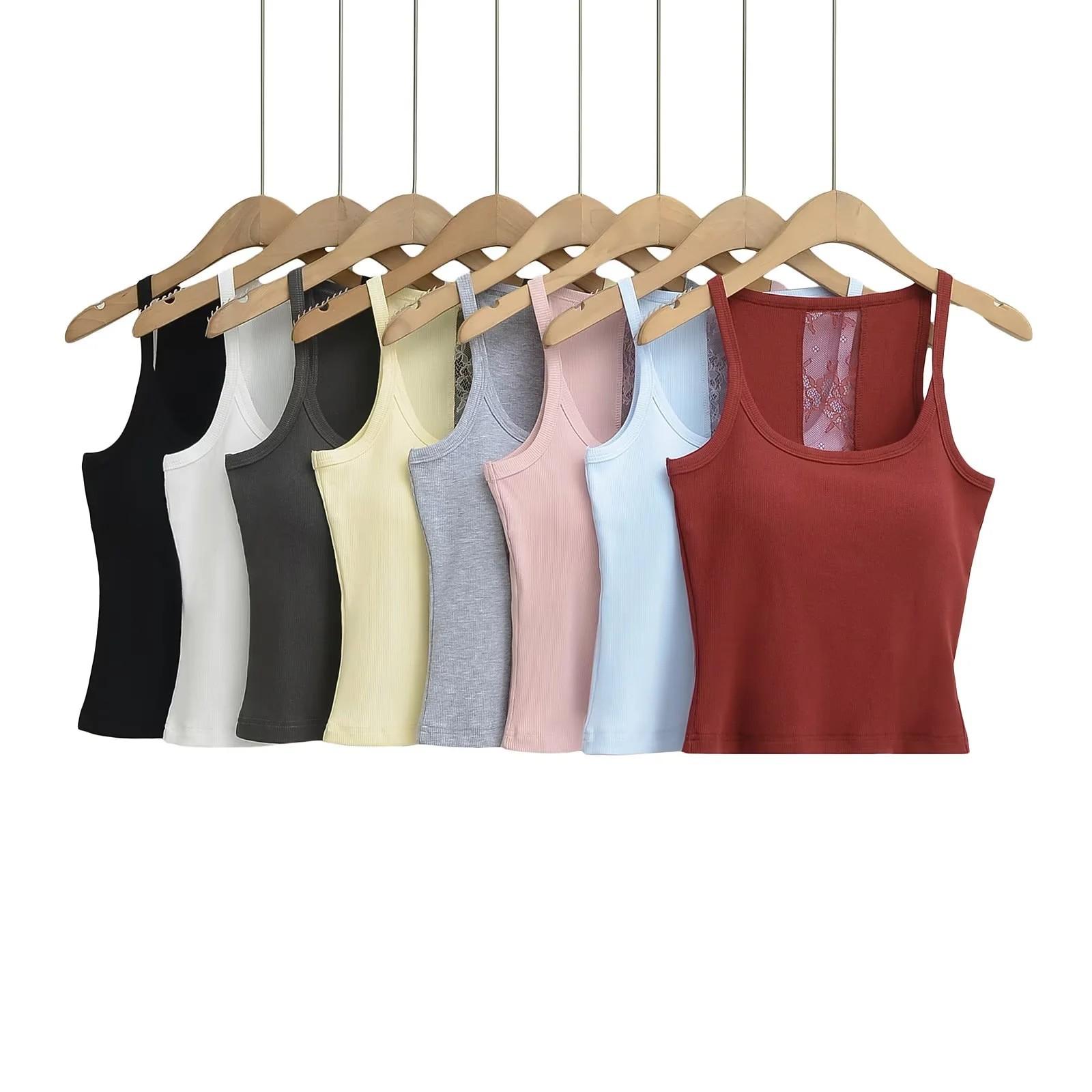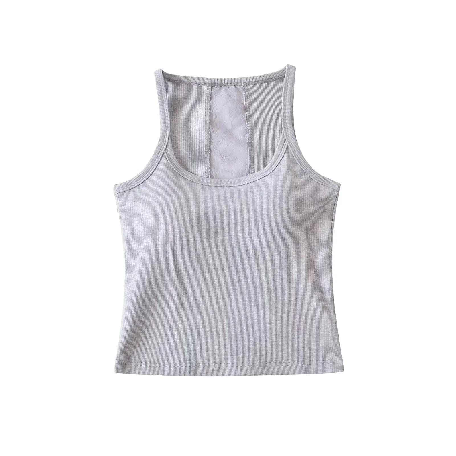 Camisola dulce y picante con encaje empalmado para uso exterior, hermosa espalda, sexy, capa interior, top racer sin espalda, chaleco