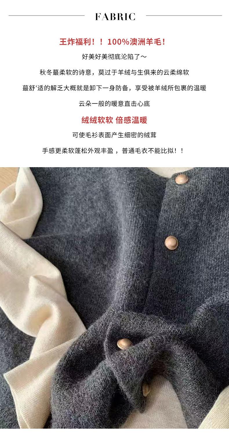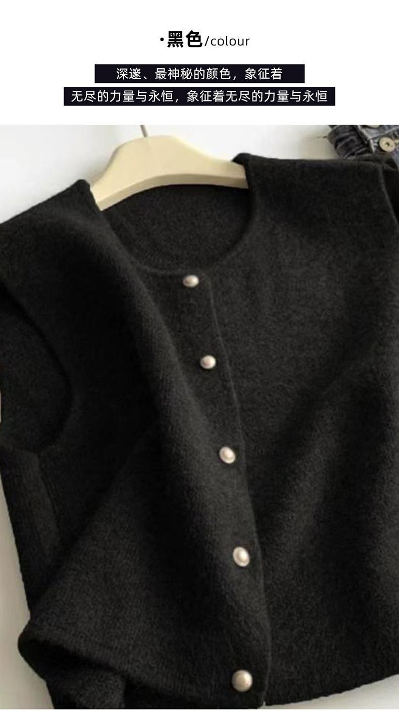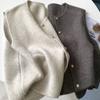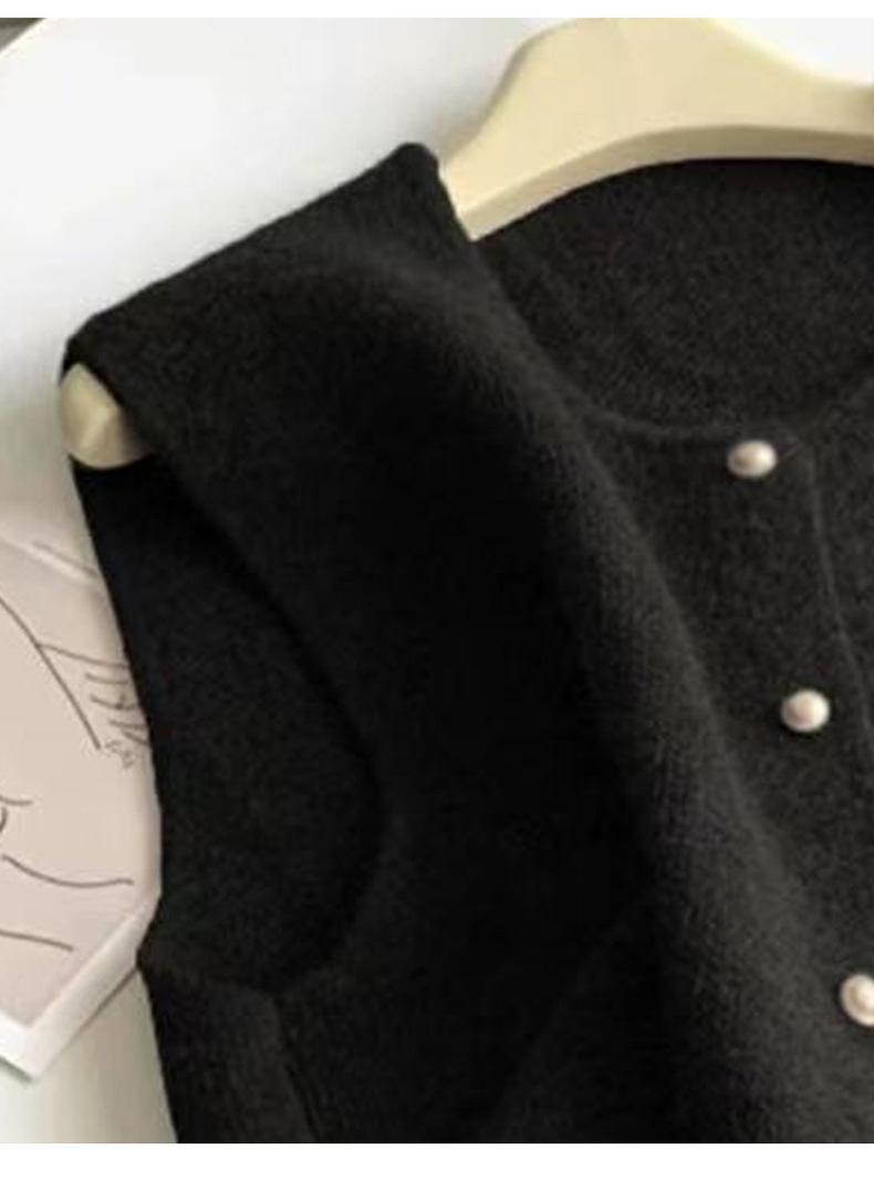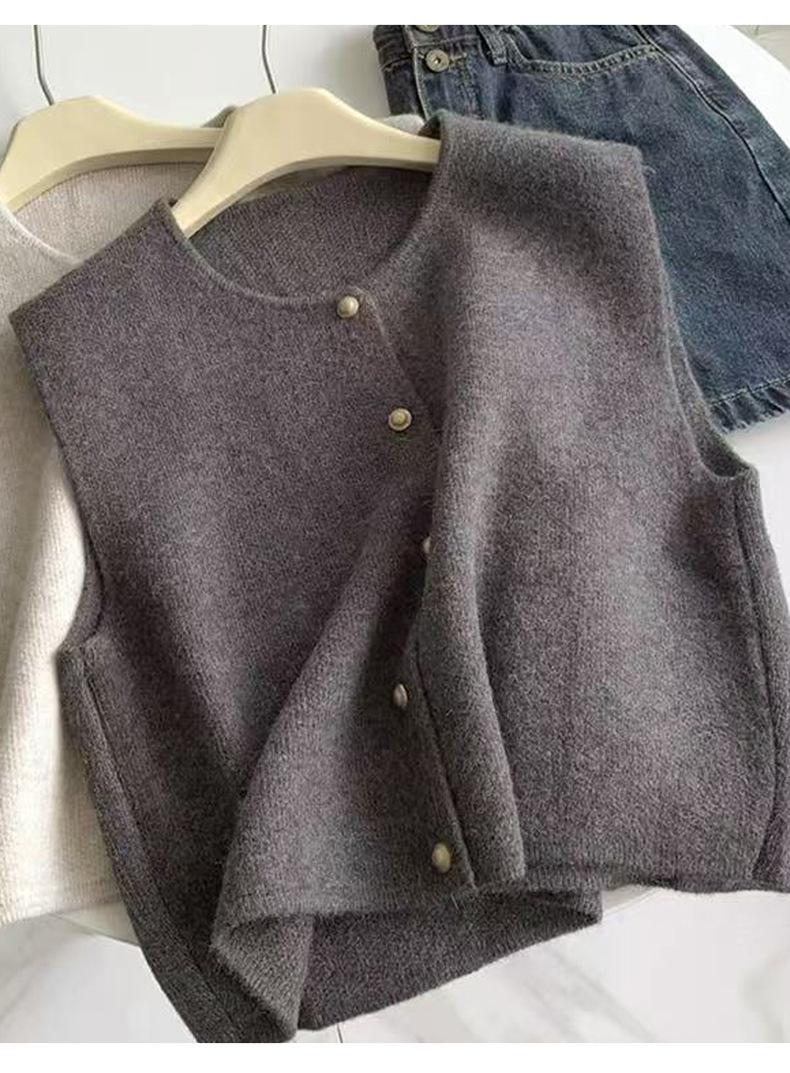 Suéter de Lã Pura Feminino Gola Careca 100% Lã Pura Colete Sem Mangas Cardigã Design Pequeno Botão Dourado Colete Outono e Inverno Novo Moderno