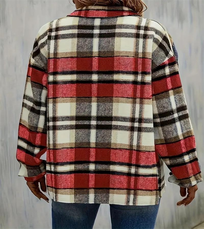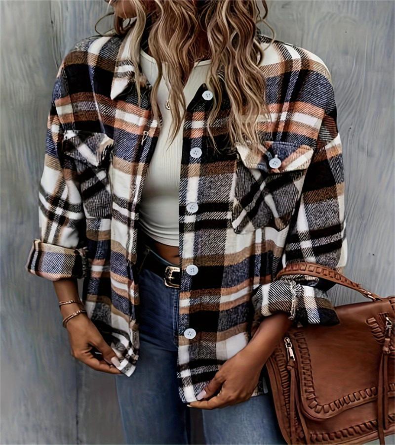2024 Amazon Fashion deseo Otoño/Invierno Ropa de Mujer Transfronteriza Europea y Americana Nuevo Cárdigan Manga Larga Camisa de Cuadros Abrigo Grueso