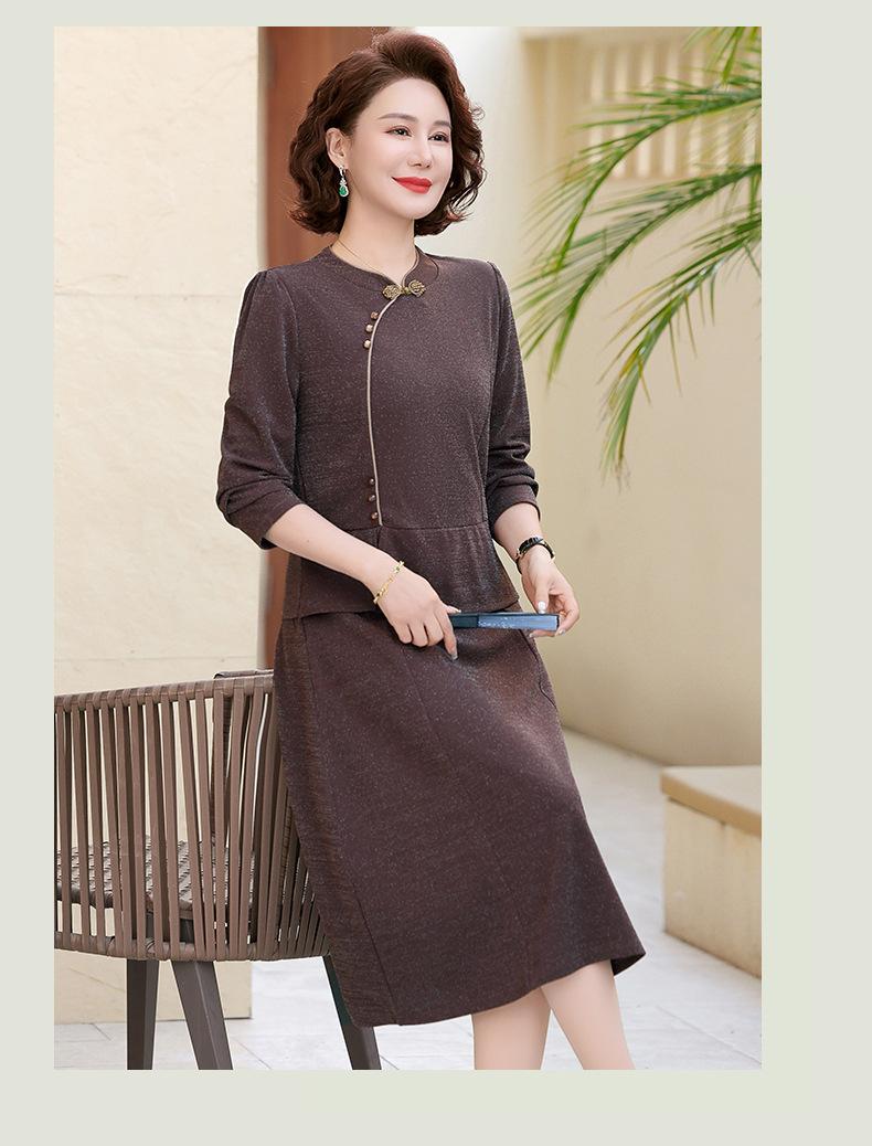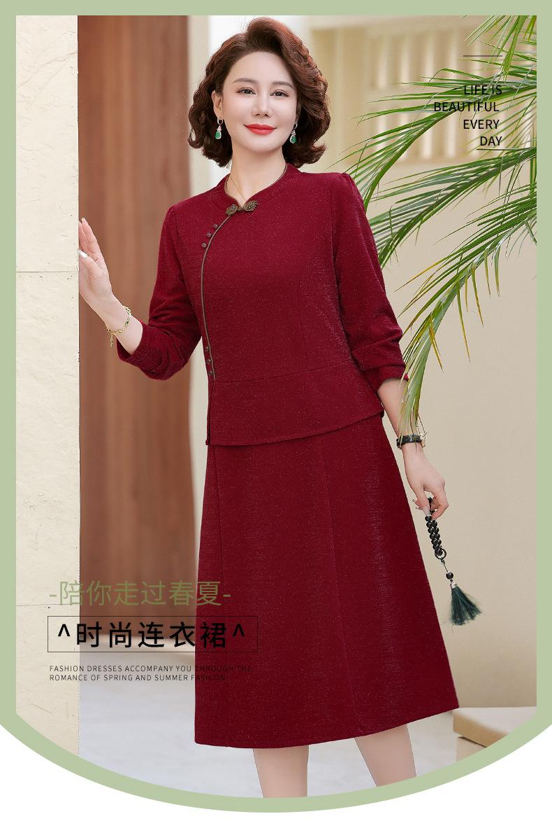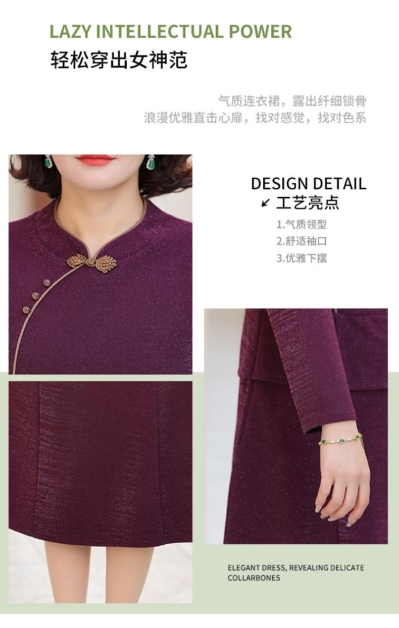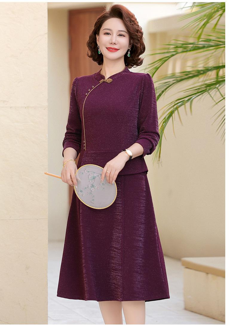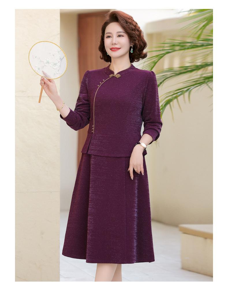 Color Sólido Venta al por Mayor Otoño Vestido de Madre Banquete de Boda Vestido Cheongsam Mejorado Nuevo Estilo Chino Estilo Nacional Temperamento Vestido para Mujeres de Mediana Edad