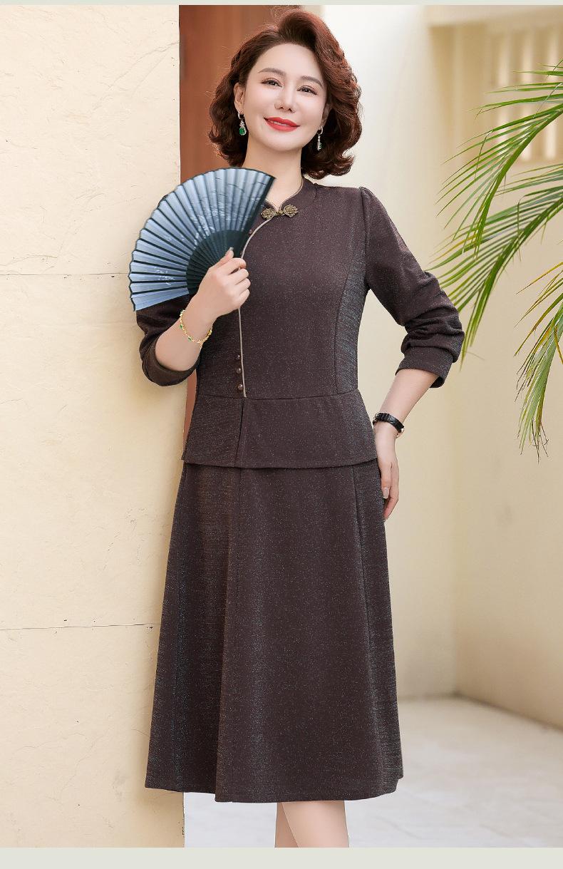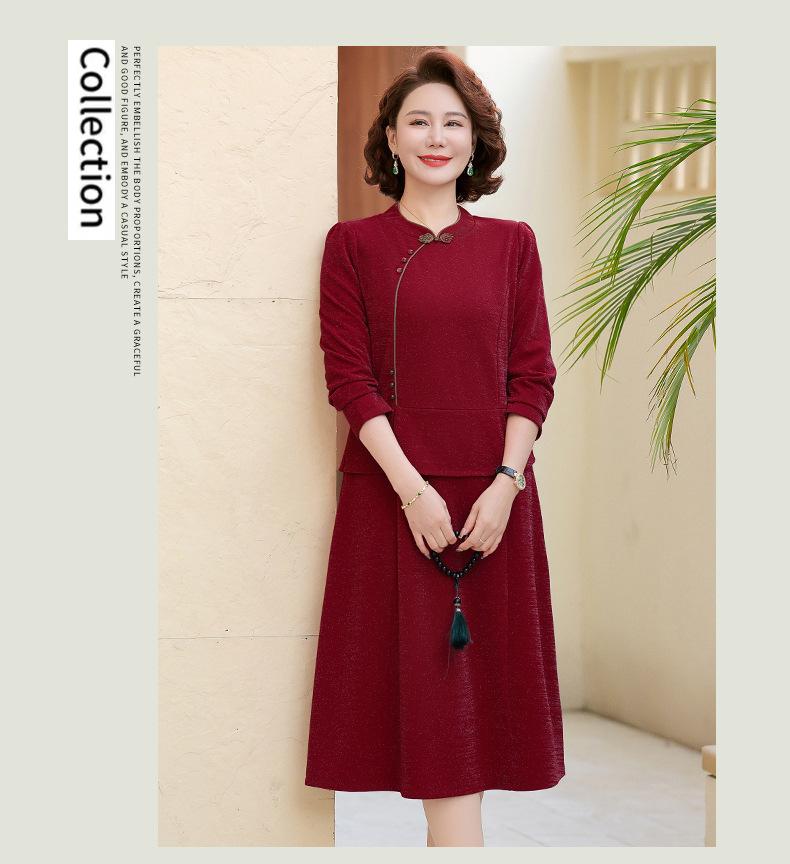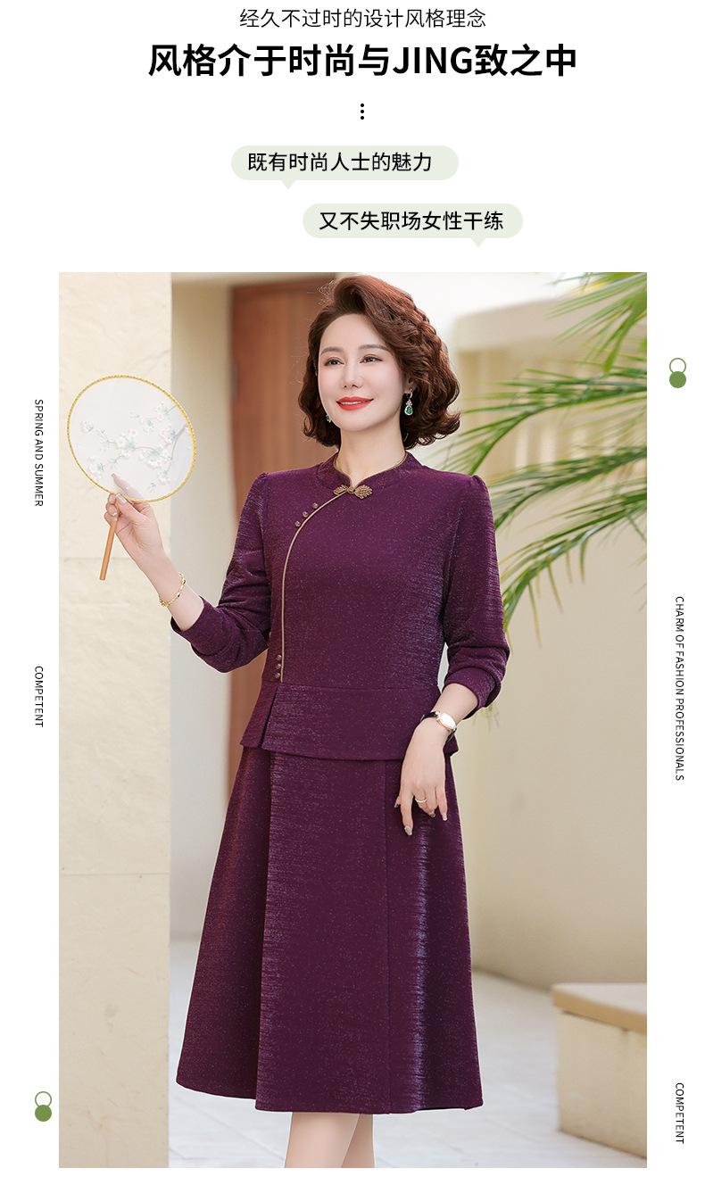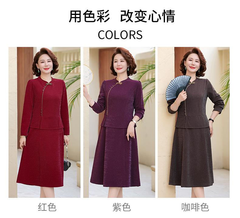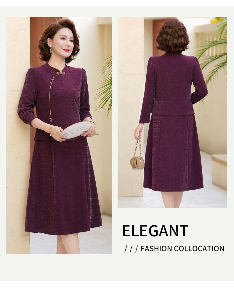 Color Sólido Venta al por Mayor Otoño Vestido de Madre Banquete de Boda Vestido Cheongsam Mejorado Nuevo Estilo Chino Estilo Nacional Temperamento Vestido para Mujeres de Mediana Edad