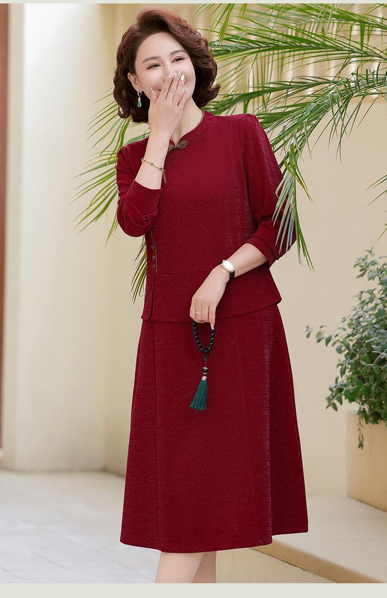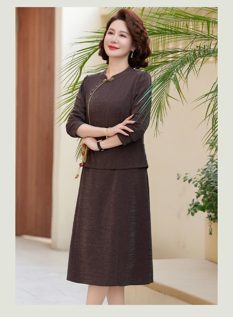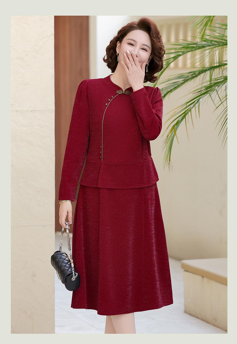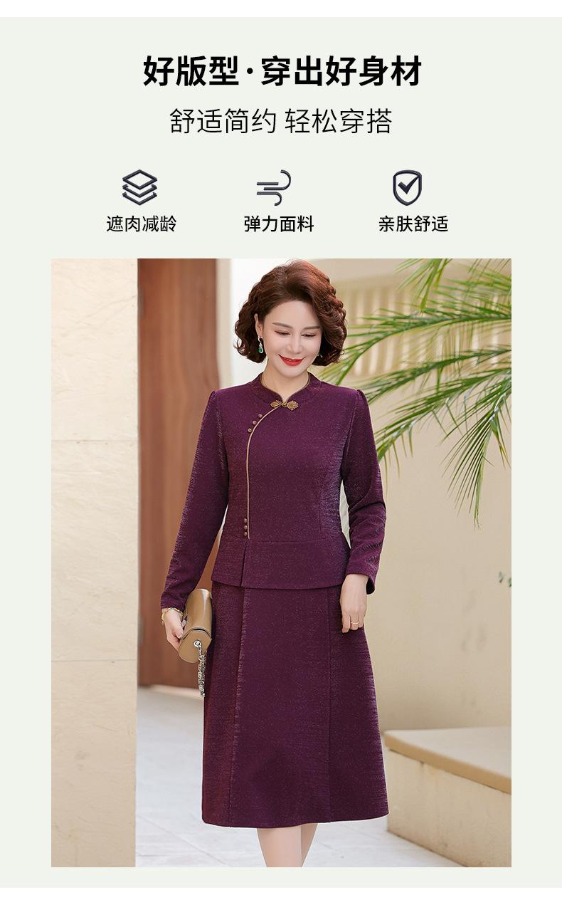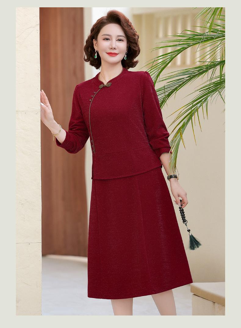 Color Sólido Venta al por Mayor Otoño Vestido de Madre Banquete de Boda Vestido Cheongsam Mejorado Nuevo Estilo Chino Estilo Nacional Temperamento Vestido para Mujeres de Mediana Edad