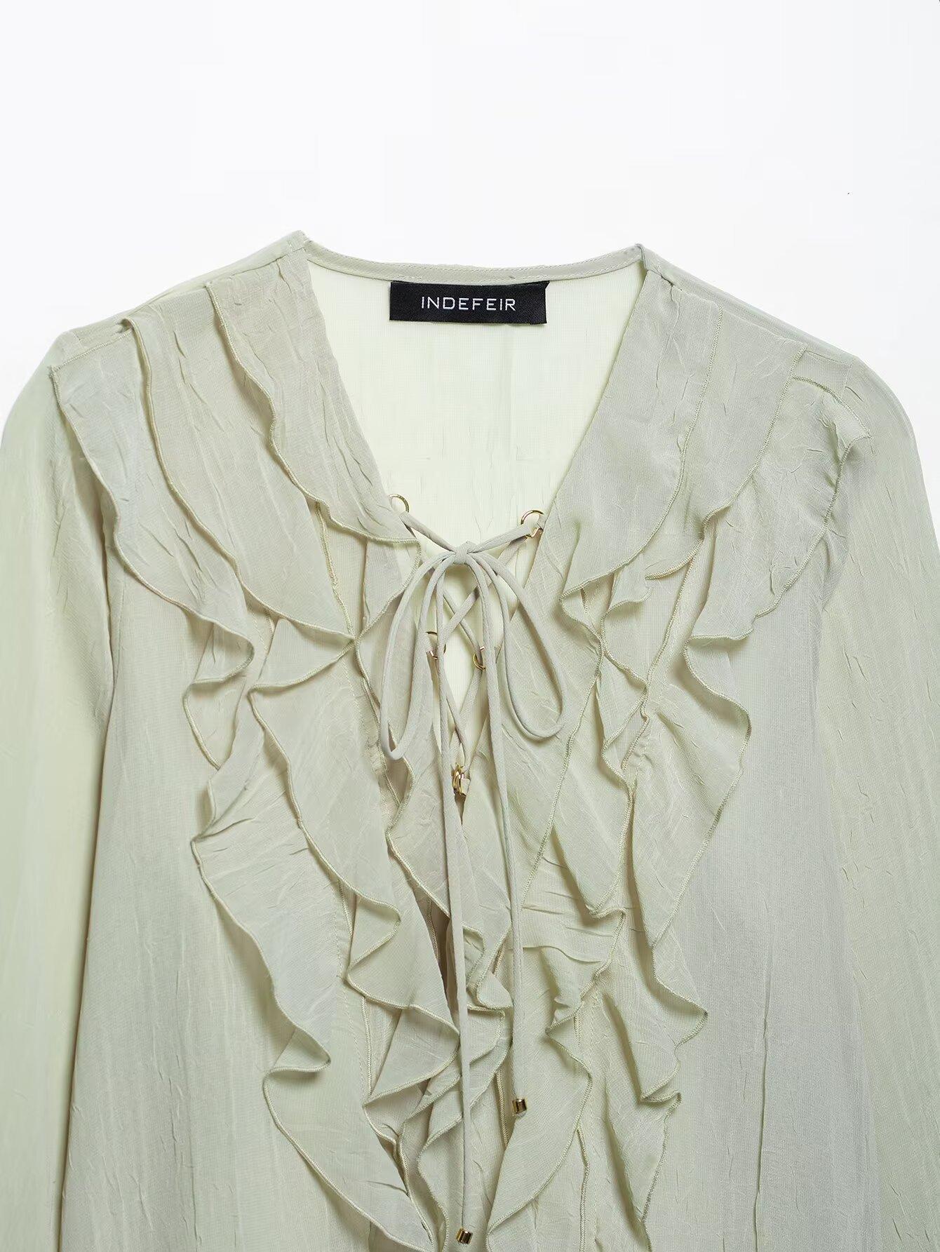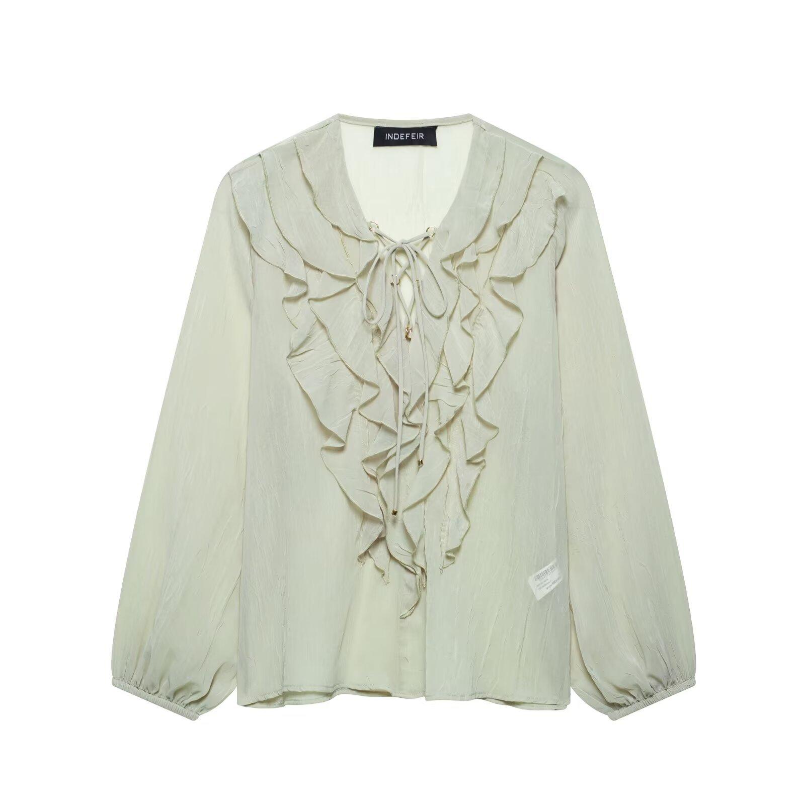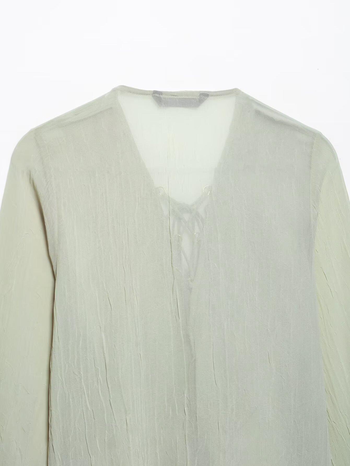 Nuevo Producto Transfronterizo 2025 Estilo Europeo y Americano Ropa de Mujer Exportación Venta al por Mayor Zr Ahora Camisa Transparente Decorativa en Capas