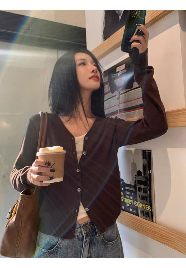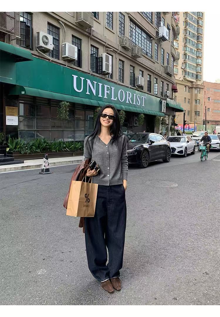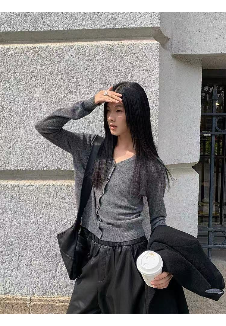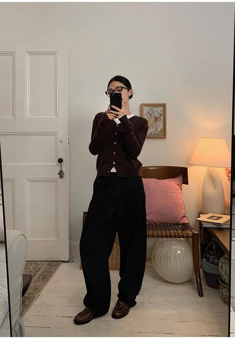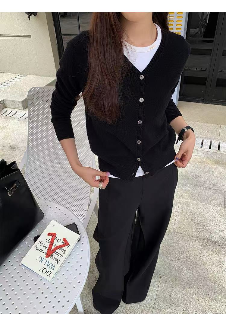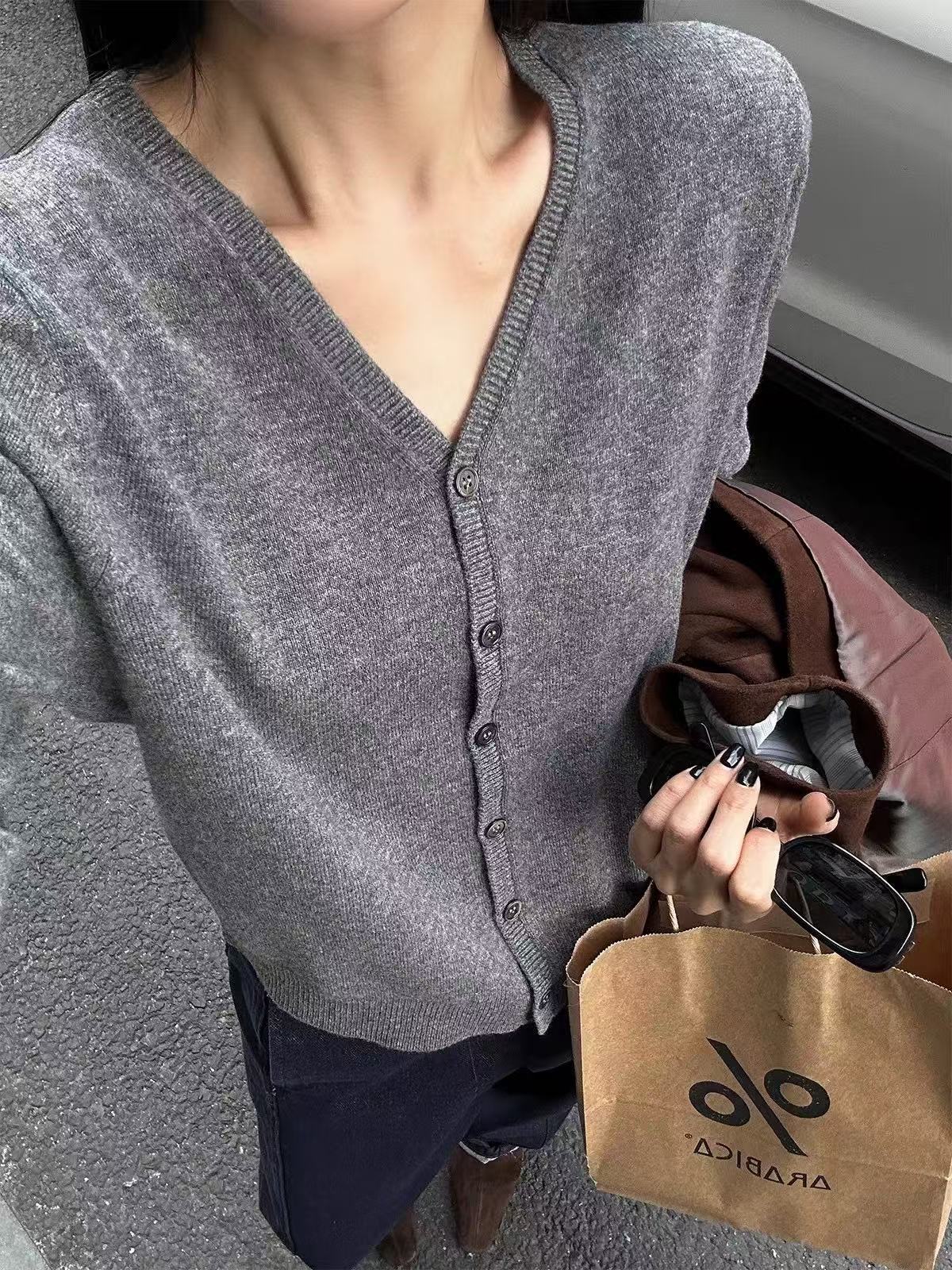 Cárdigan de Punto de Lana Pura con Cuello en V Nuevo para Mujer Color Sólido Holgado Ropa Exterior Temperamento Casual Simple Abrigo Abotonado