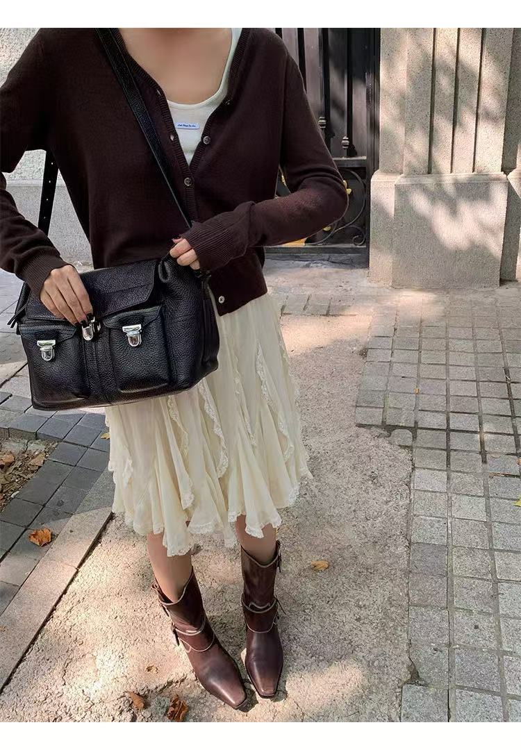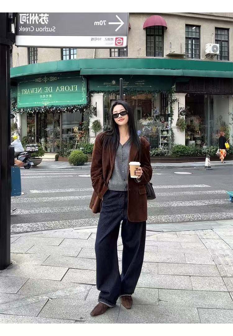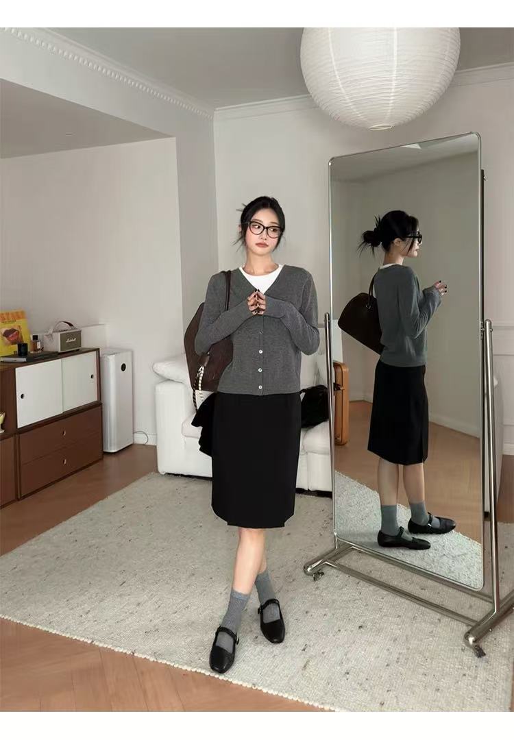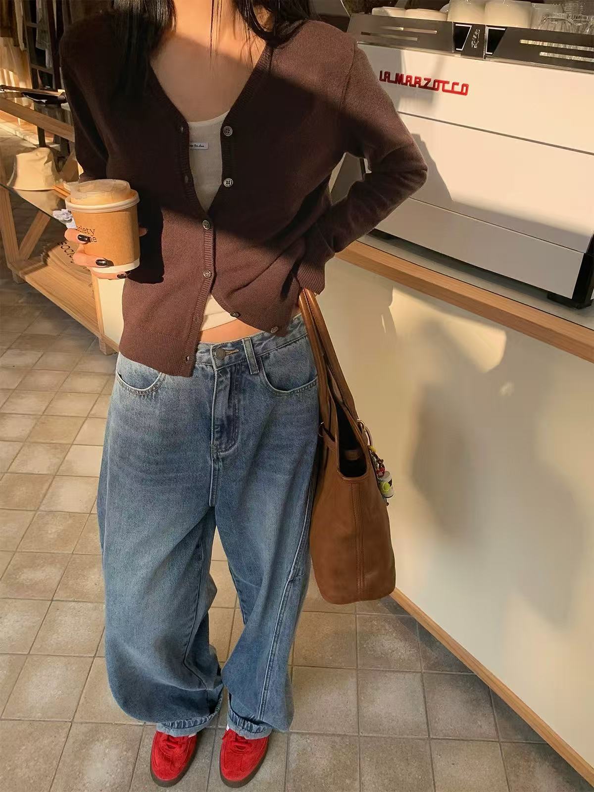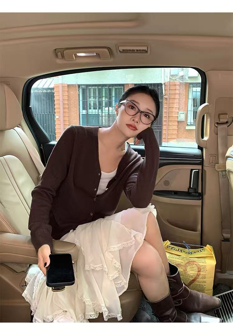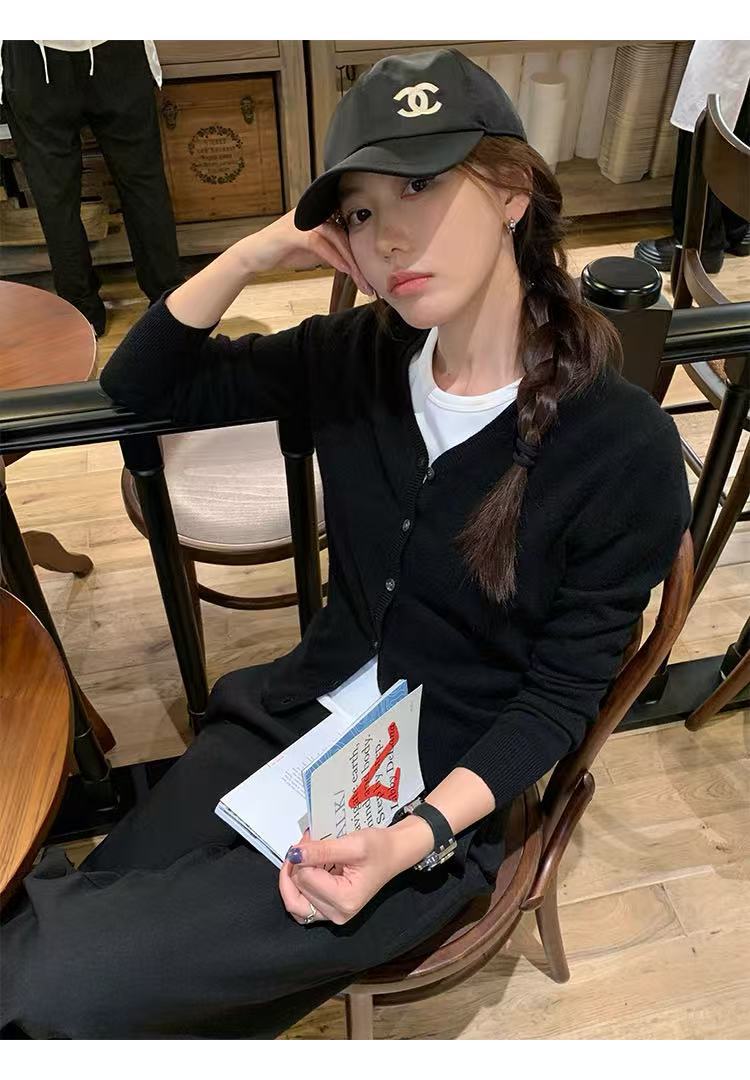 Cárdigan de Punto de Lana Pura con Cuello en V Nuevo para Mujer Color Sólido Holgado Ropa Exterior Temperamento Casual Simple Abrigo Abotonado