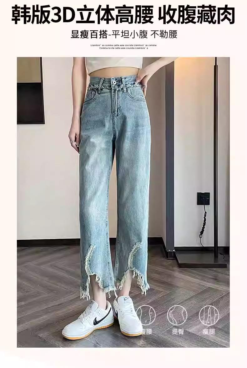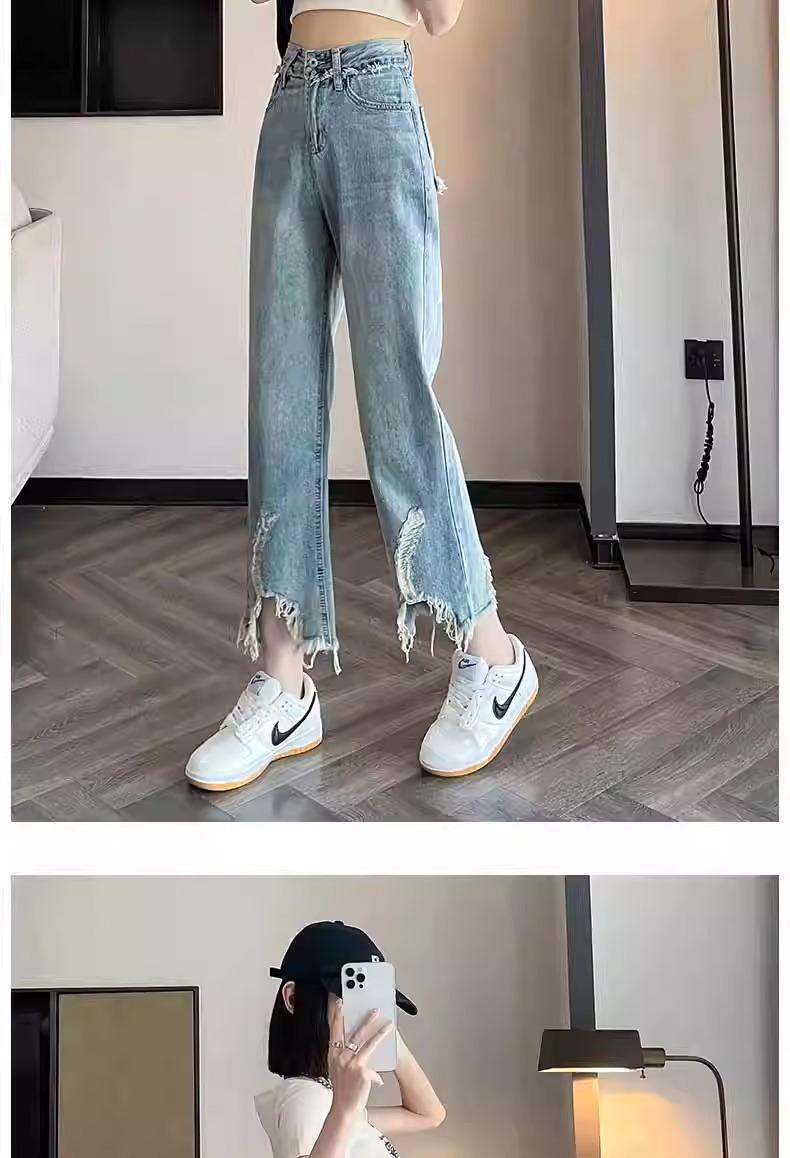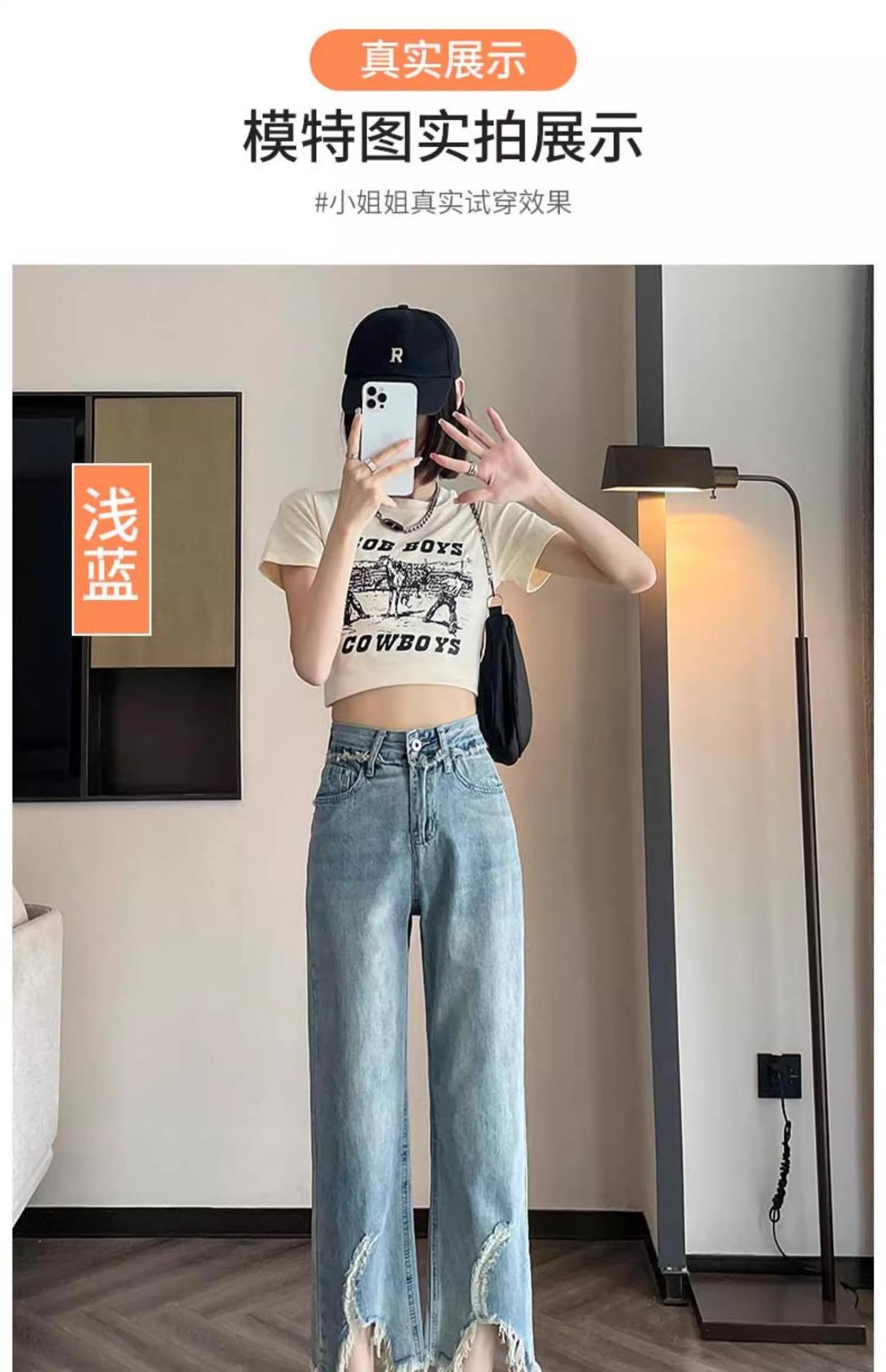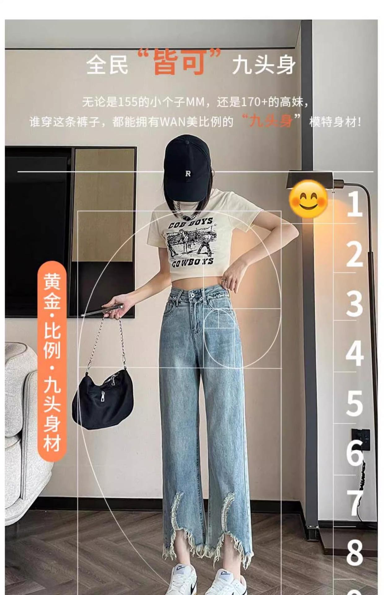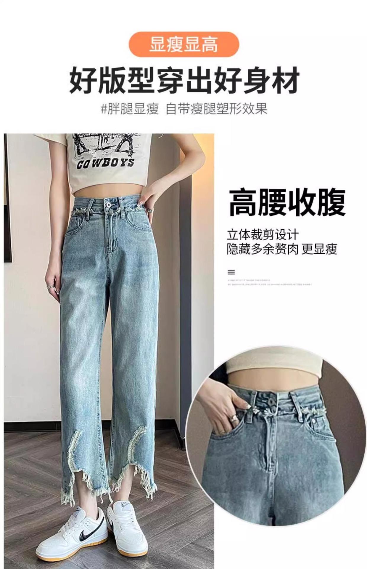 Jeans de Pierna Ancha para Mujer 9 Puntos Pequeño 150cm Vestido de Verano 8 Puntos Cintura Alta Sueltos Rotos Mendigo Pantalones Rectos