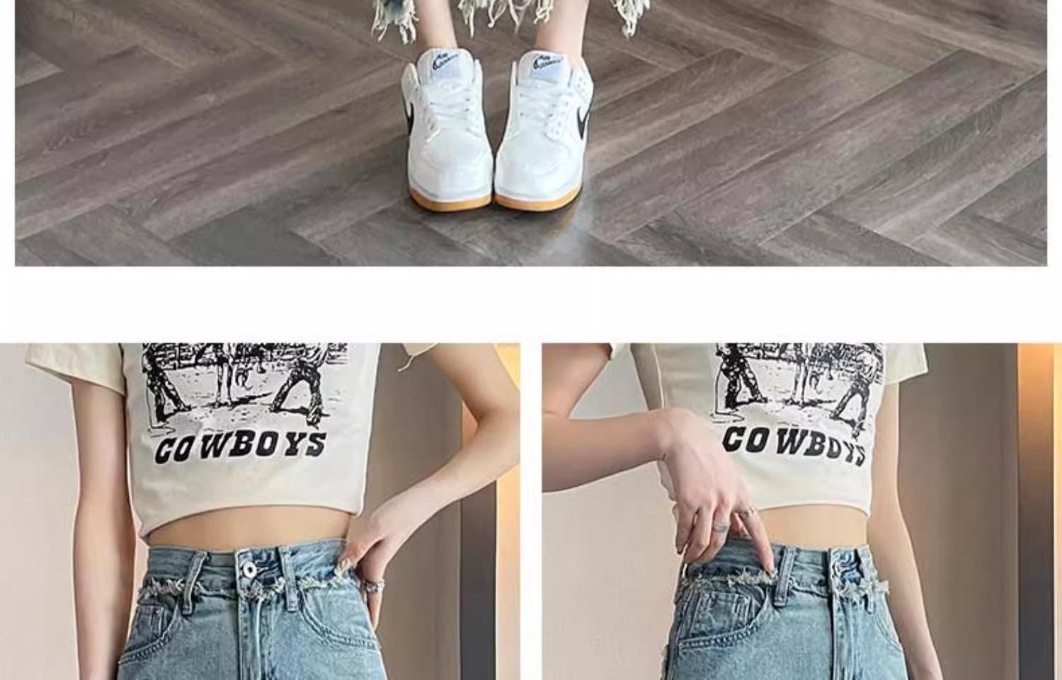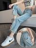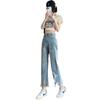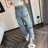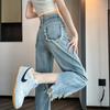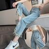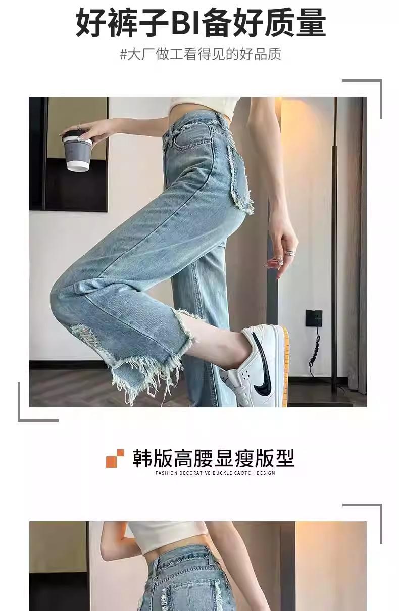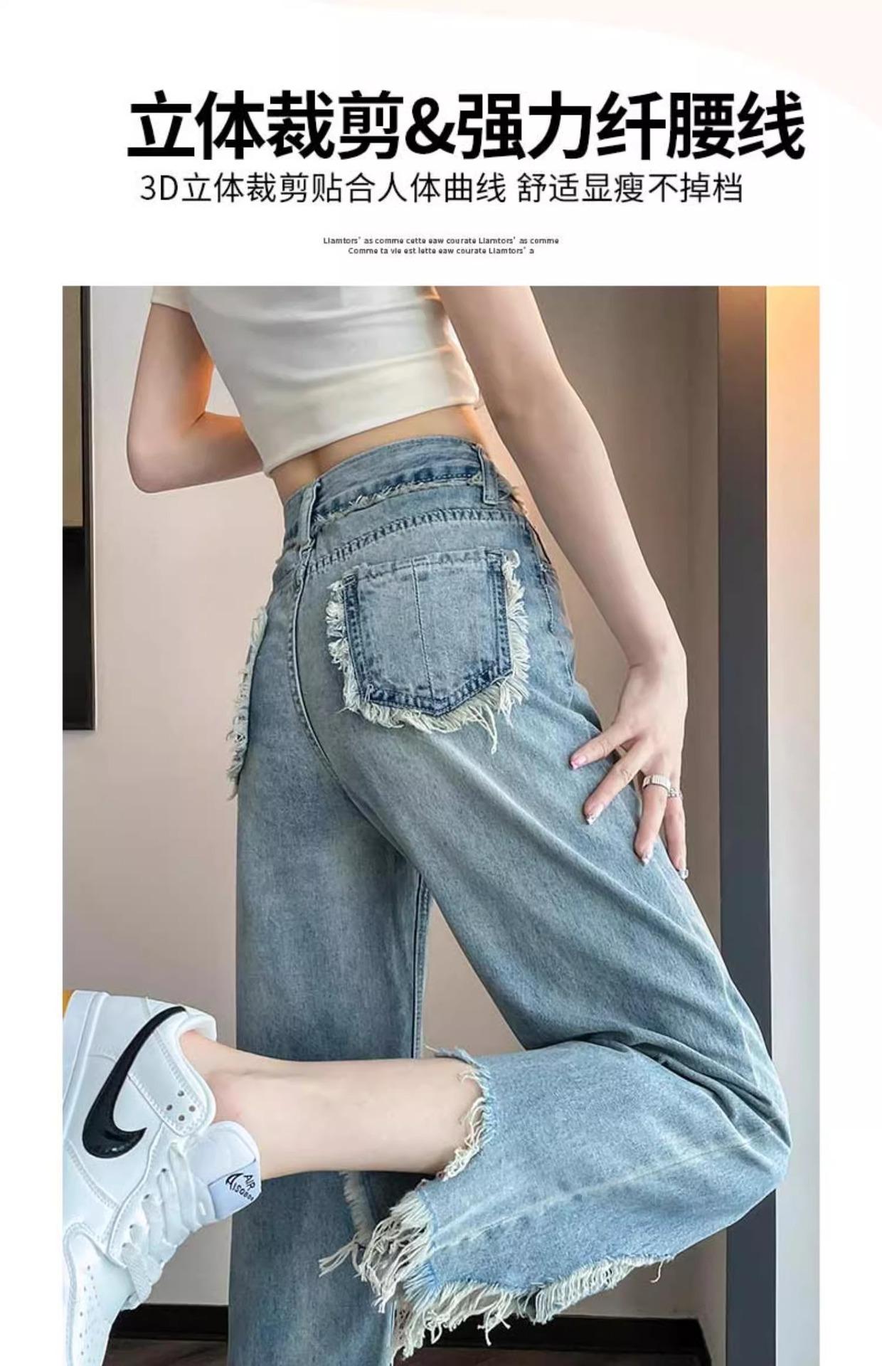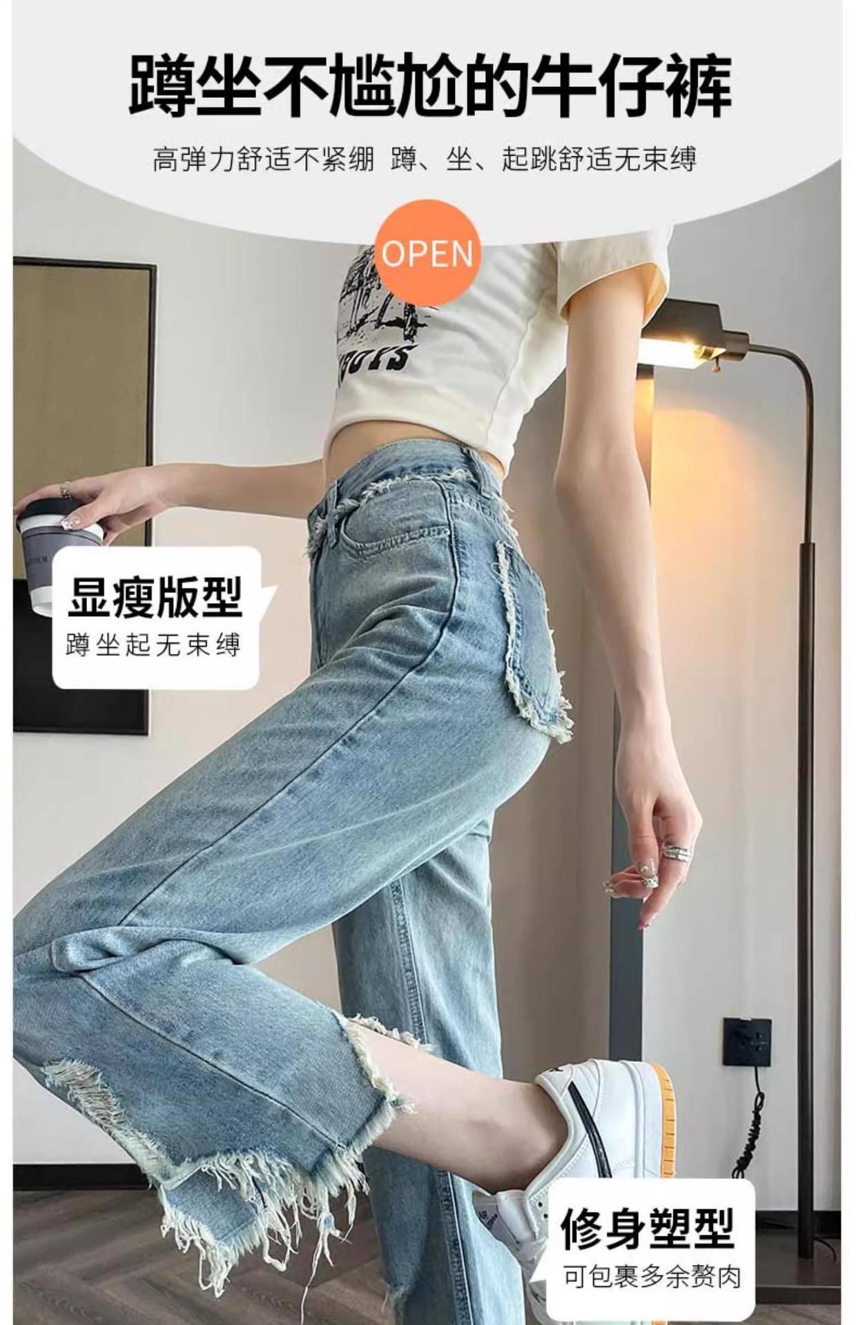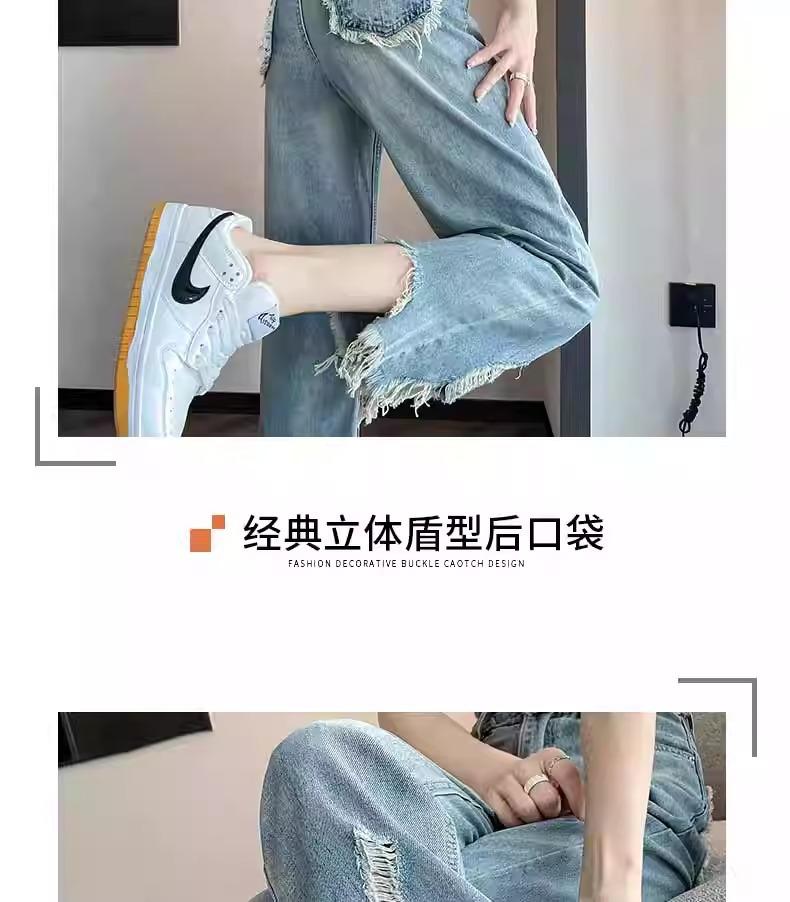 Jeans de Pierna Ancha para Mujer 9 Puntos Pequeño 150cm Vestido de Verano 8 Puntos Cintura Alta Sueltos Rotos Mendigo Pantalones Rectos