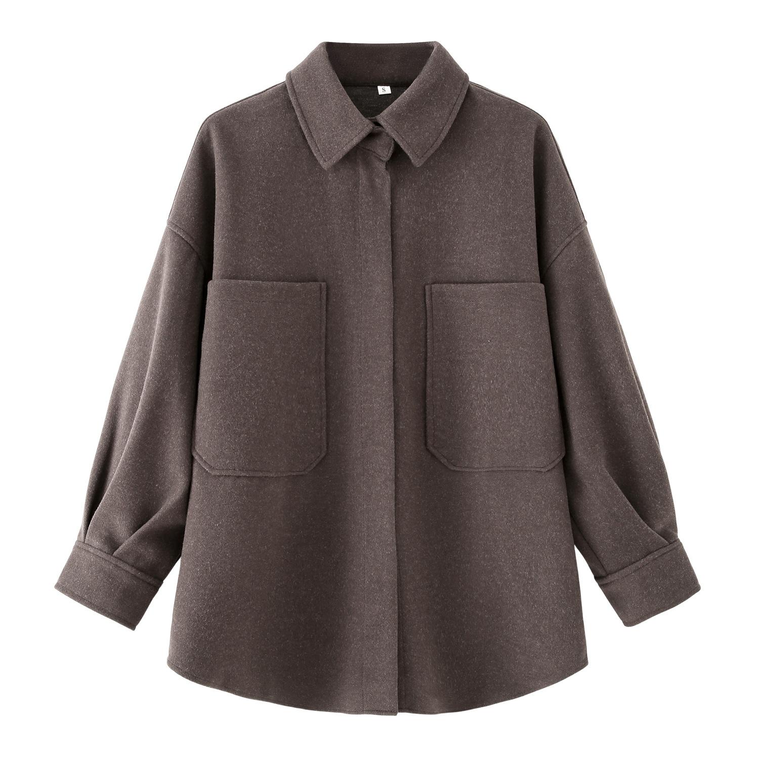 Ropa de Mujer Transfronteriza al por Mayor 2025 Principios de Otoño Nuevo Estilo Europeo y Americano Suelto Sobredimensionado Estilo Camisa Abrigo de Lana de Longitud Media