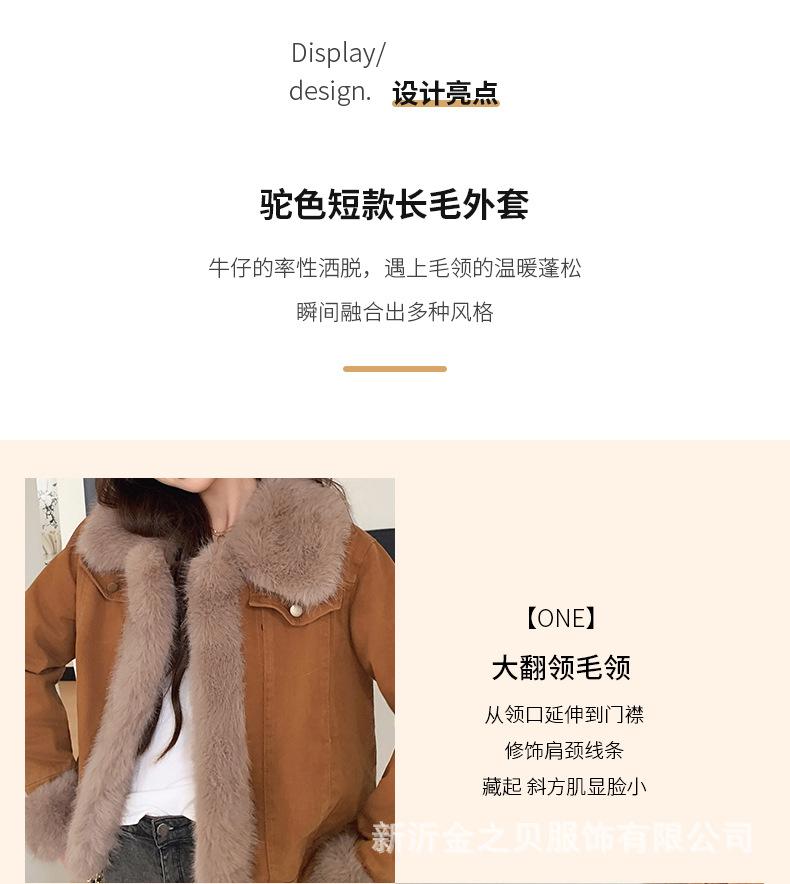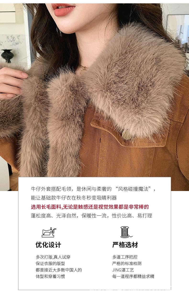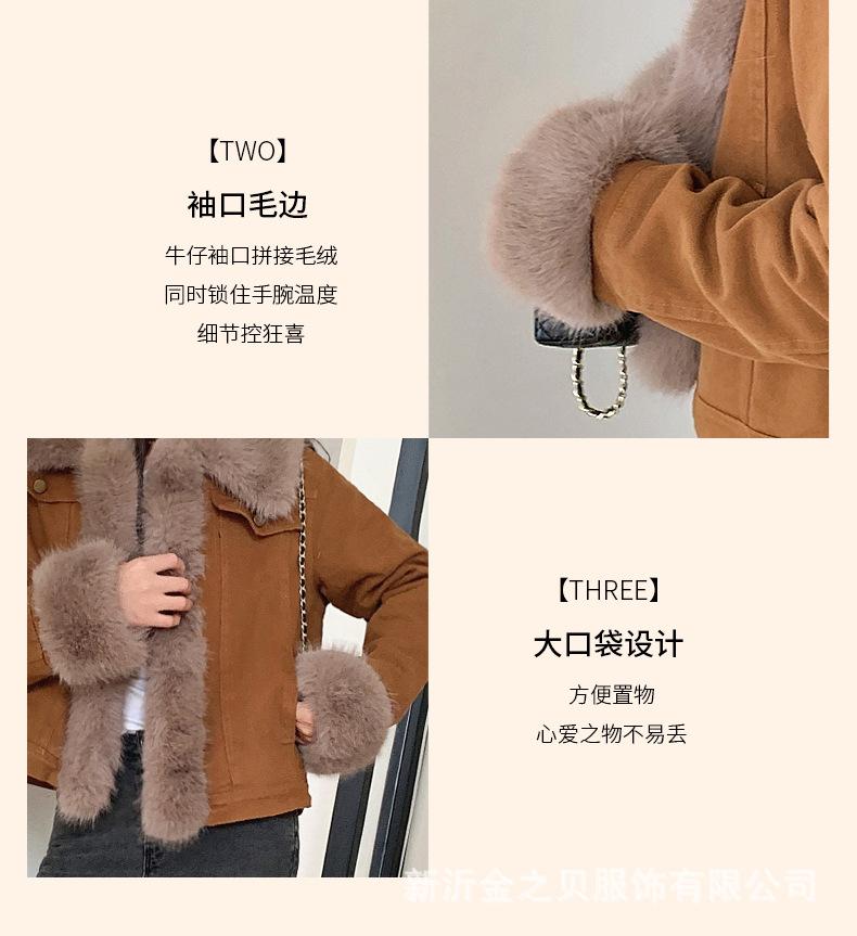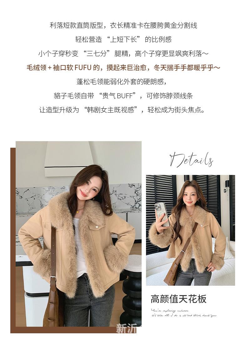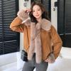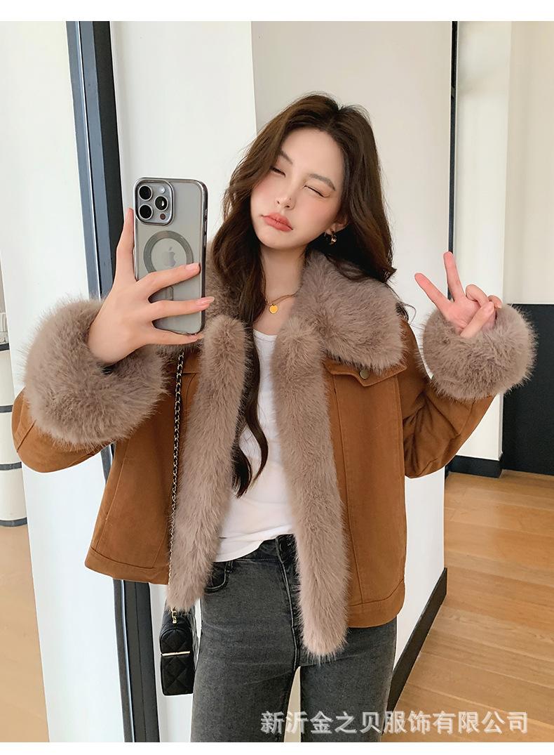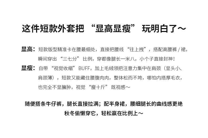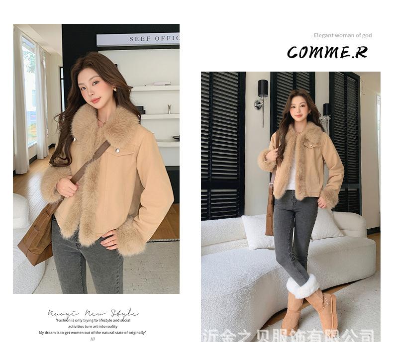 Abrigo de patchwork de felpa de lujo ligero de otoño e invierno, estilo celebridad, piel, moda petite, cálido cuello de piel, corto, ropa de mujer al por mayor