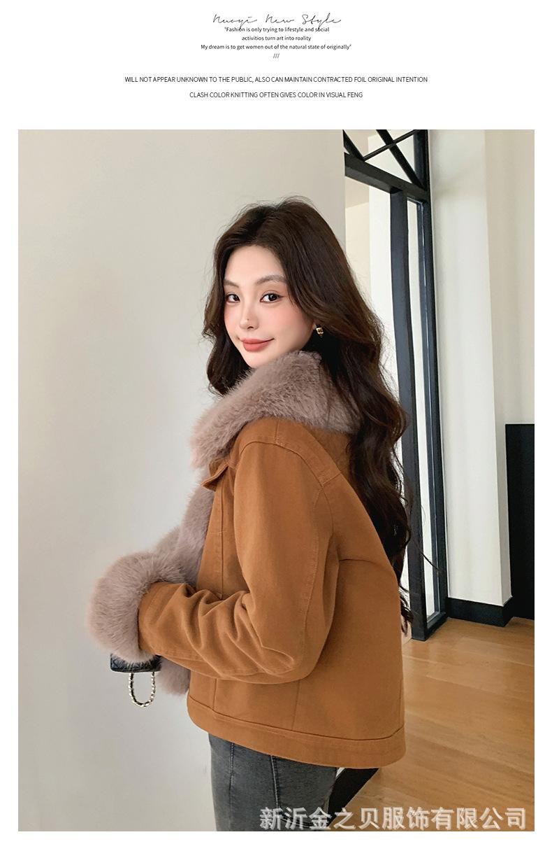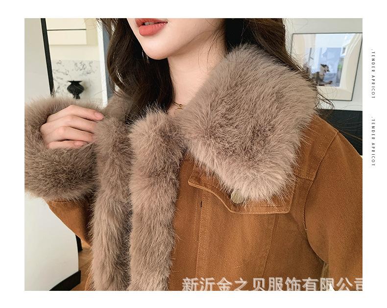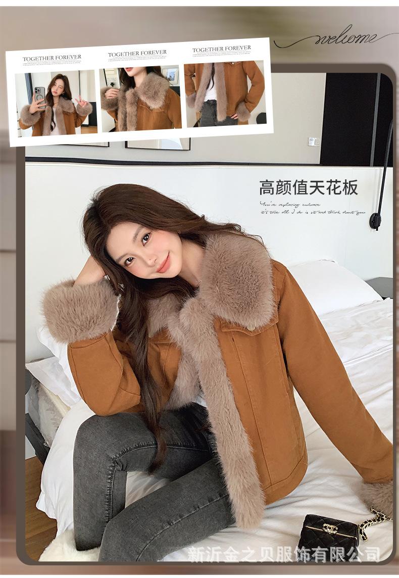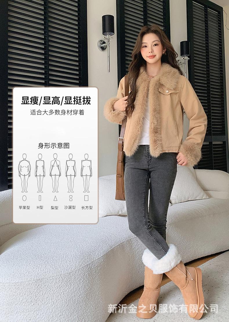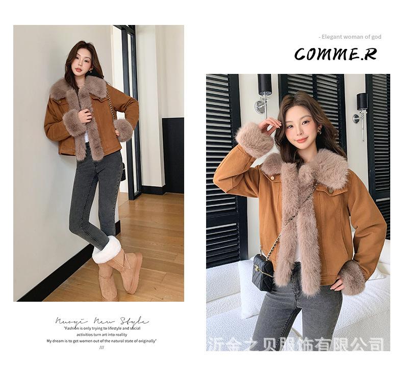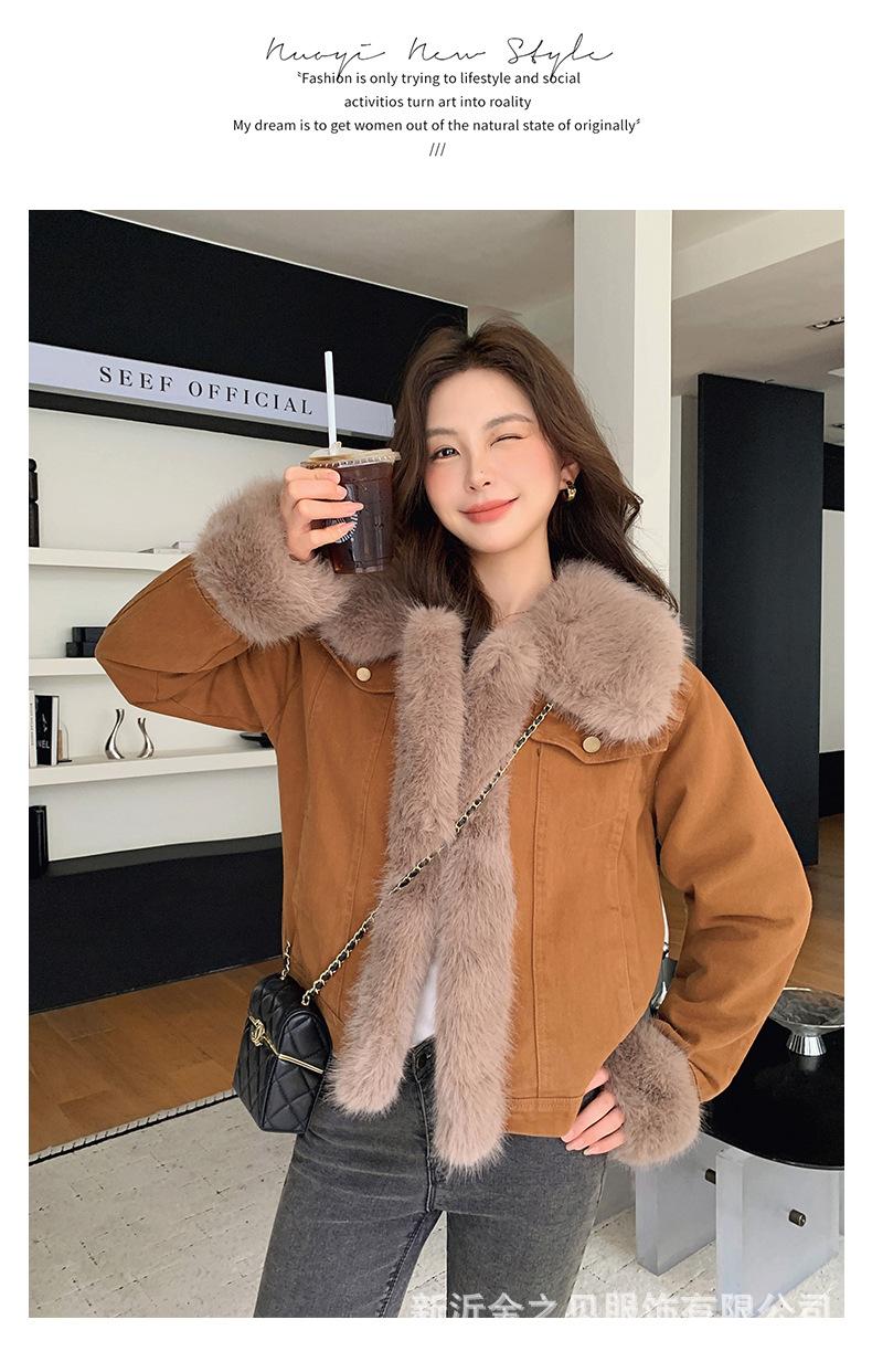 Abrigo de patchwork de felpa de lujo ligero de otoño e invierno, estilo celebridad, piel, moda petite, cálido cuello de piel, corto, ropa de mujer al por mayor