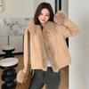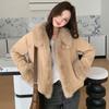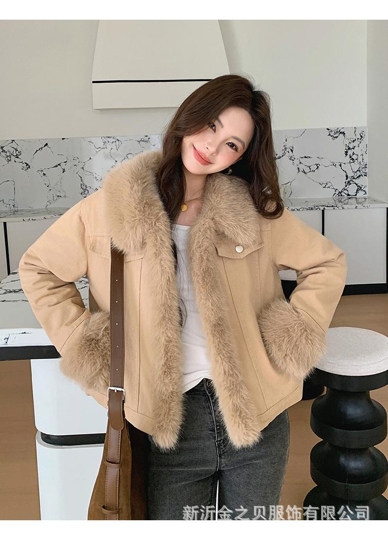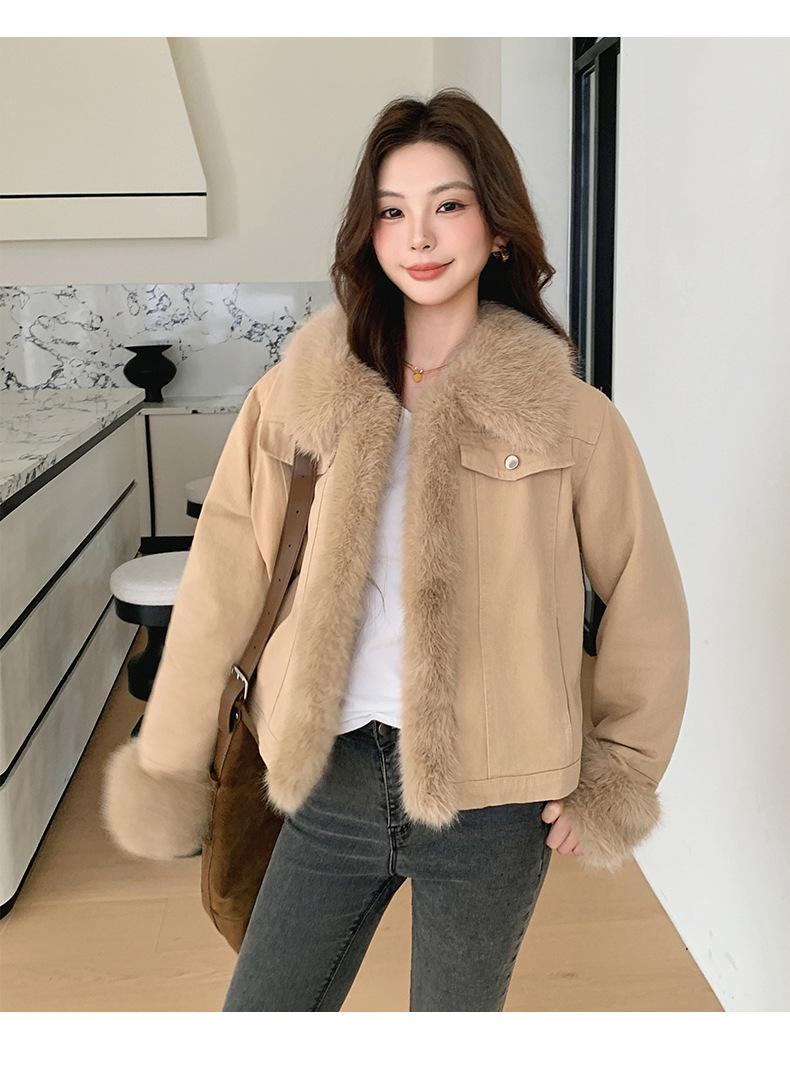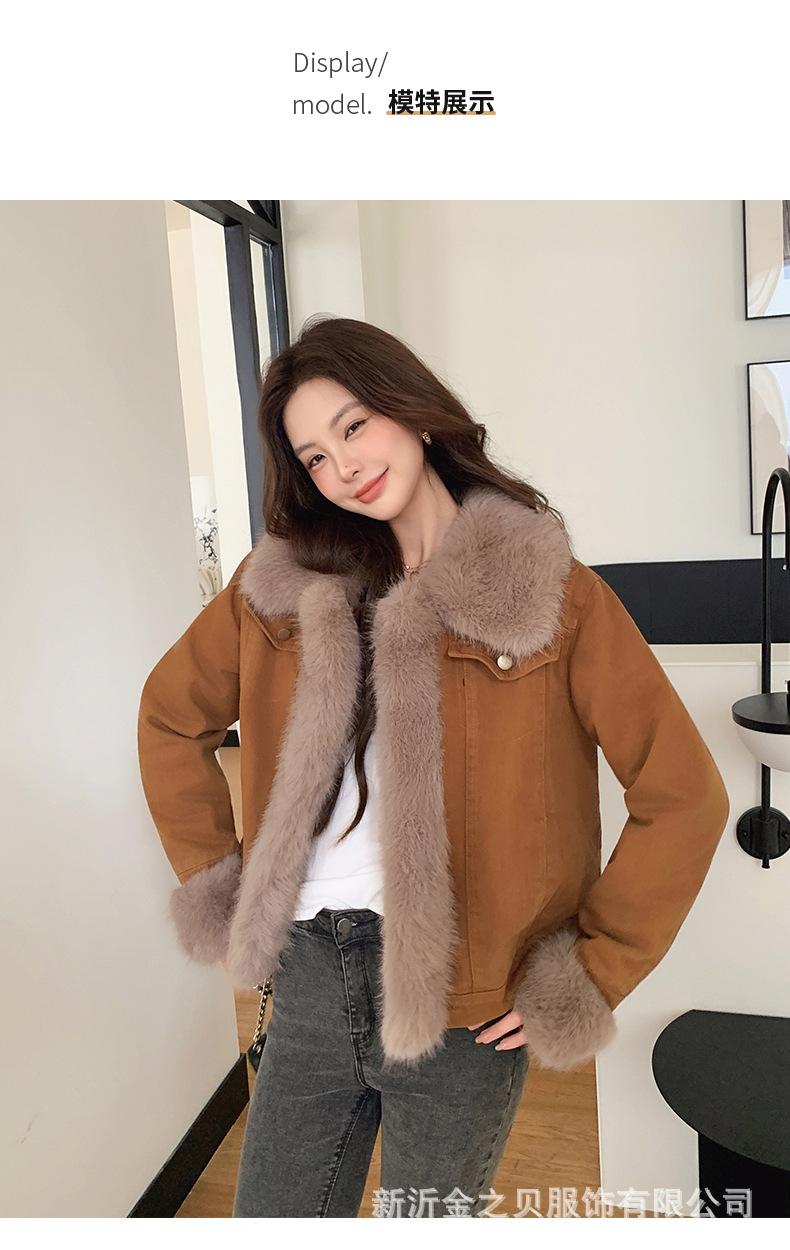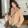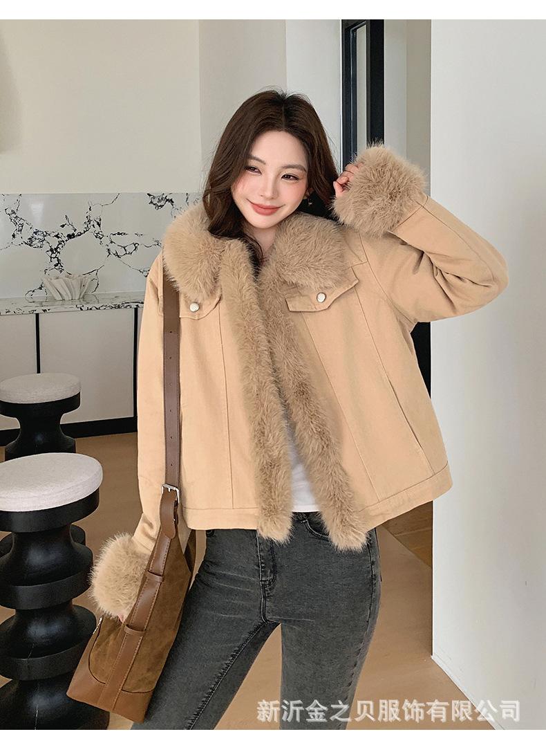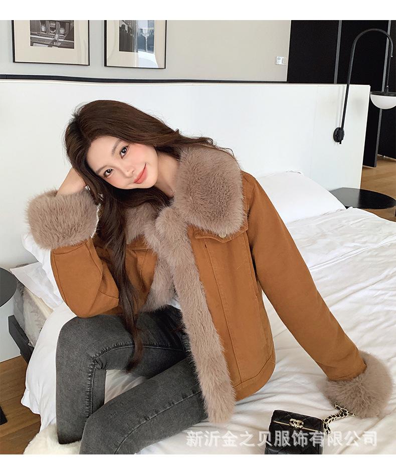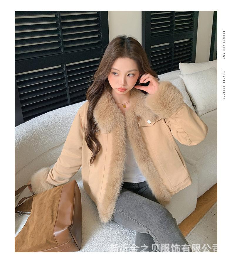 Abrigo de patchwork de felpa de lujo ligero de otoño e invierno, estilo celebridad, piel, moda petite, cálido cuello de piel, corto, ropa de mujer al por mayor