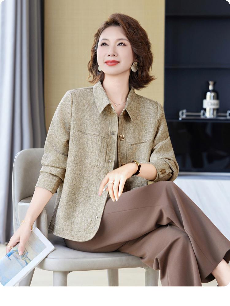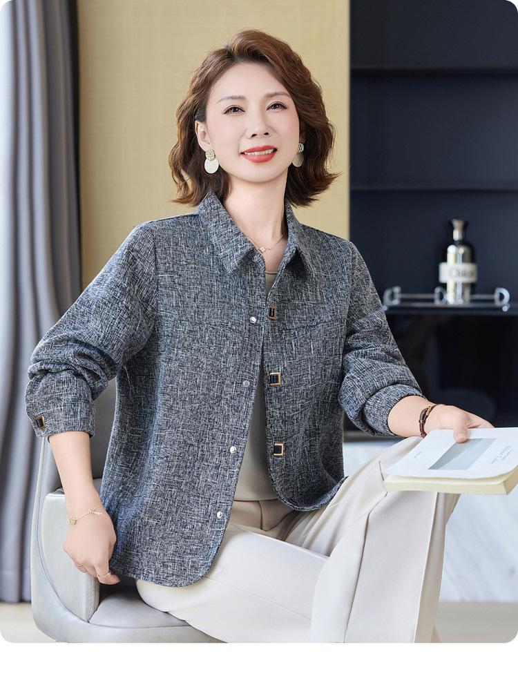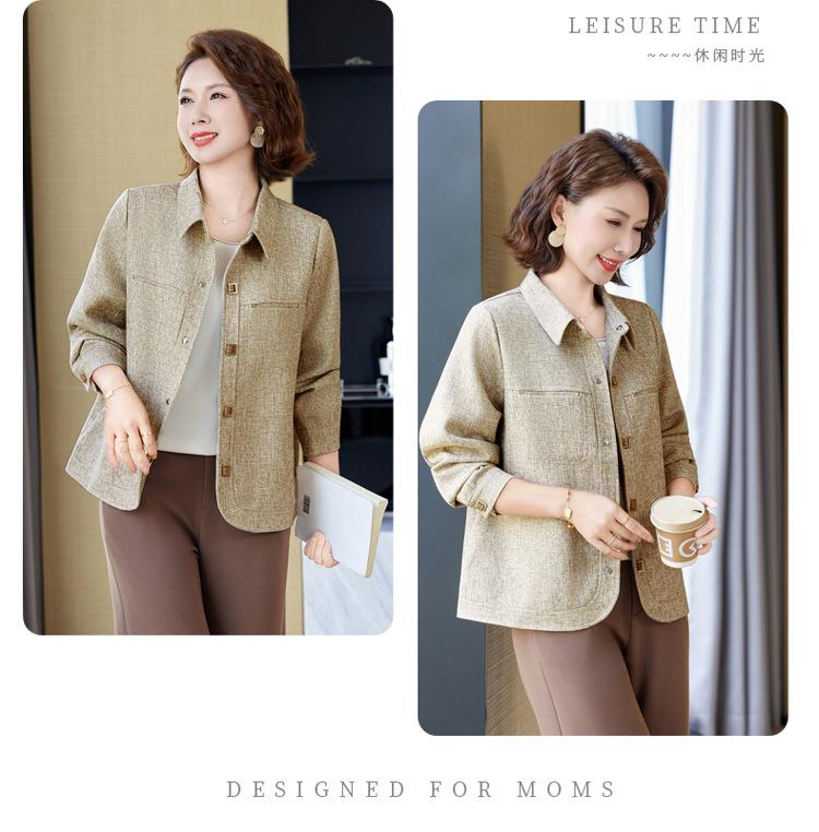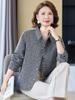Abrigo de Moda Otoñal de Talla Grande para Mamá Abrigo de Lana de Primavera Otoño Ropa de Cuadros para Mujeres de Mediana Edad y Adultas Mayores Nuevo Estilo 2025