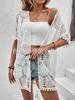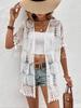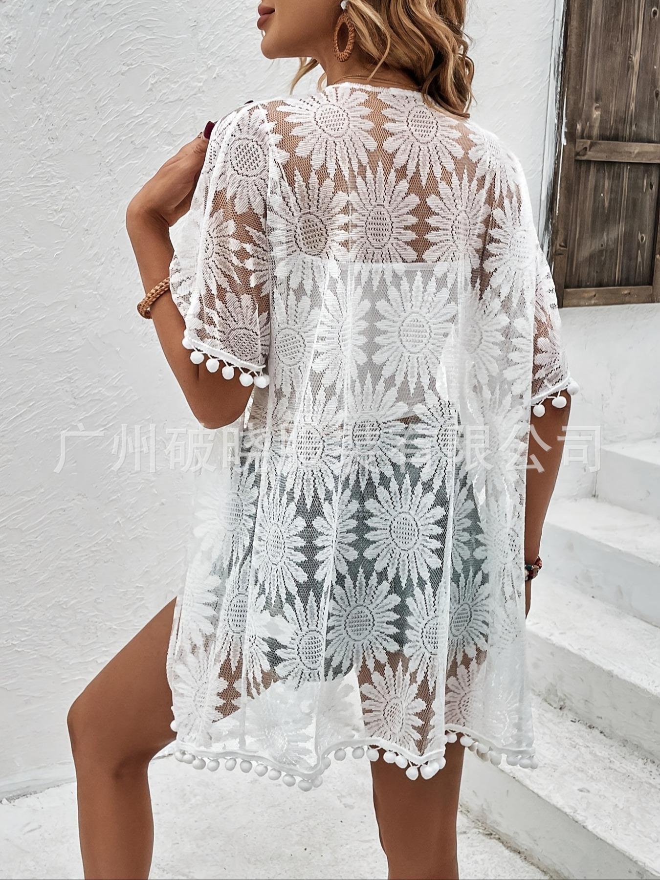 Ropa Europea y Americana Transfronteriza Sexy Cuello en V Profundo Encaje Transparente Correa en la Cintura Bikini de Playa Blusa con Abertura Chaqueta