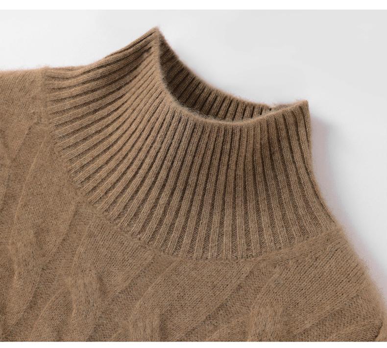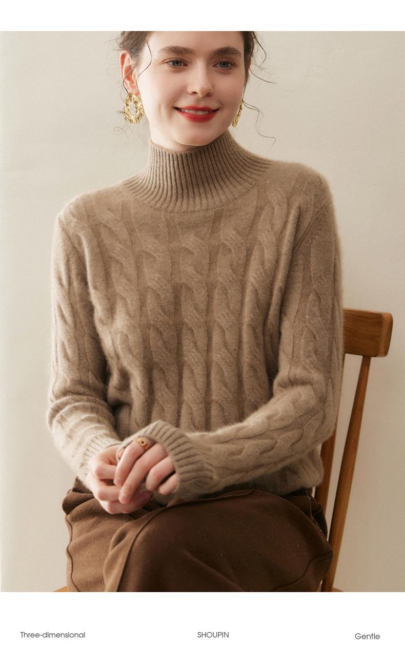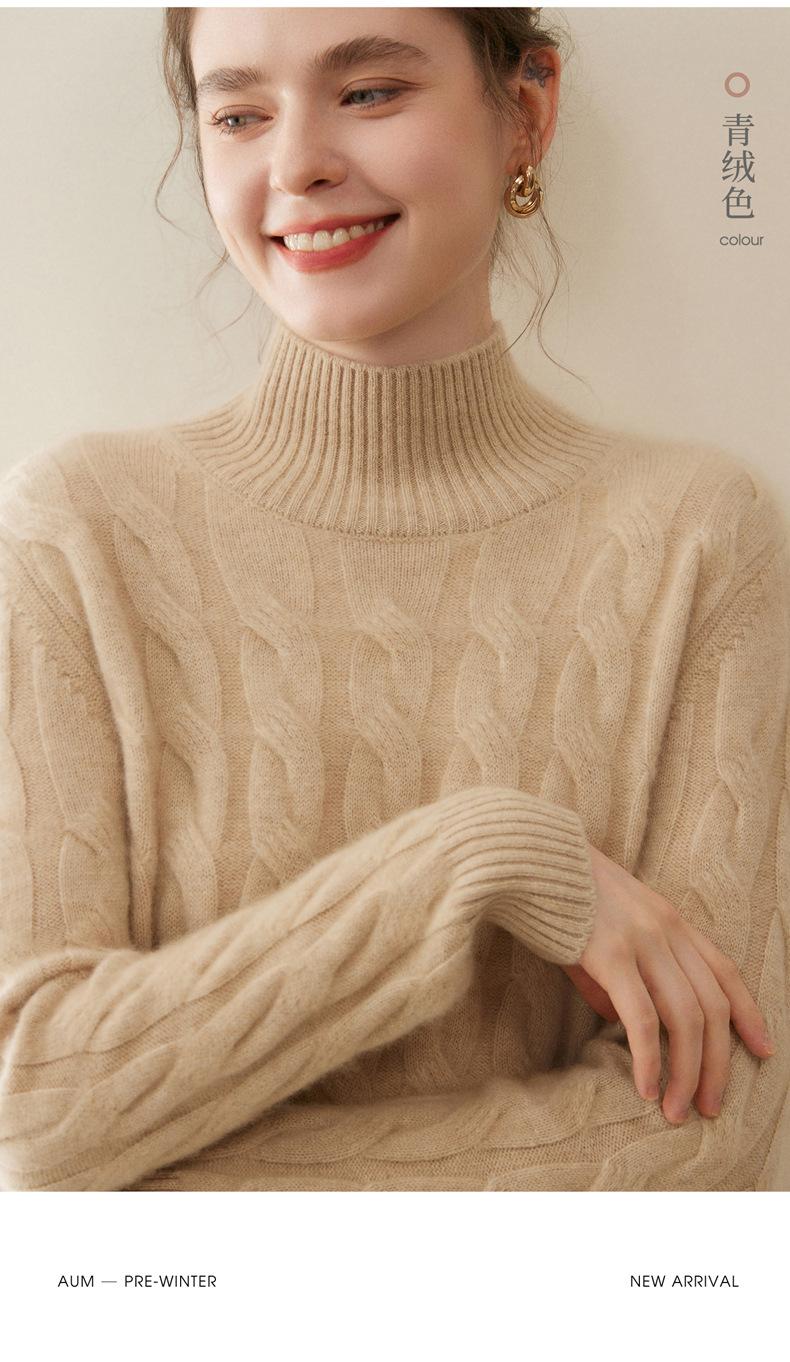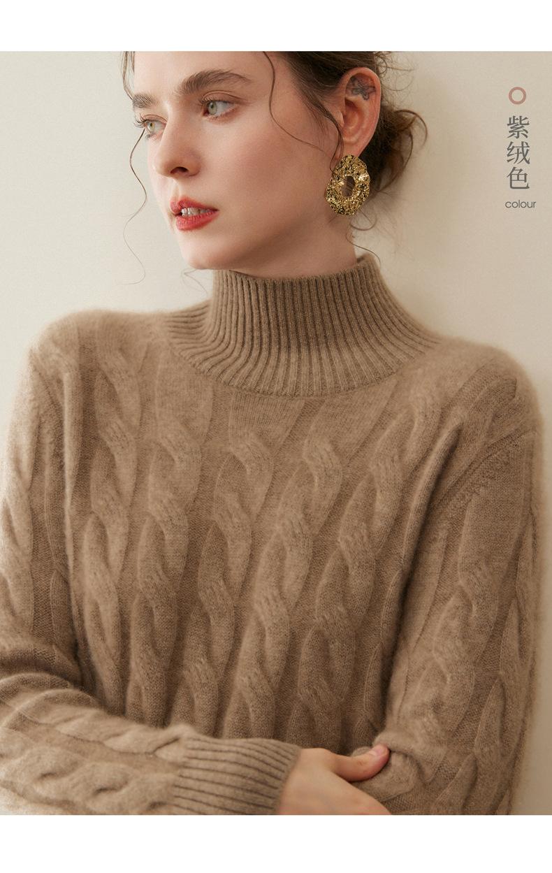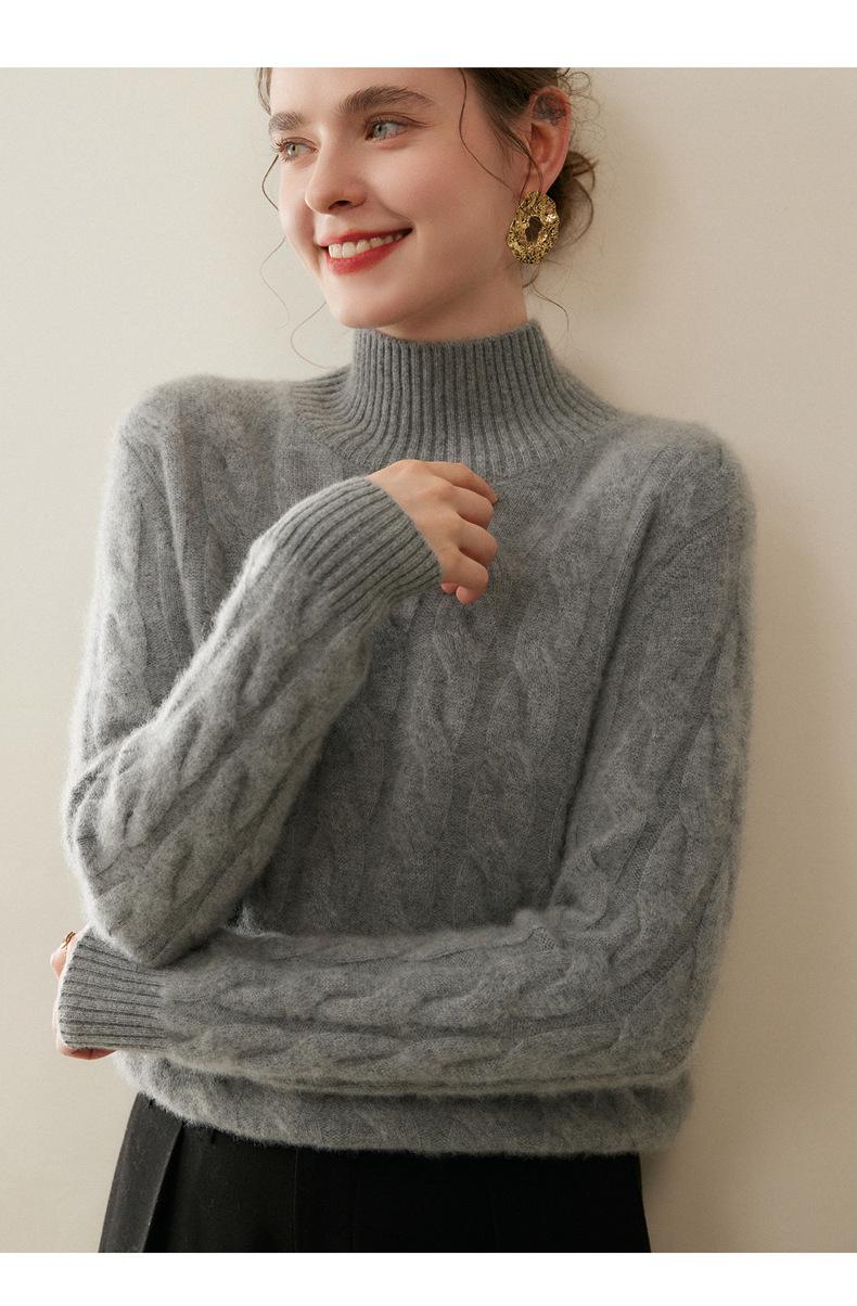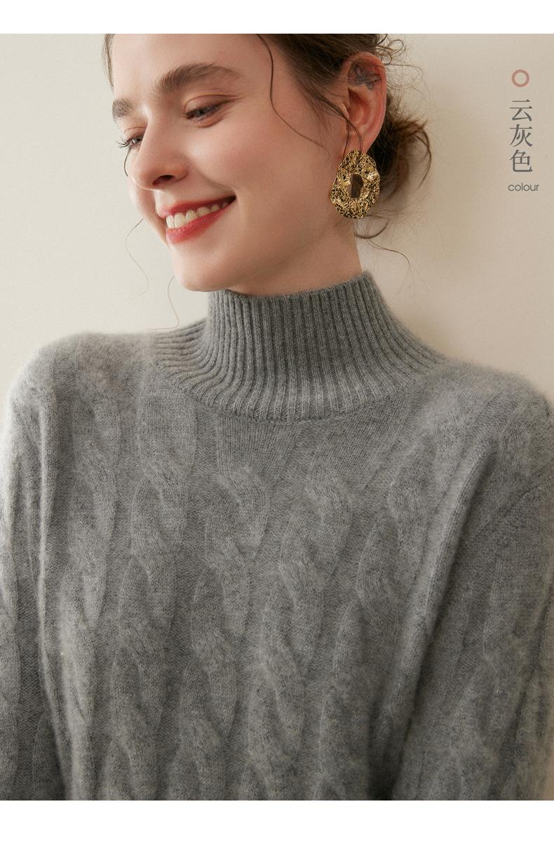 Suéter de Punto Grueso de Doble Hebra 100% Cachemira para Mujer Cuello Semi-Alto Manga Larga Jersey de Cachemira Capa Base Otoño/Invierno Suelto Casual