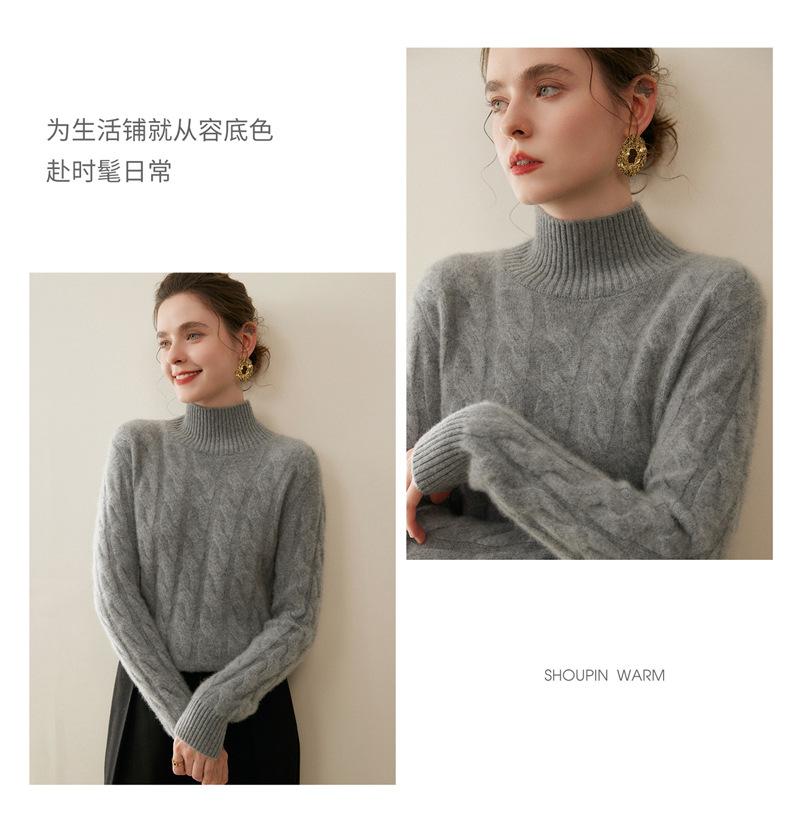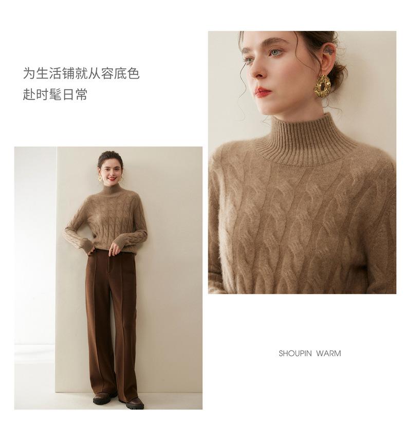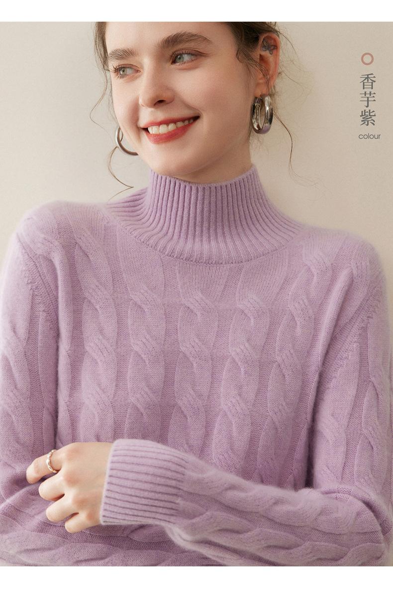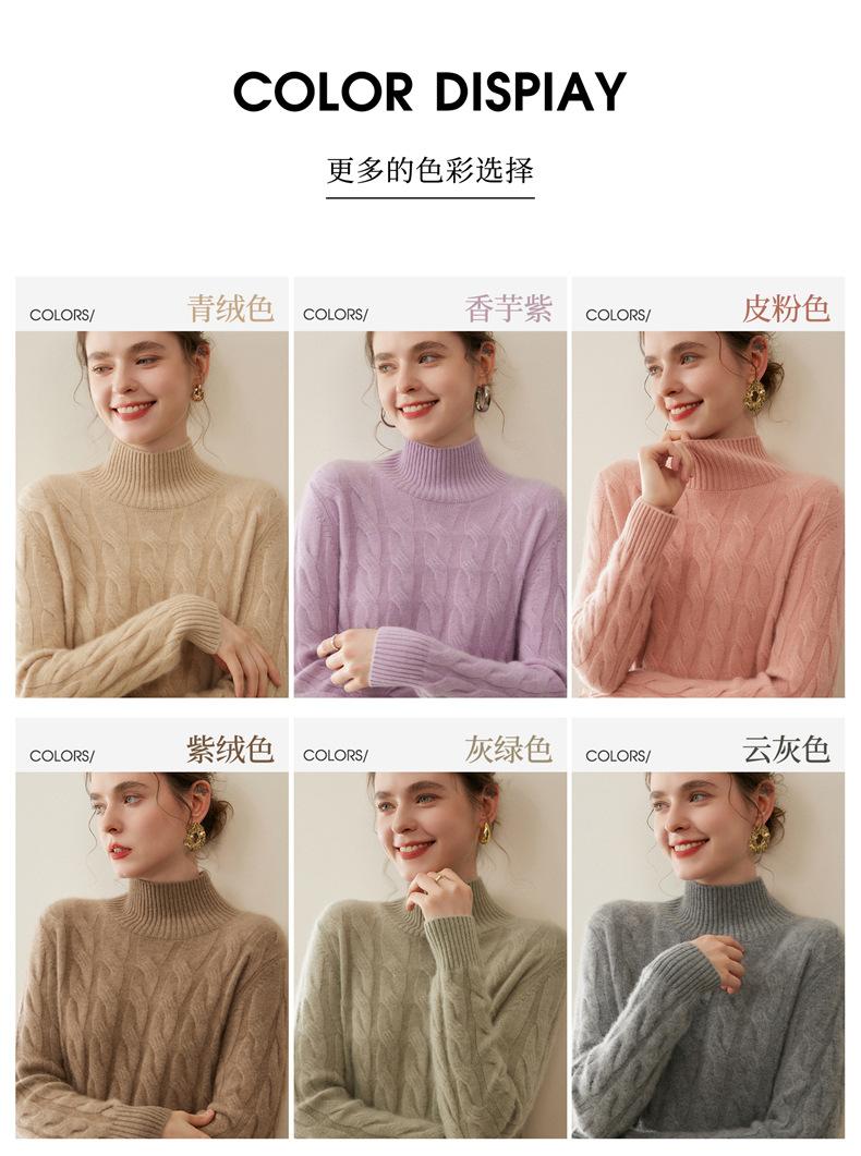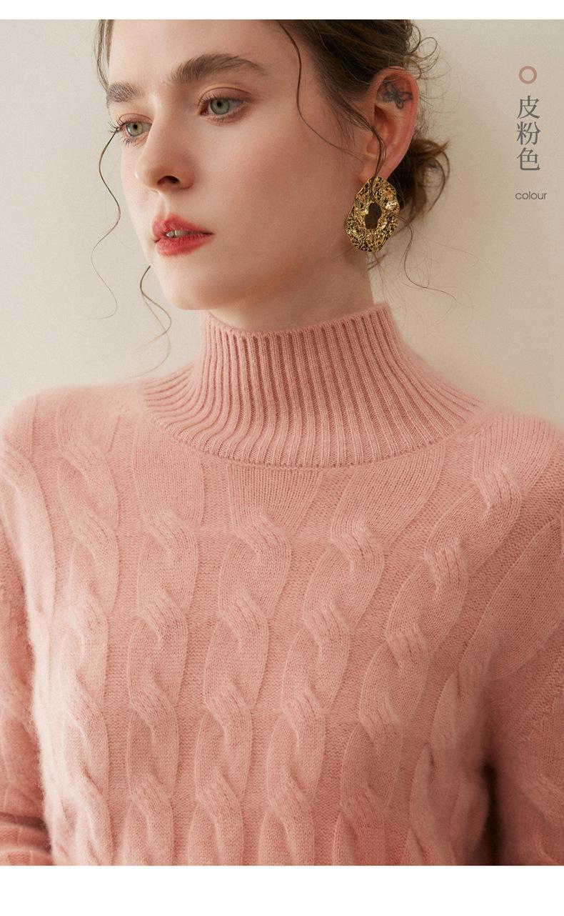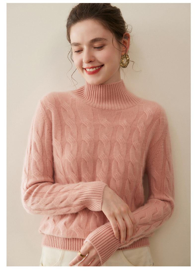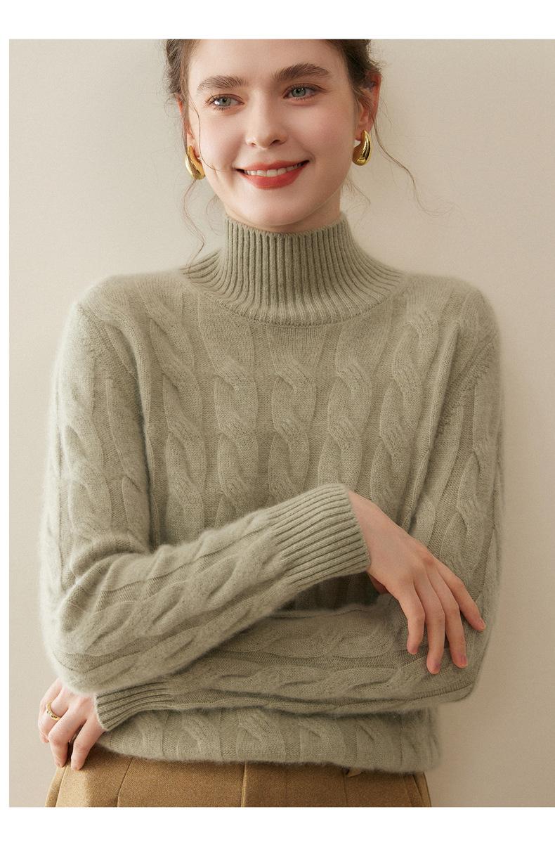 Suéter de Punto Grueso de Doble Hebra 100% Cachemira para Mujer Cuello Semi-Alto Manga Larga Jersey de Cachemira Capa Base Otoño/Invierno Suelto Casual