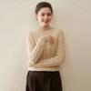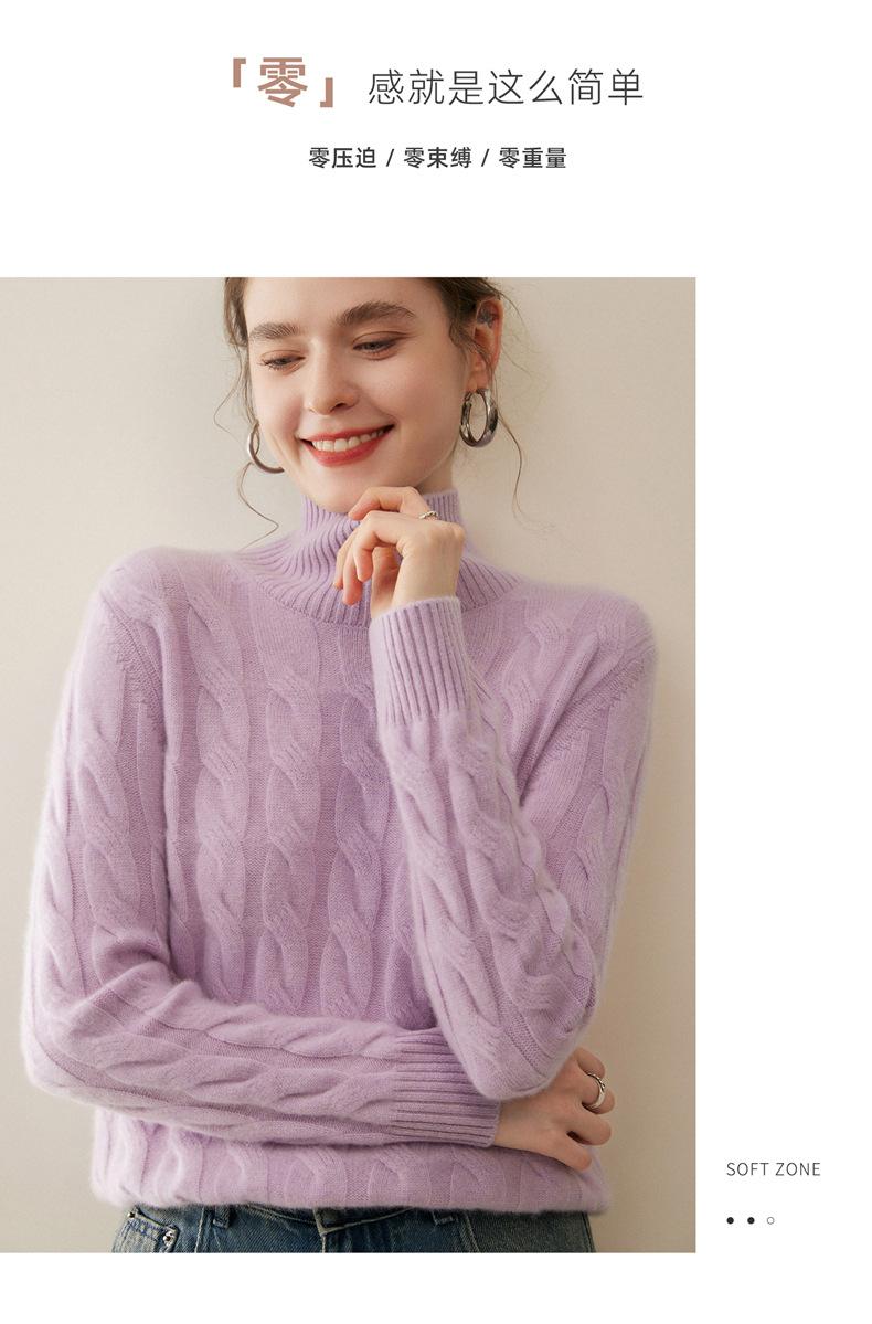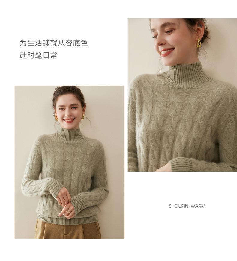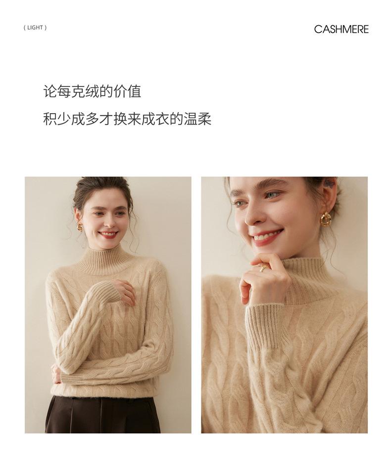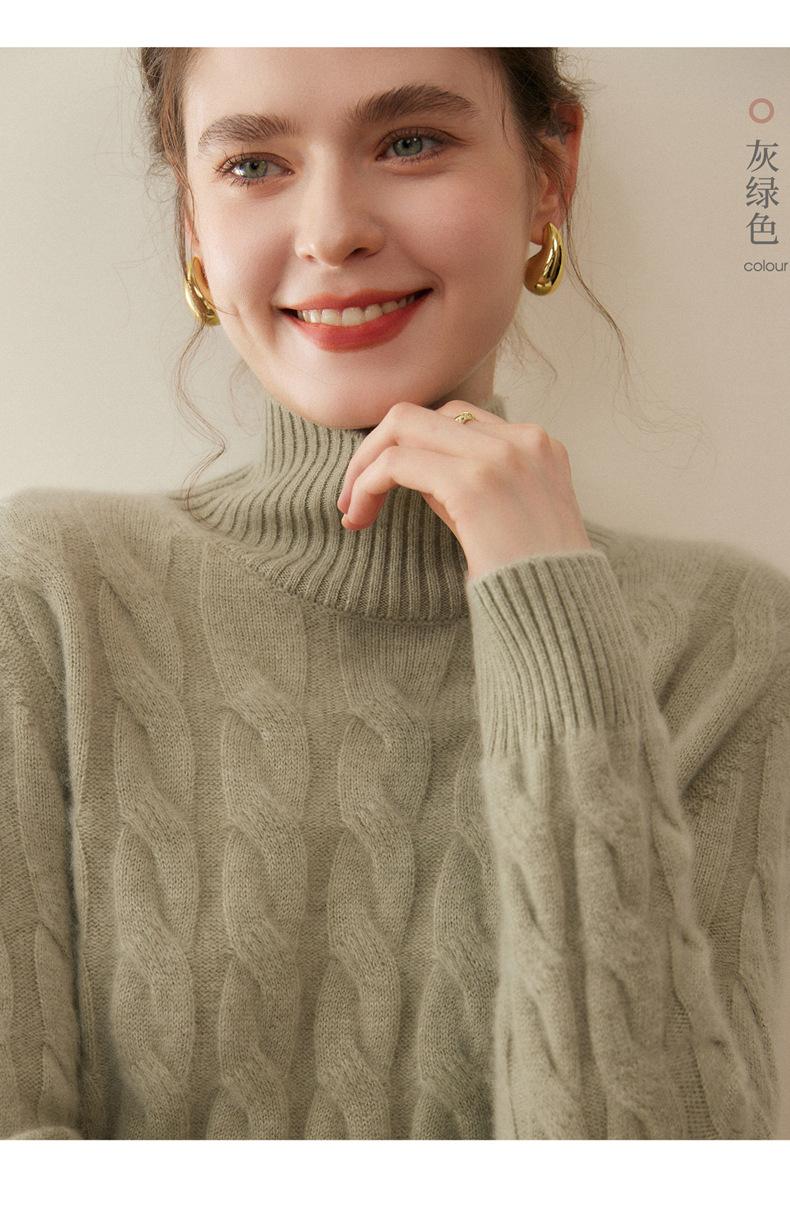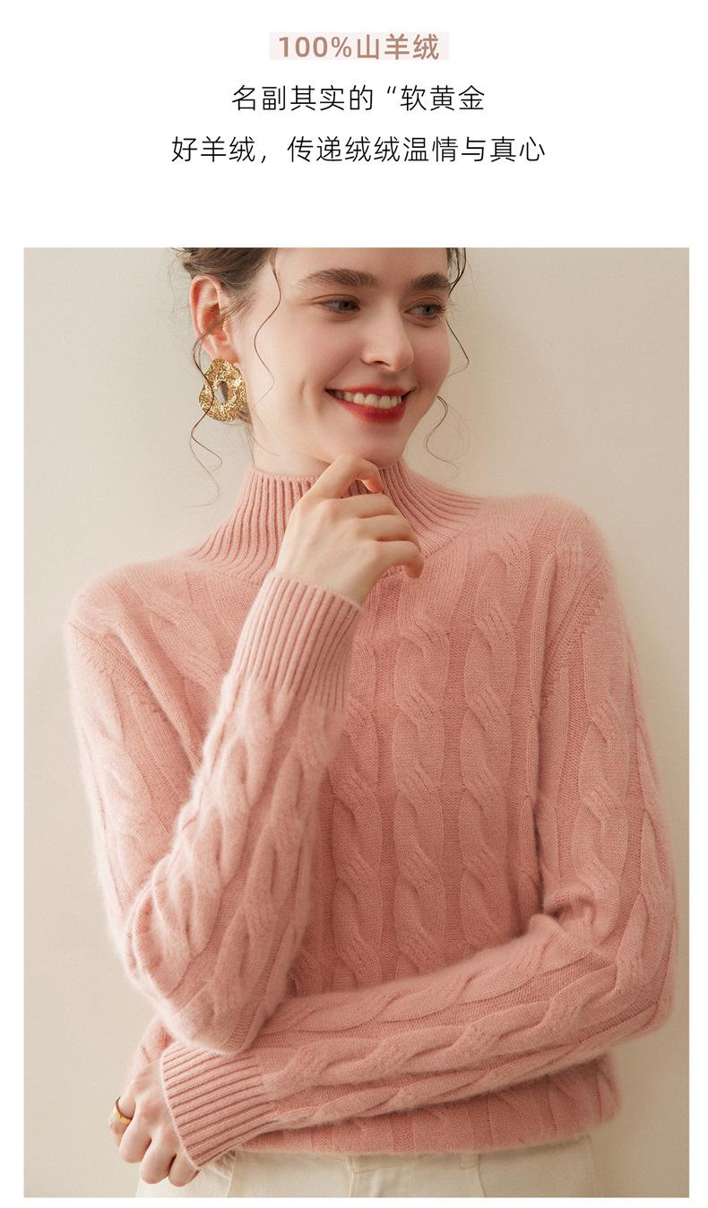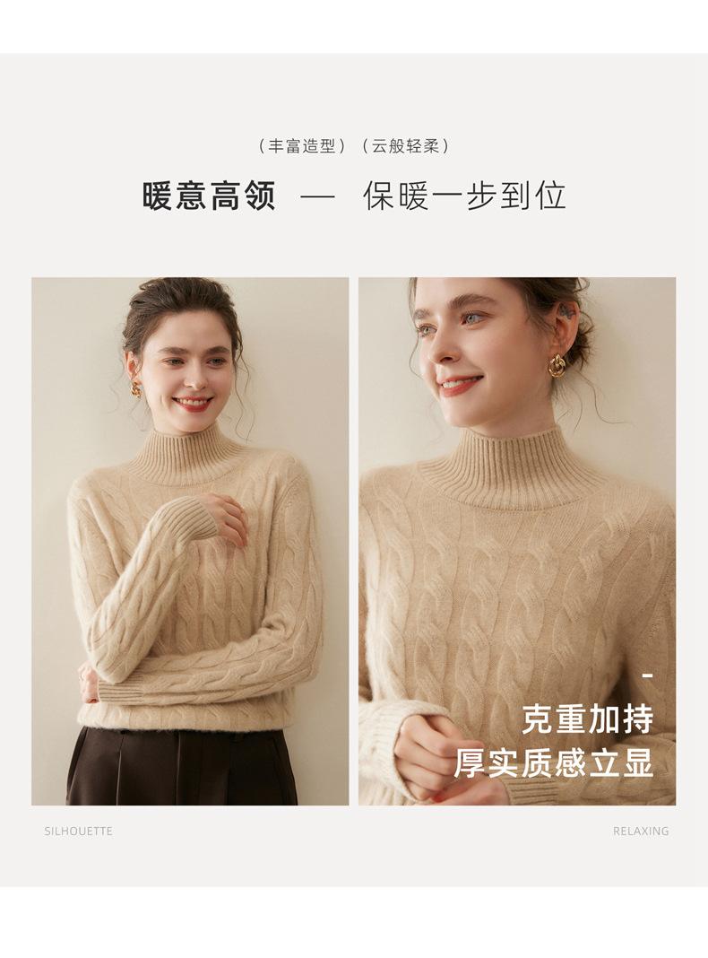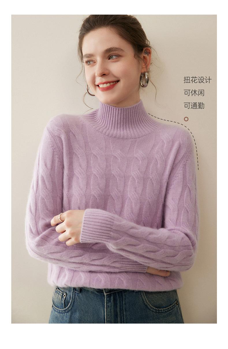 Suéter de Punto Grueso de Doble Hebra 100% Cachemira para Mujer Cuello Semi-Alto Manga Larga Jersey de Cachemira Capa Base Otoño/Invierno Suelto Casual