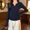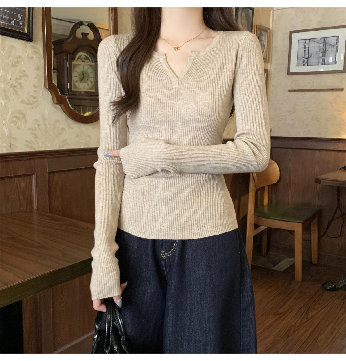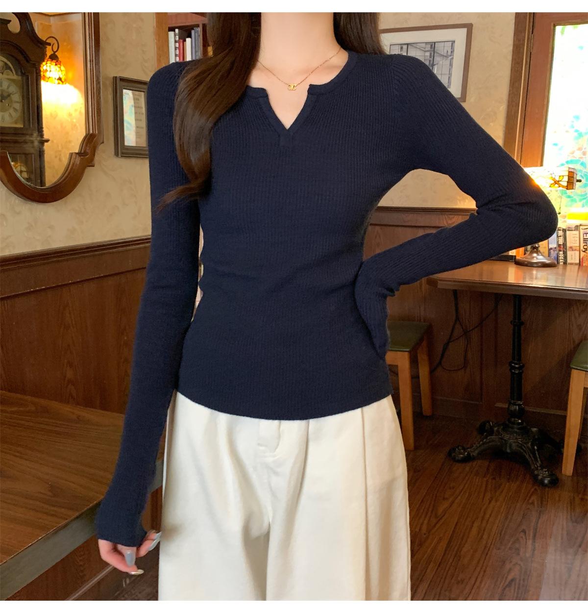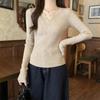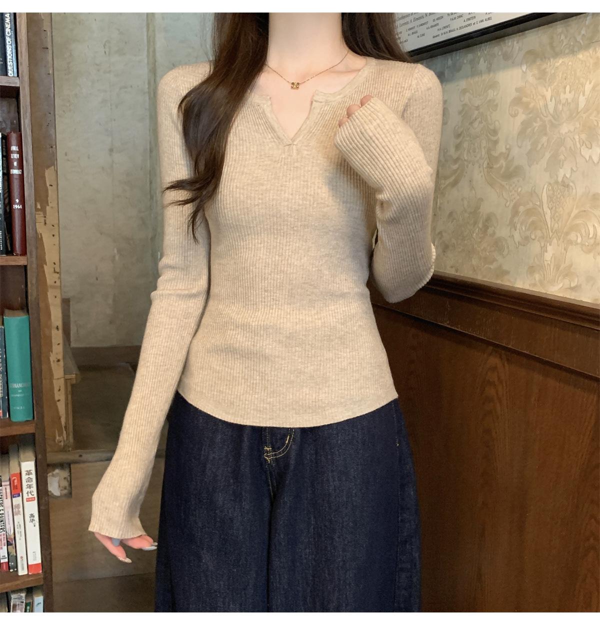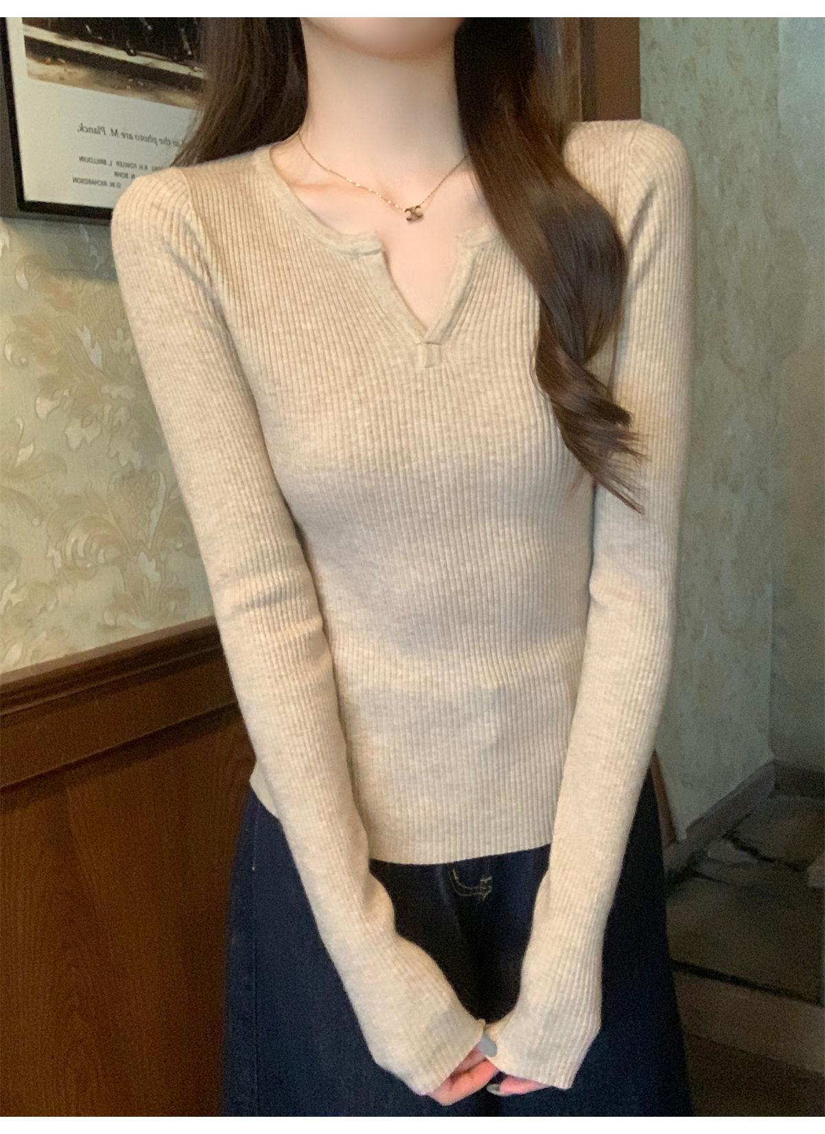 Otoño 2025 Nuevo Estilo Coreano Simple Ajustado Cuello en V Color Sólido Básico Top Ropa Interior Suéter de Punto Manga Larga para Mujer