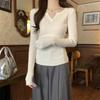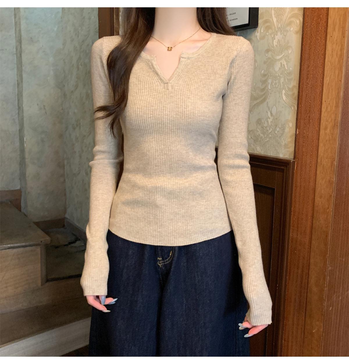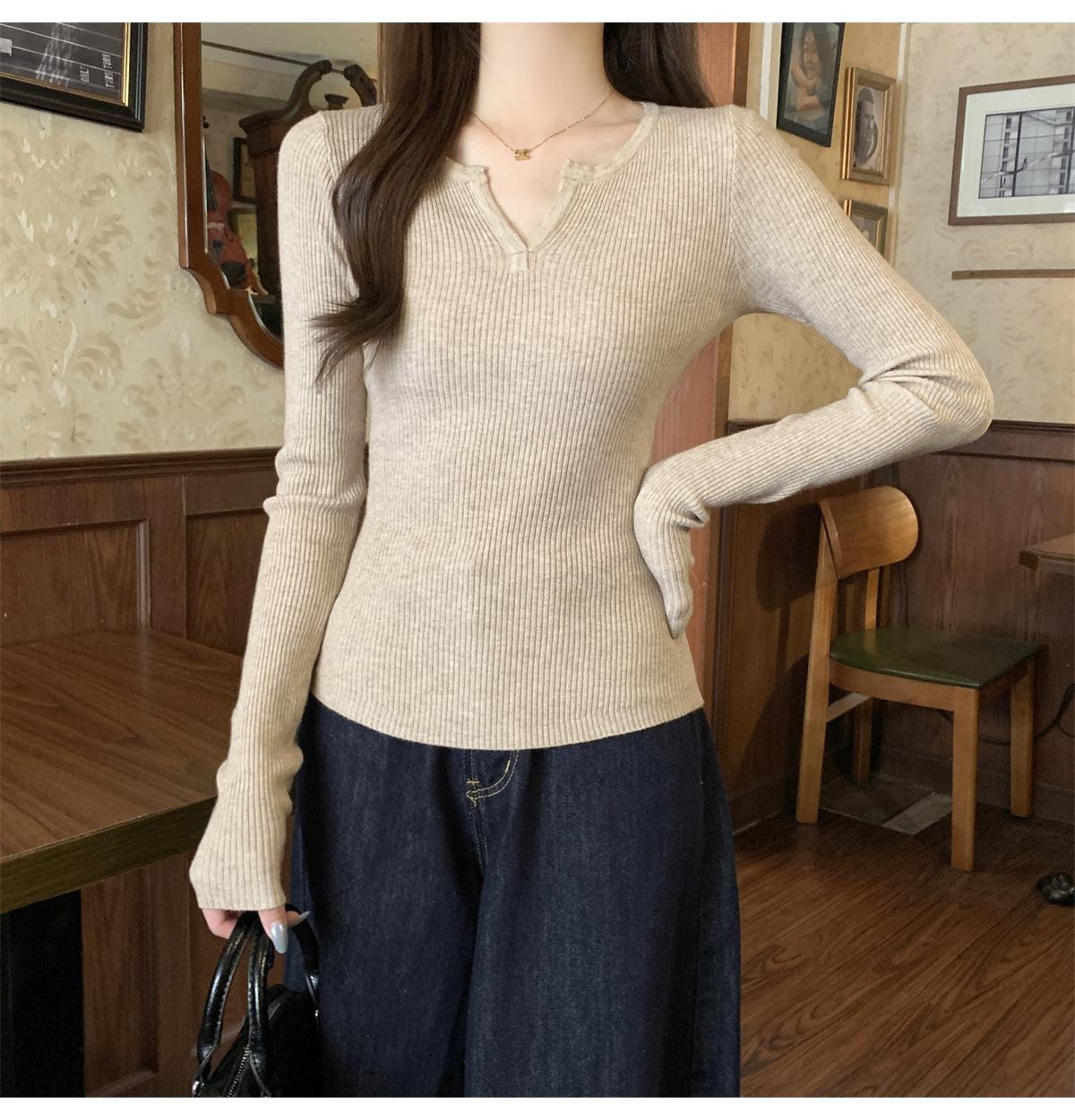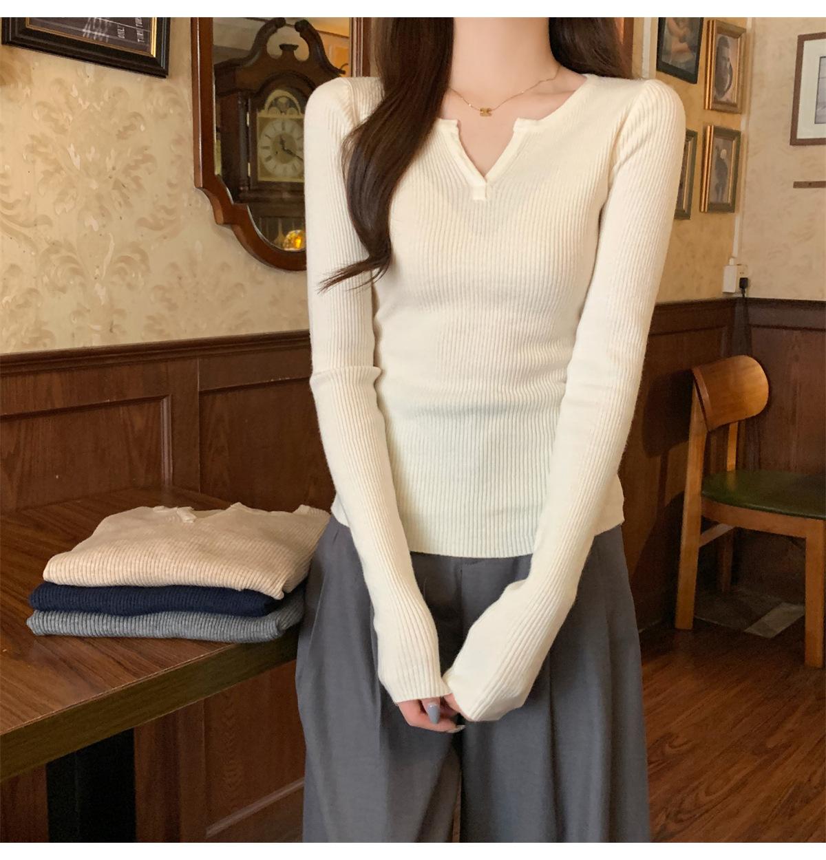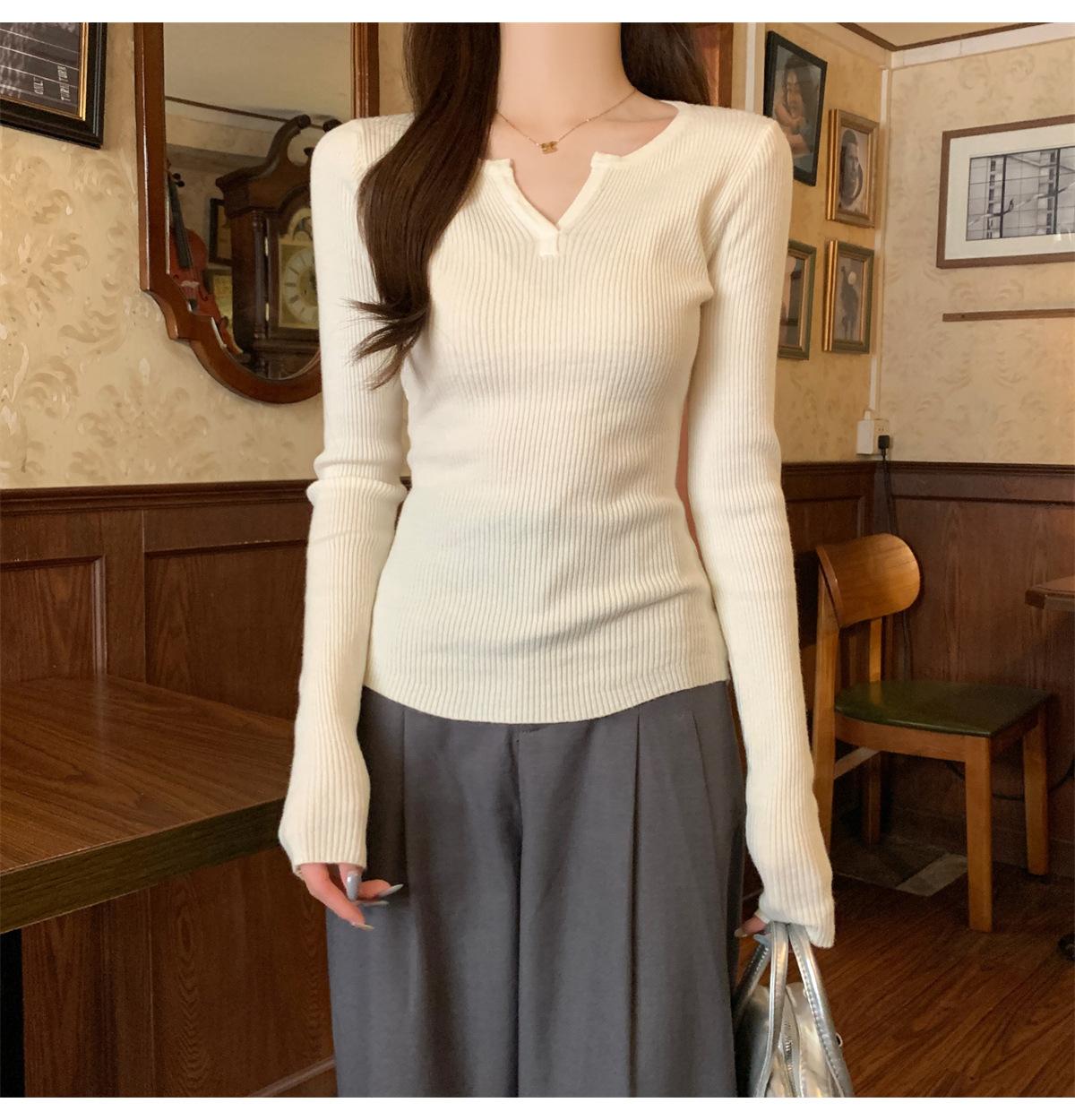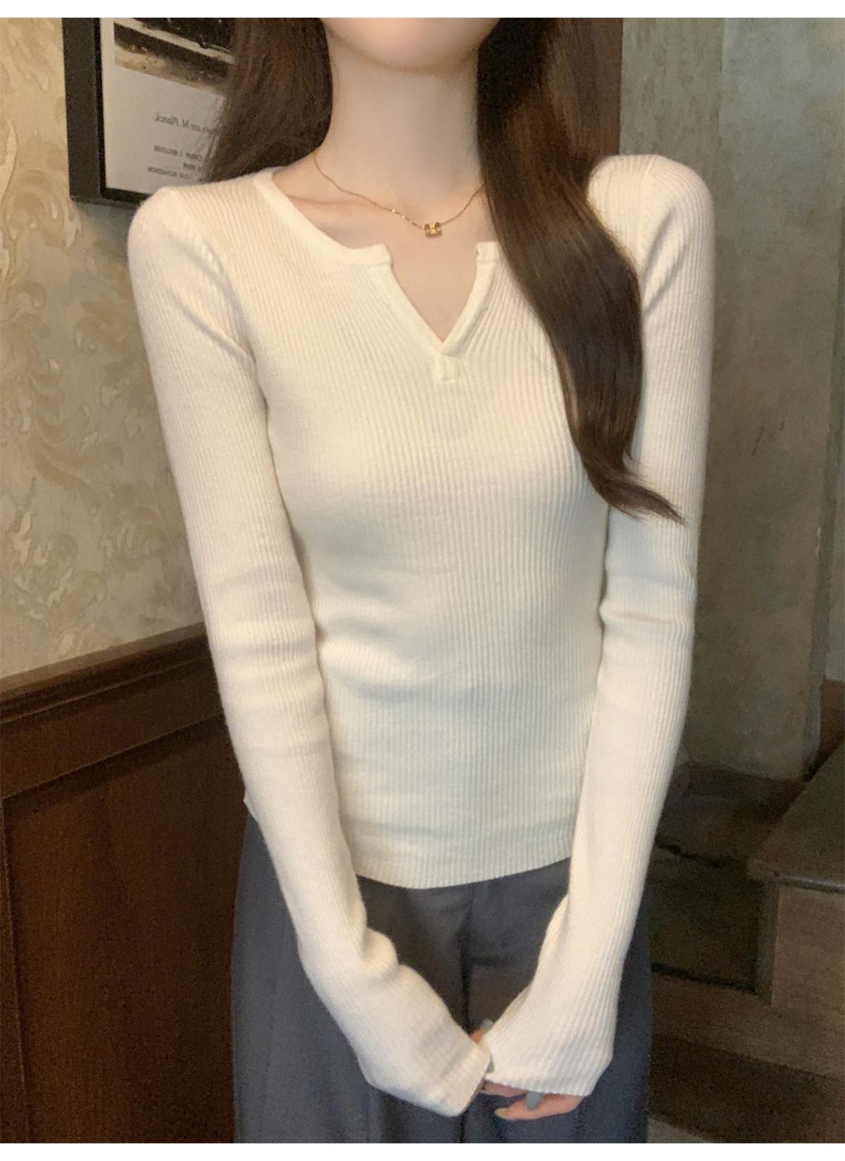 Otoño 2025 Nuevo Estilo Coreano Simple Ajustado Cuello en V Color Sólido Básico Top Ropa Interior Suéter de Punto Manga Larga para Mujer