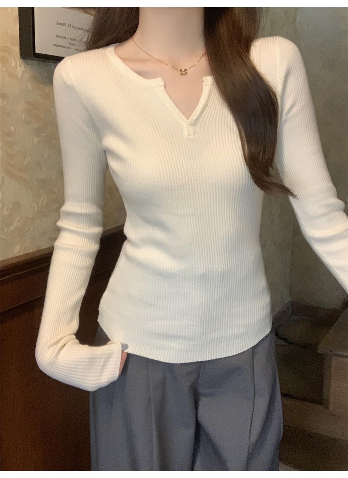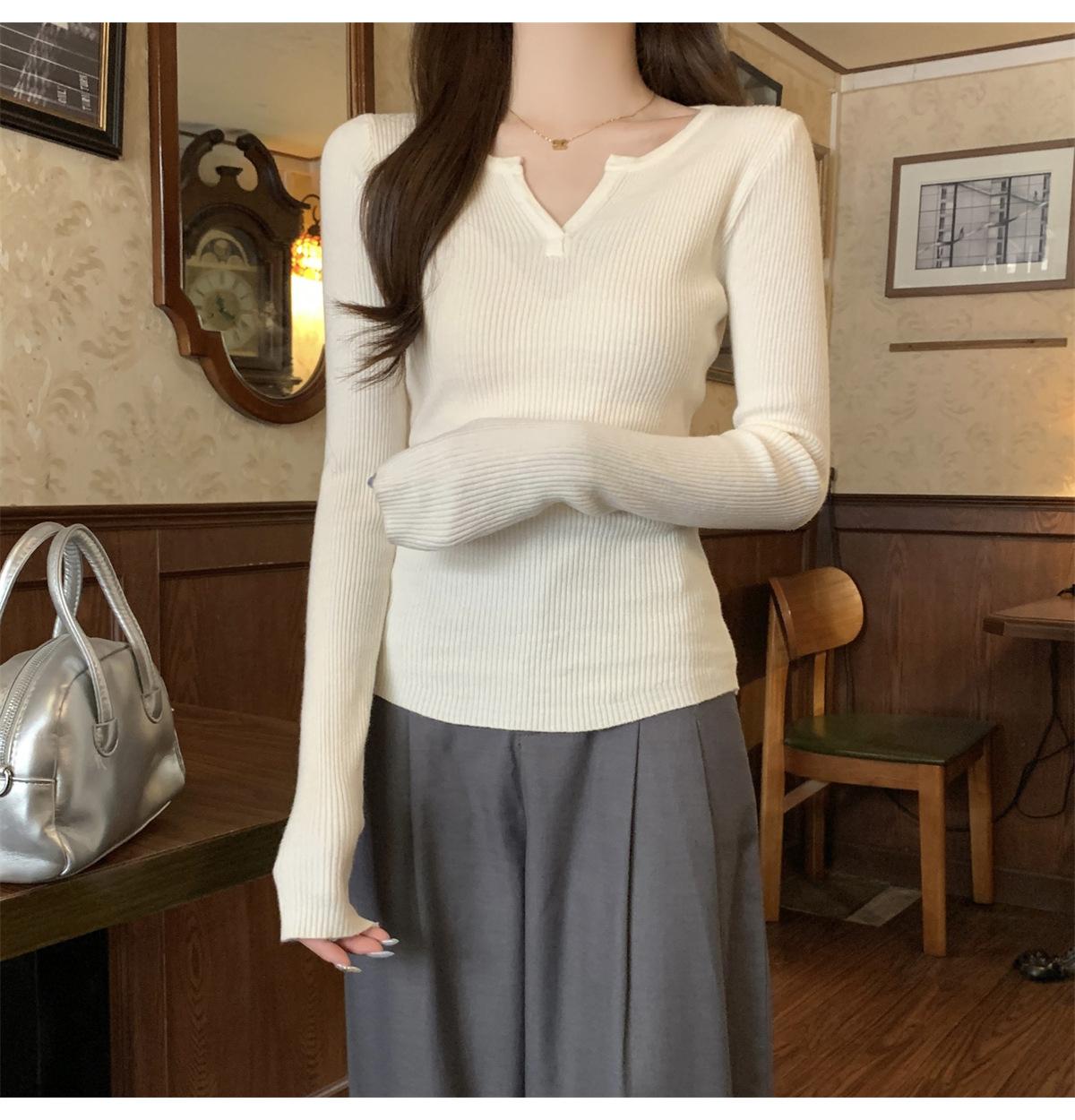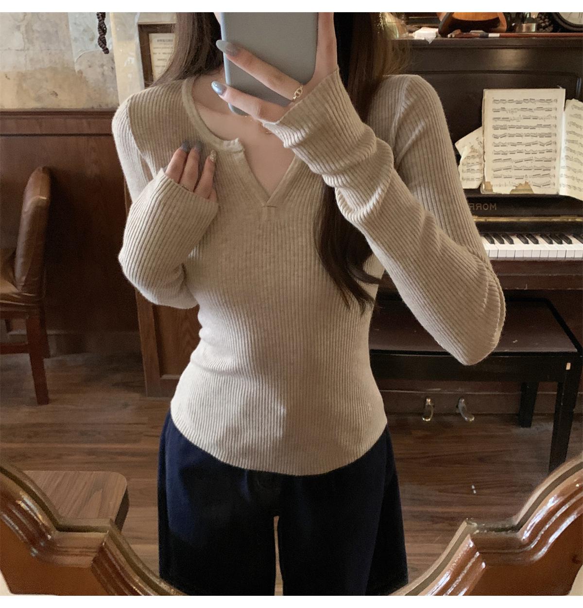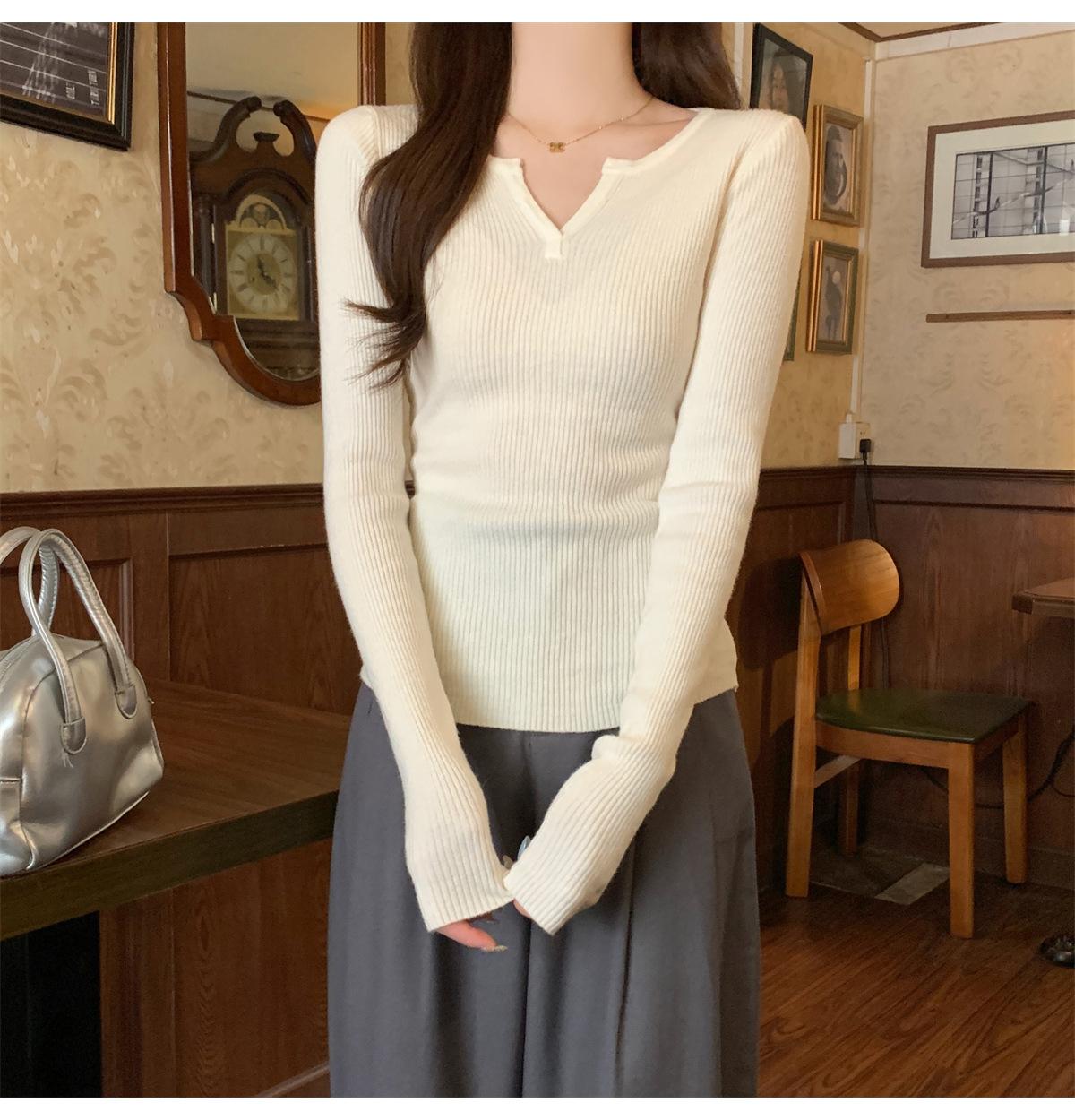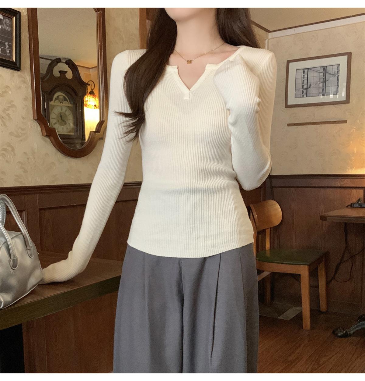 Otoño 2025 Nuevo Estilo Coreano Simple Ajustado Cuello en V Color Sólido Básico Top Ropa Interior Suéter de Punto Manga Larga para Mujer
