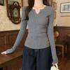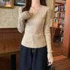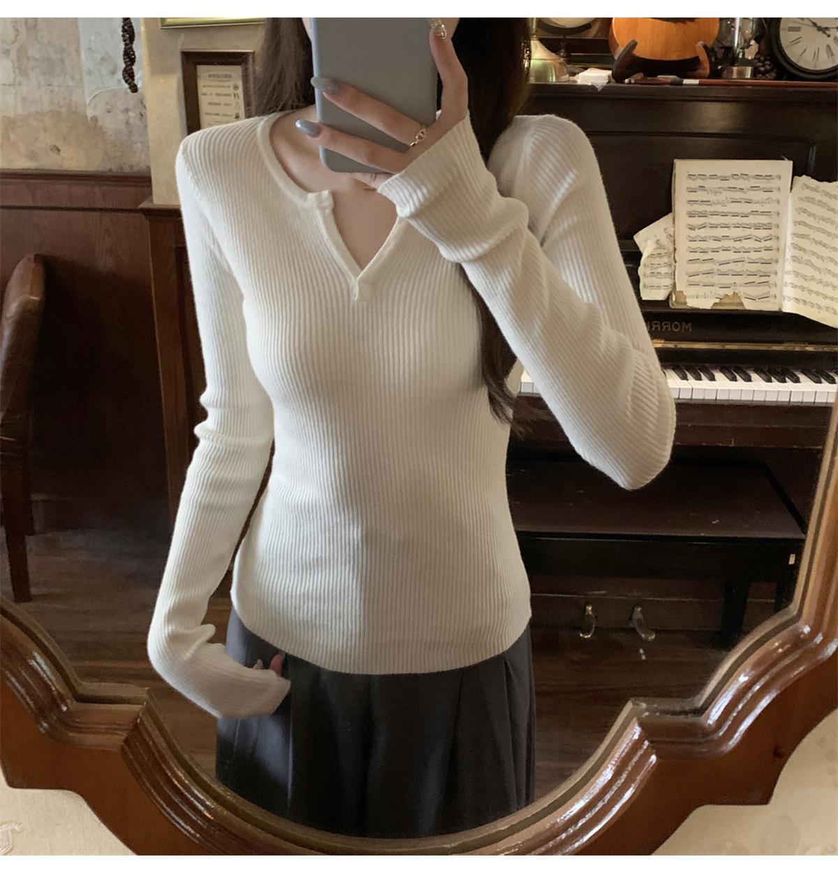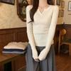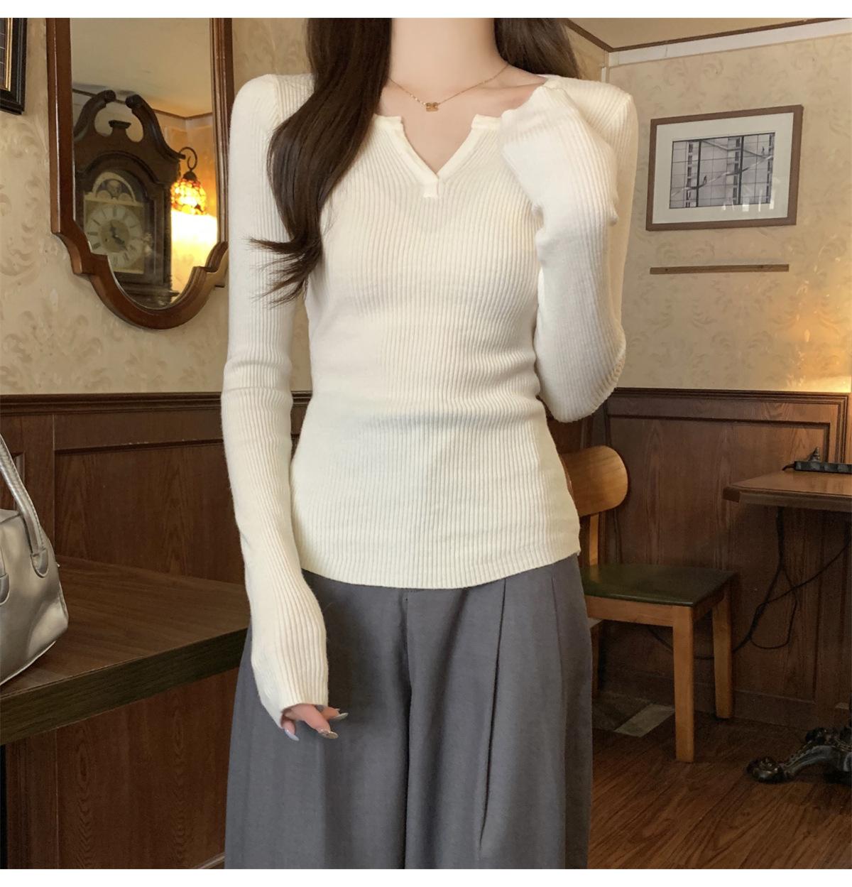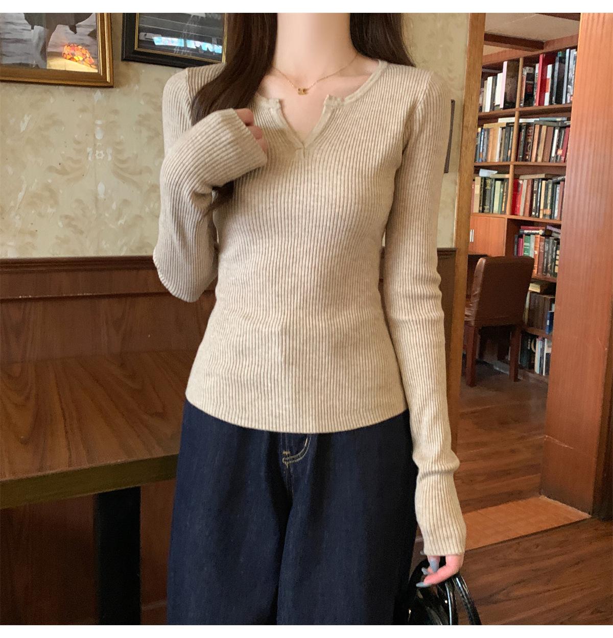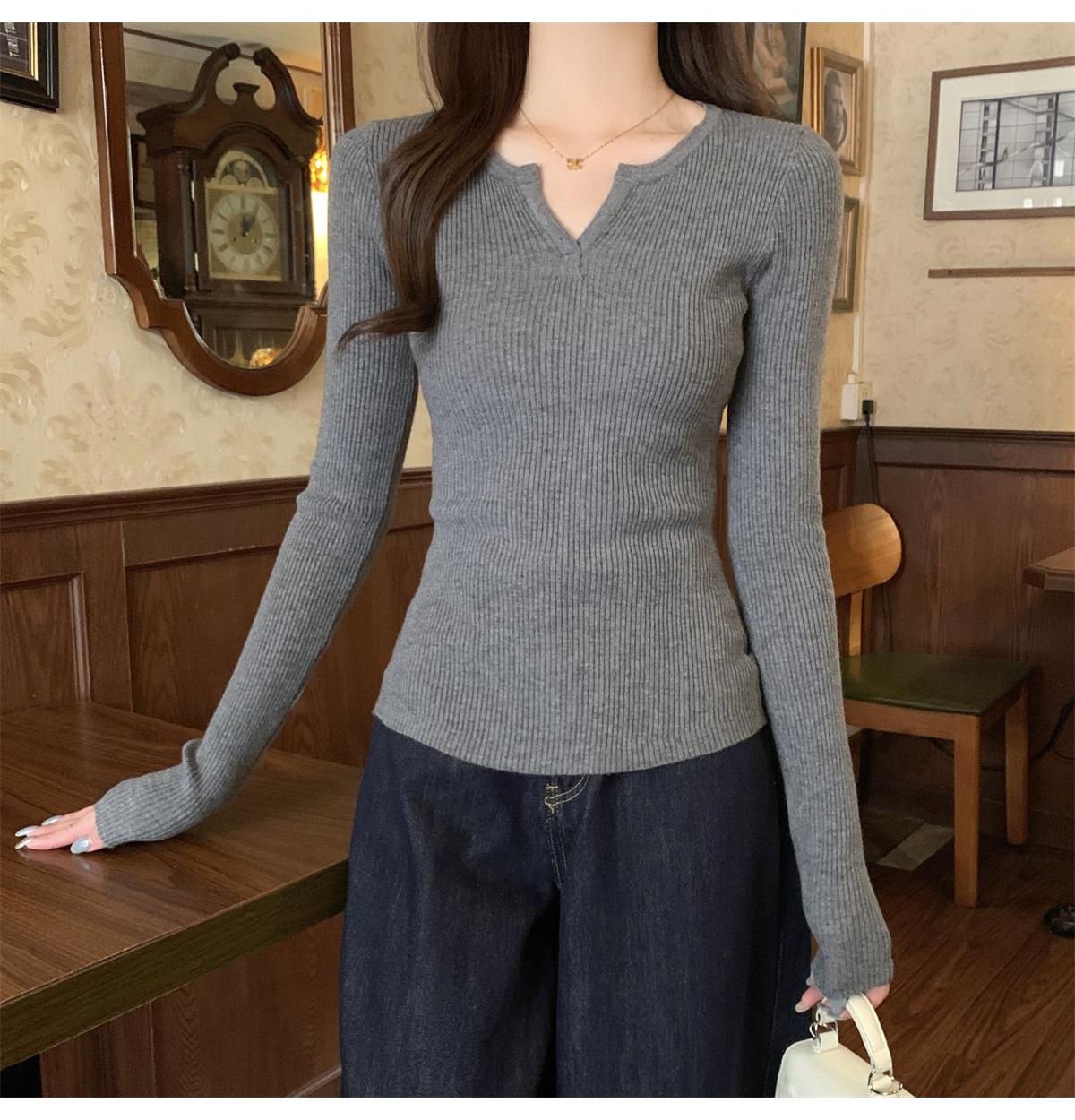 Otoño 2025 Nuevo Estilo Coreano Simple Ajustado Cuello en V Color Sólido Básico Top Ropa Interior Suéter de Punto Manga Larga para Mujer