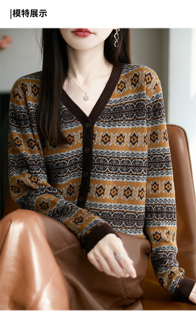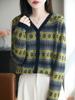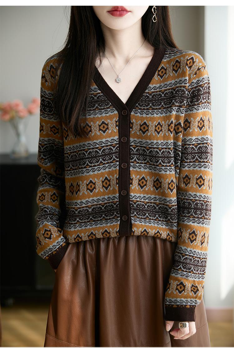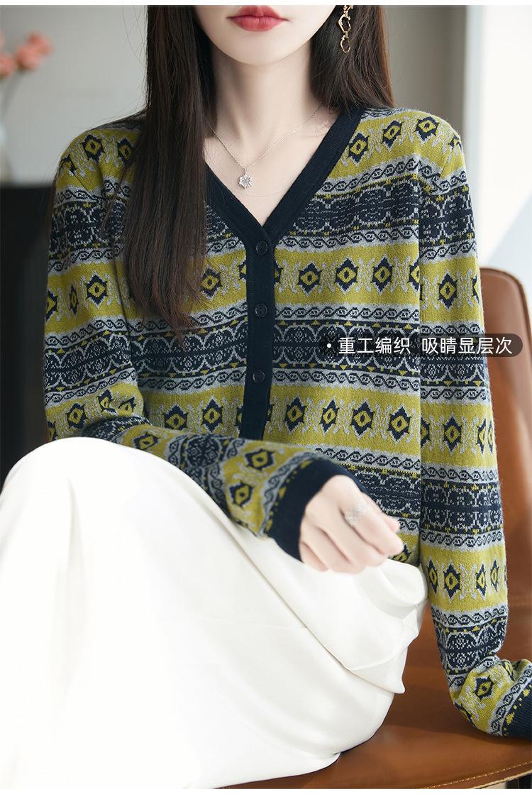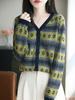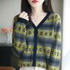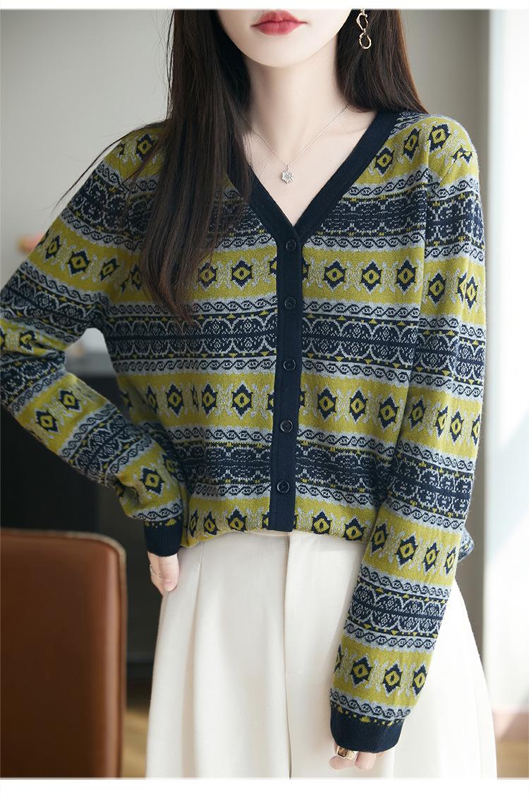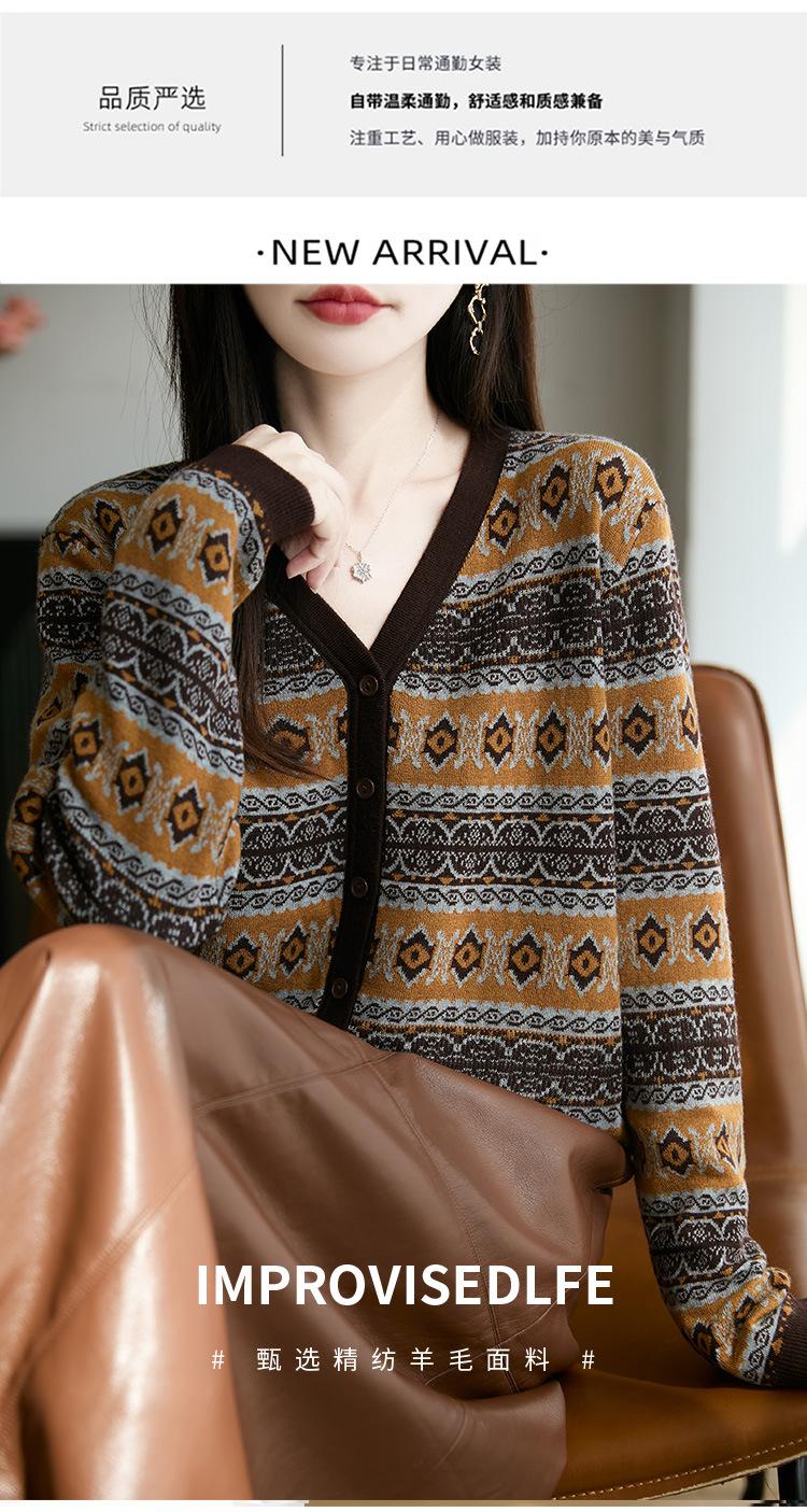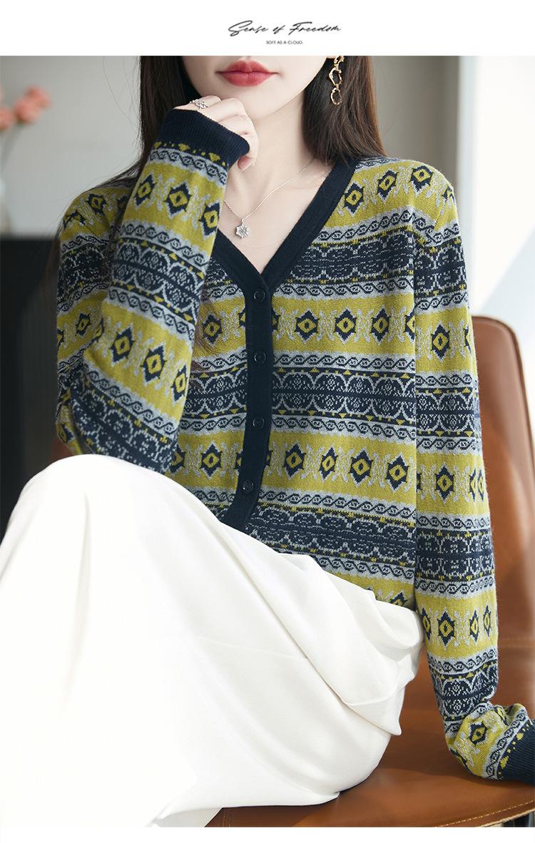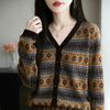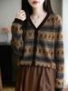 Cárdigan de Punto de Lana Fina Retro Nuevo de Principios de Otoño 2025 con Cuello en V y Manga Larga para Mujer, Abrigo Superior Suelto Jacquard