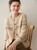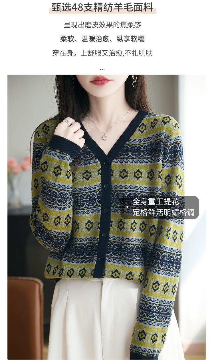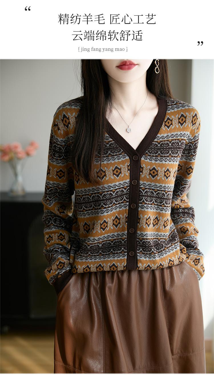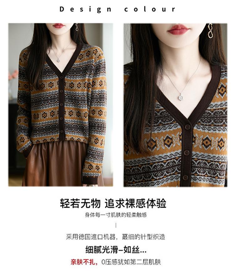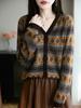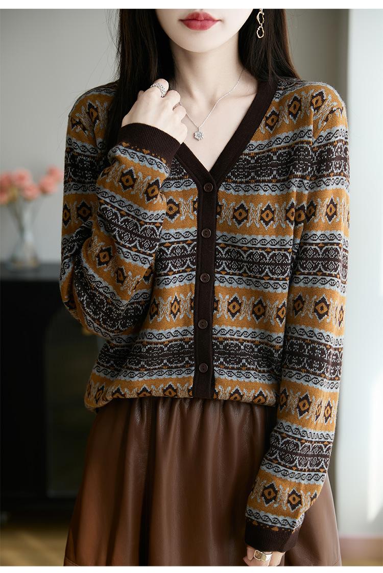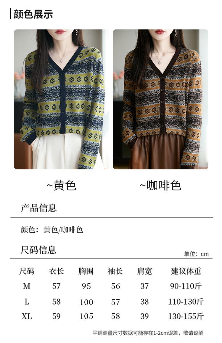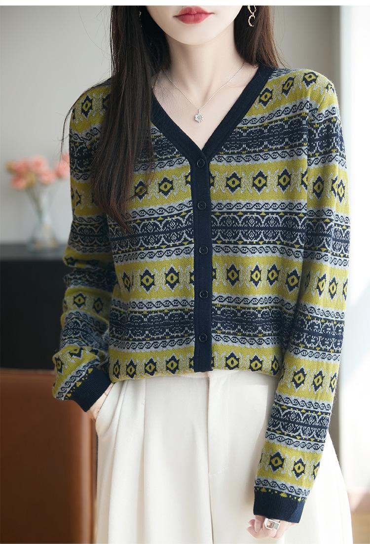 Cárdigan de Punto de Lana Fina Retro Nuevo de Principios de Otoño 2025 con Cuello en V y Manga Larga para Mujer, Abrigo Superior Suelto Jacquard