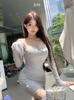 Ropa de Mujer Transfronteriza Europea y Americana 2025 Chica Caliente Moda Sexy Vestido Bodycon Adelgazante con Malla Empalmada Negra
