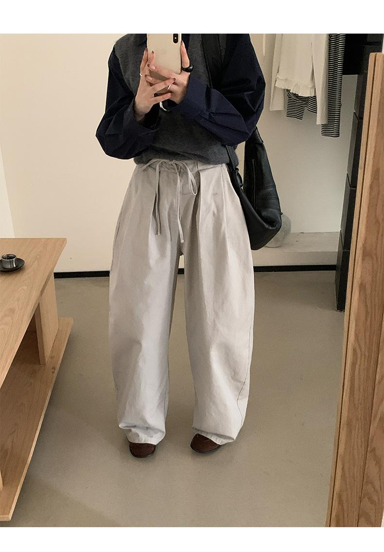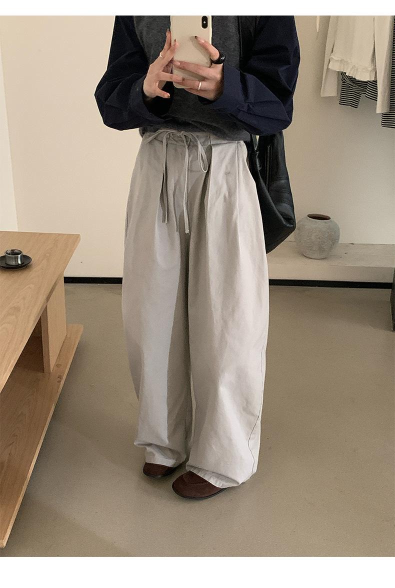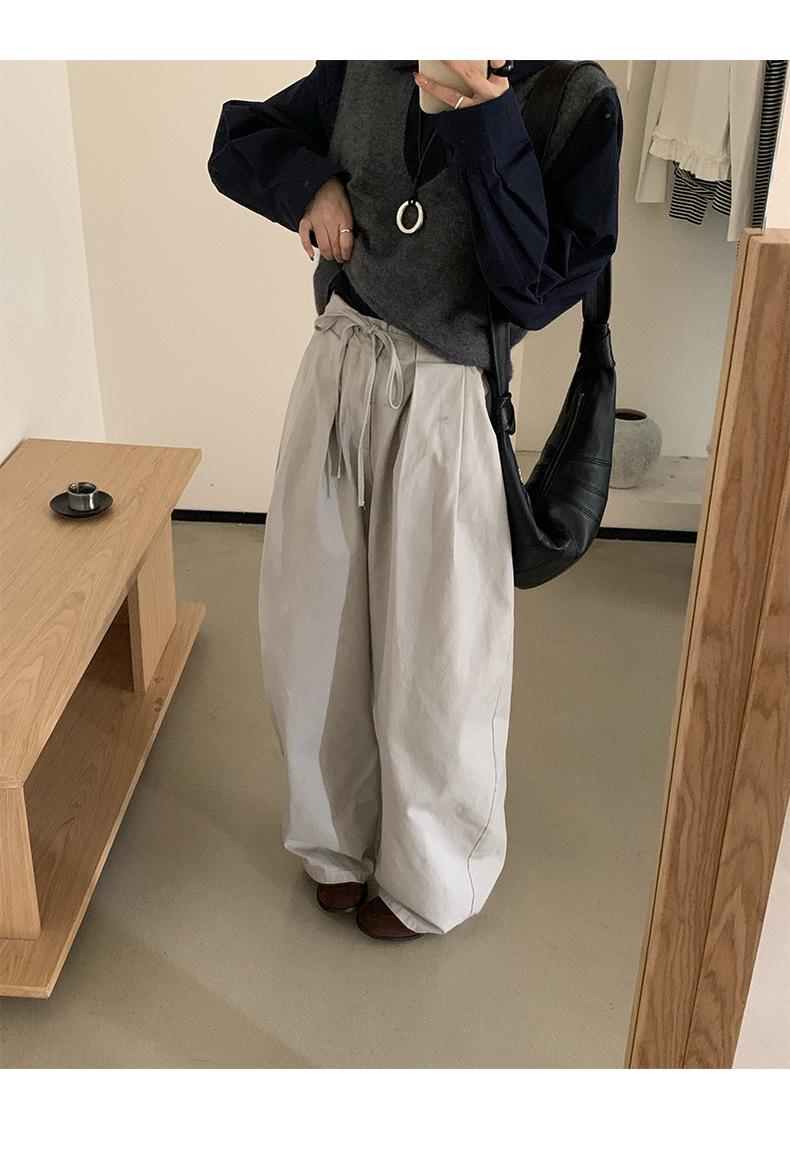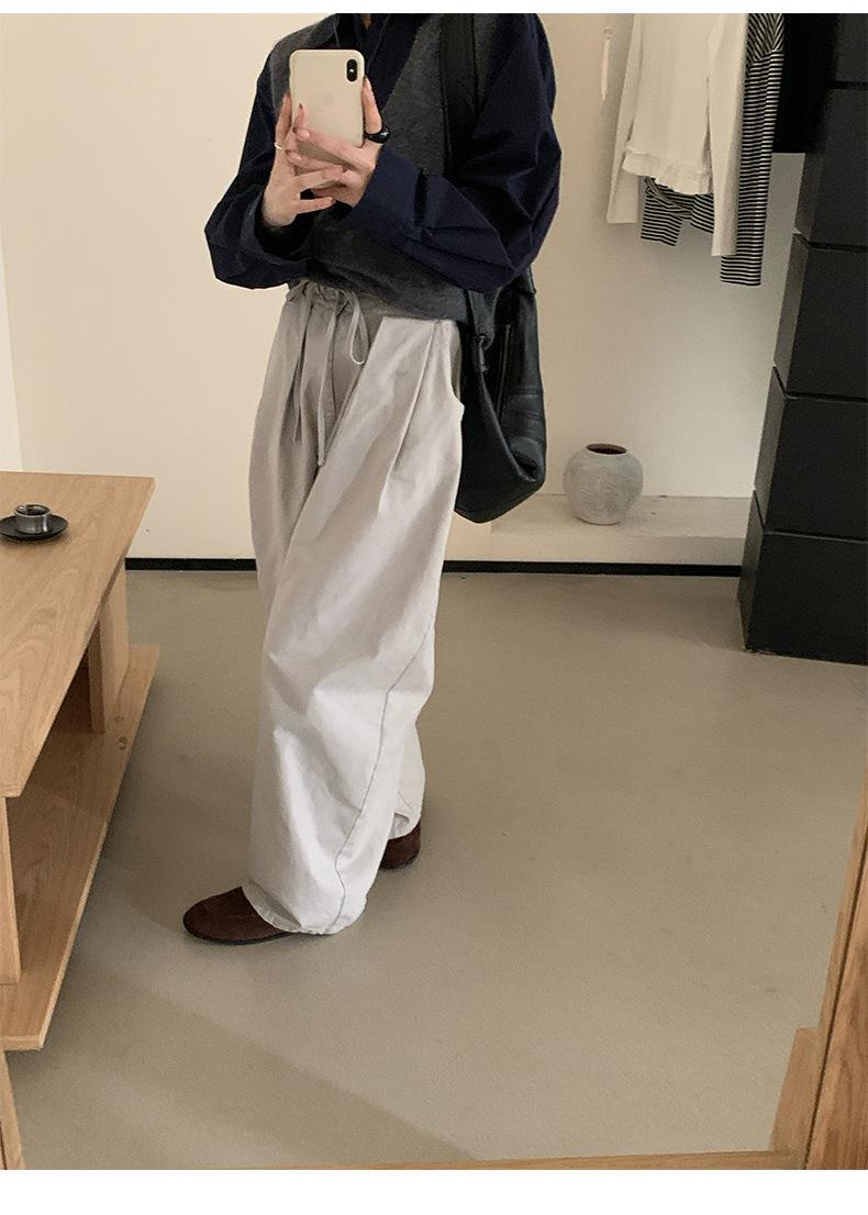 Coreano Dongdaemun 2025 Otoño Nuevo Retro Casual Cordón Lazo Cintura Alta Adelgazante Pierna Ancha Pierna Recta Pantalones Largos Mujer