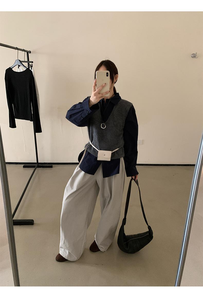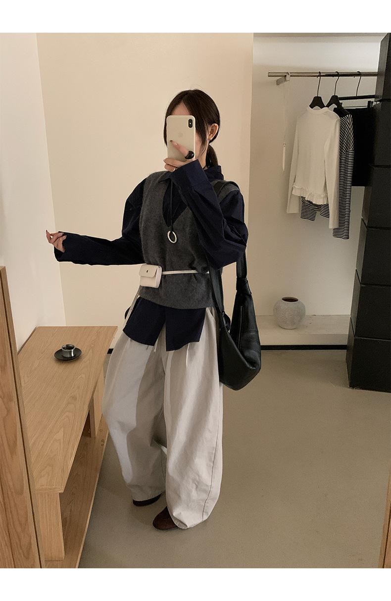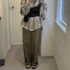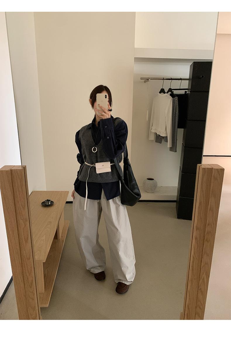 Coreano Dongdaemun 2025 Otoño Nuevo Retro Casual Cordón Lazo Cintura Alta Adelgazante Pierna Ancha Pierna Recta Pantalones Largos Mujer