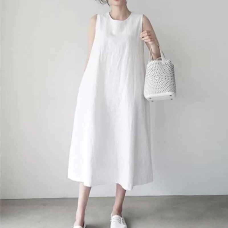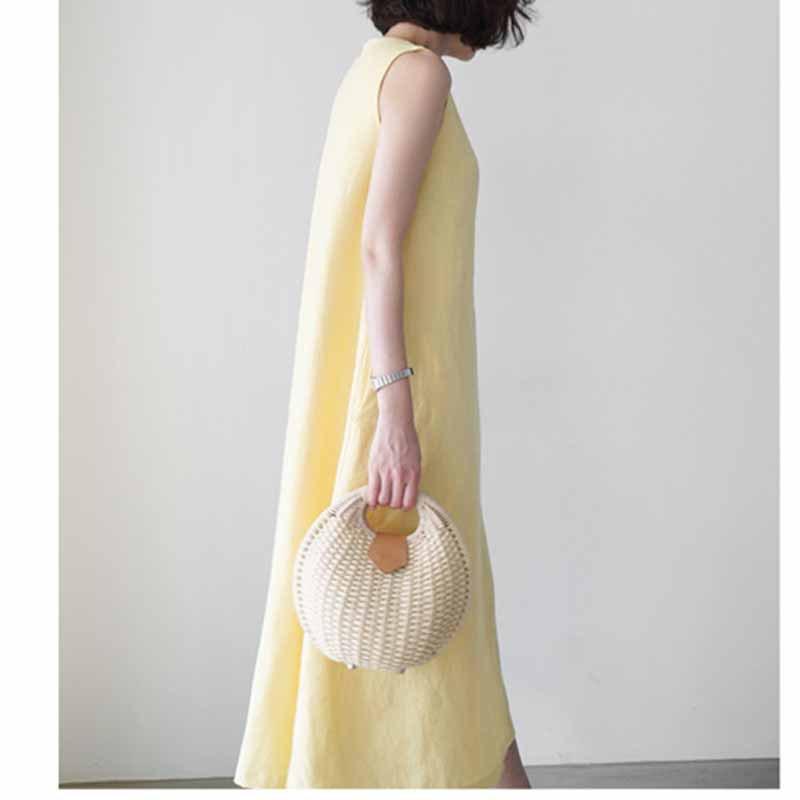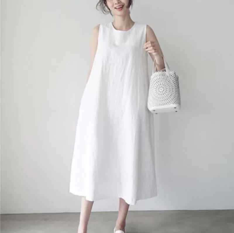 2025 Nuevo Verano Transfronterizo Vestido sin Mangas de Color Sólido Suelto Sencillo Temperamento Vestido Chaleco para Mujer