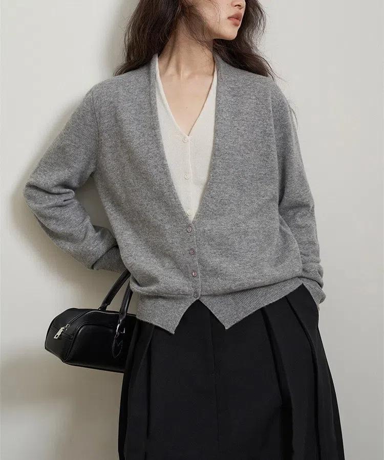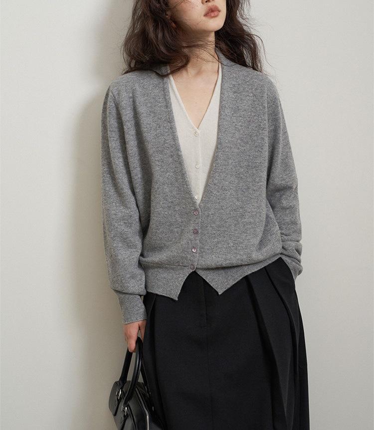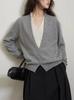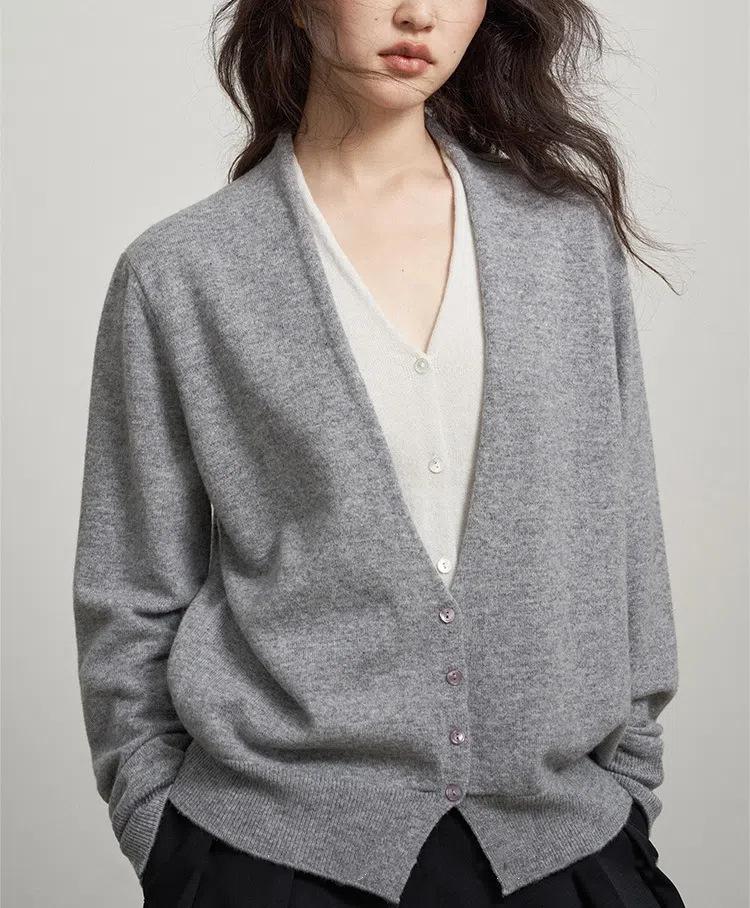 Suéter de punto suave elegante holgado con cuello en V falso de dos piezas cárdigan base top interior para mujer invierno