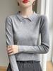 Nuevo Top de Punto para Mujer Suéter Transfronterizo Manga Larga Otoño Invierno Jersey Adelgazante Camisa Base Cuello Polo 2025 Punto