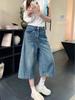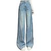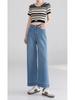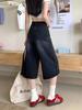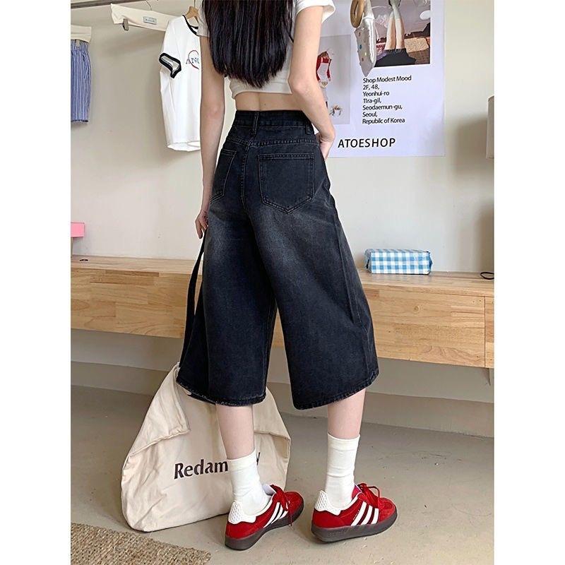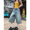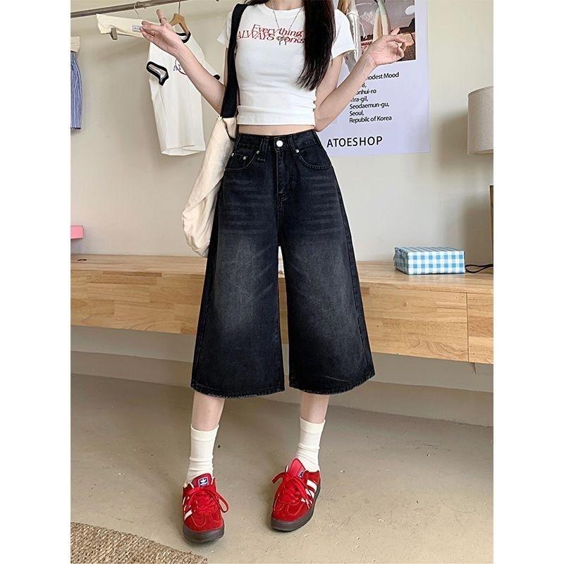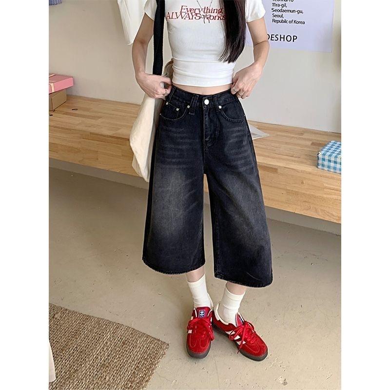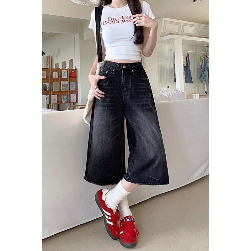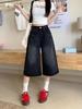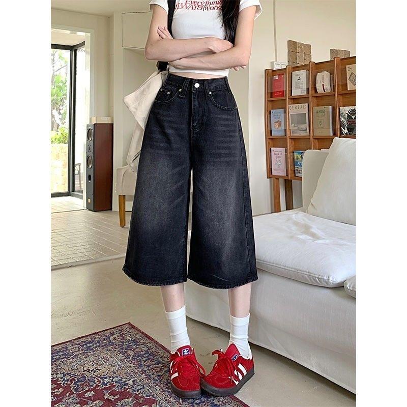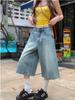 Pantalones de mezclilla capri rectos adelgazantes de verano 2025 estilo retro americano para mujer, nuevos sueltos de pierna ancha, capri medios de 7 puntos