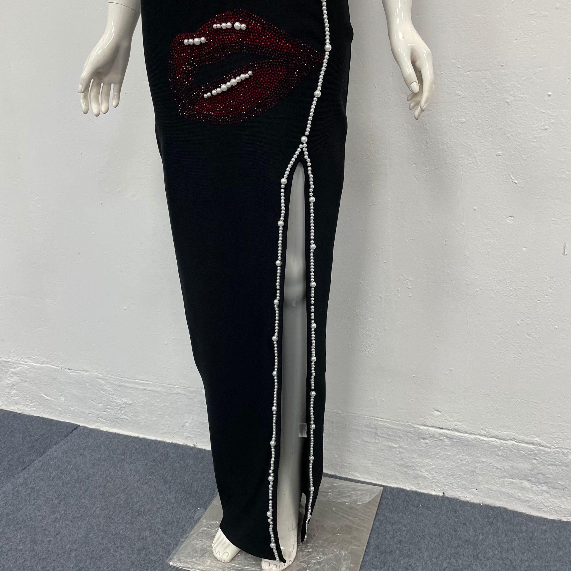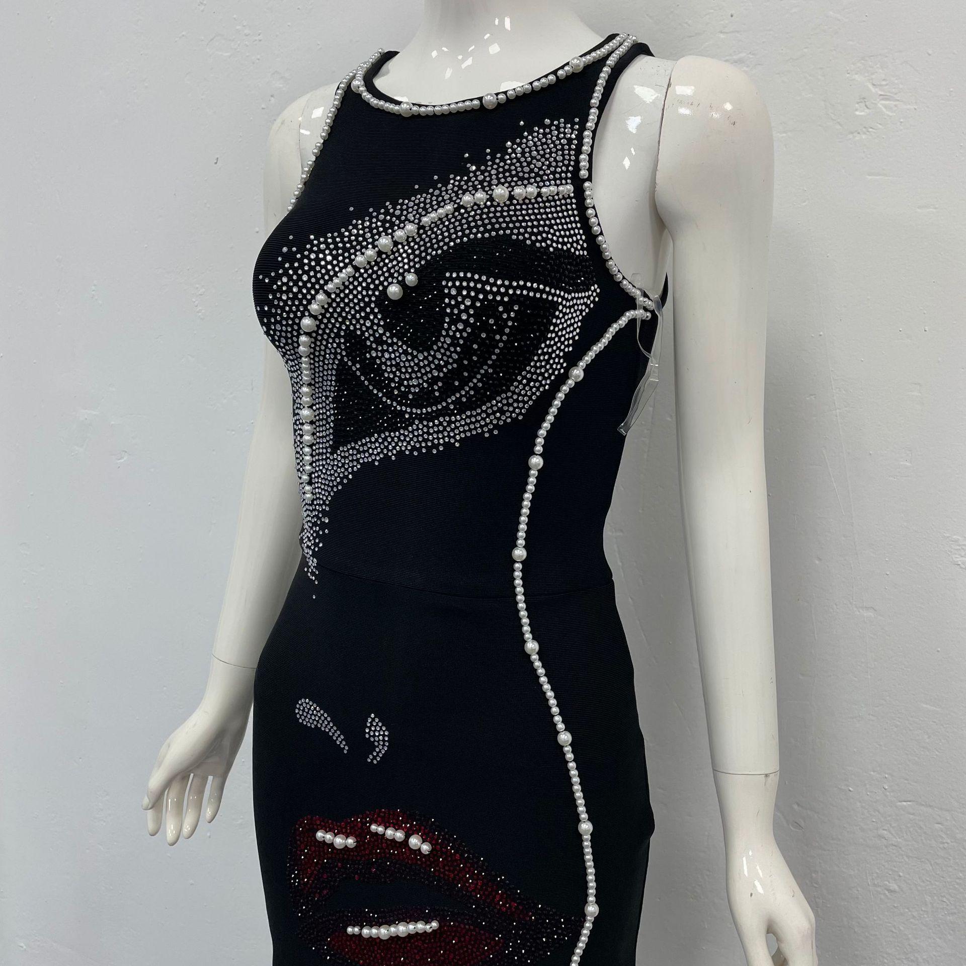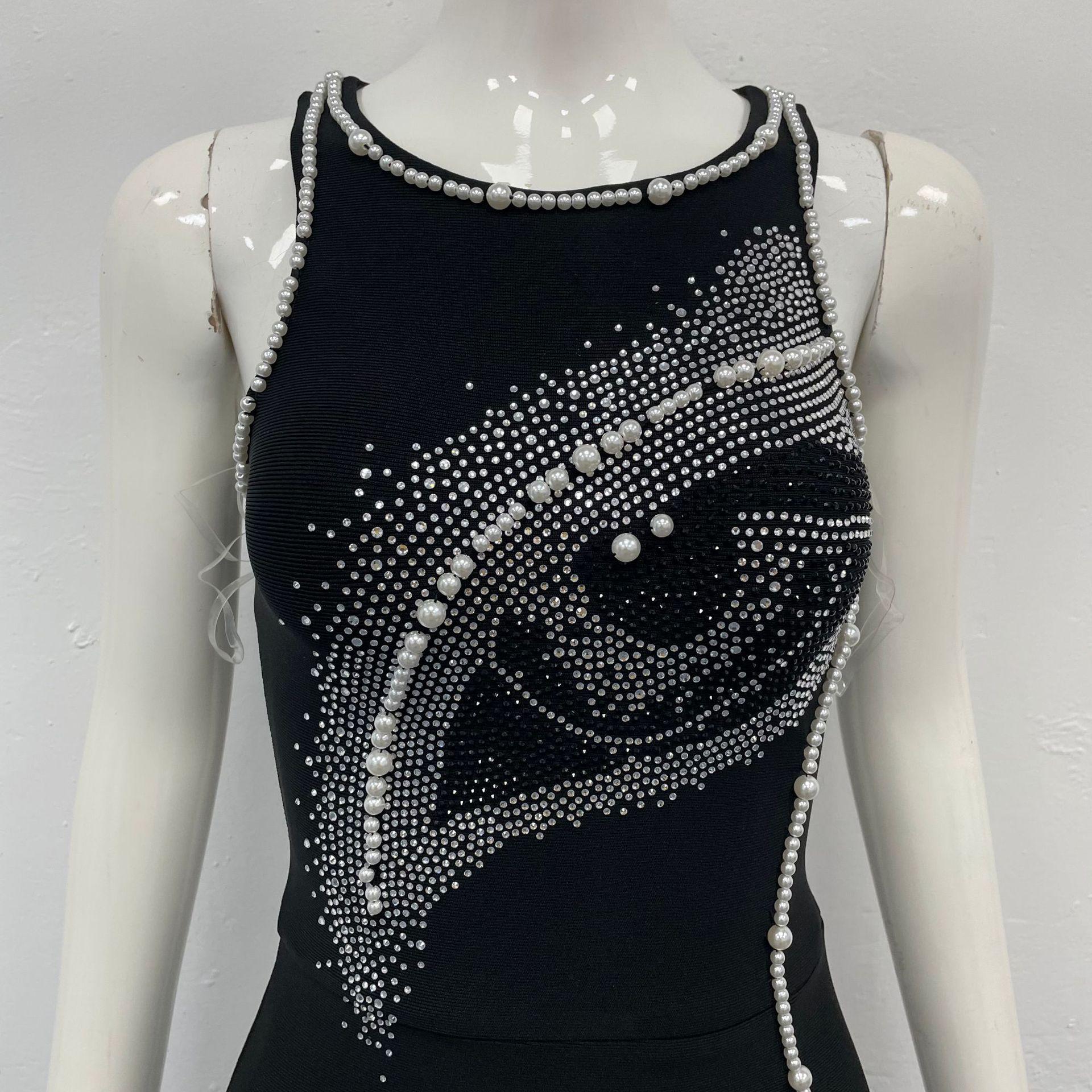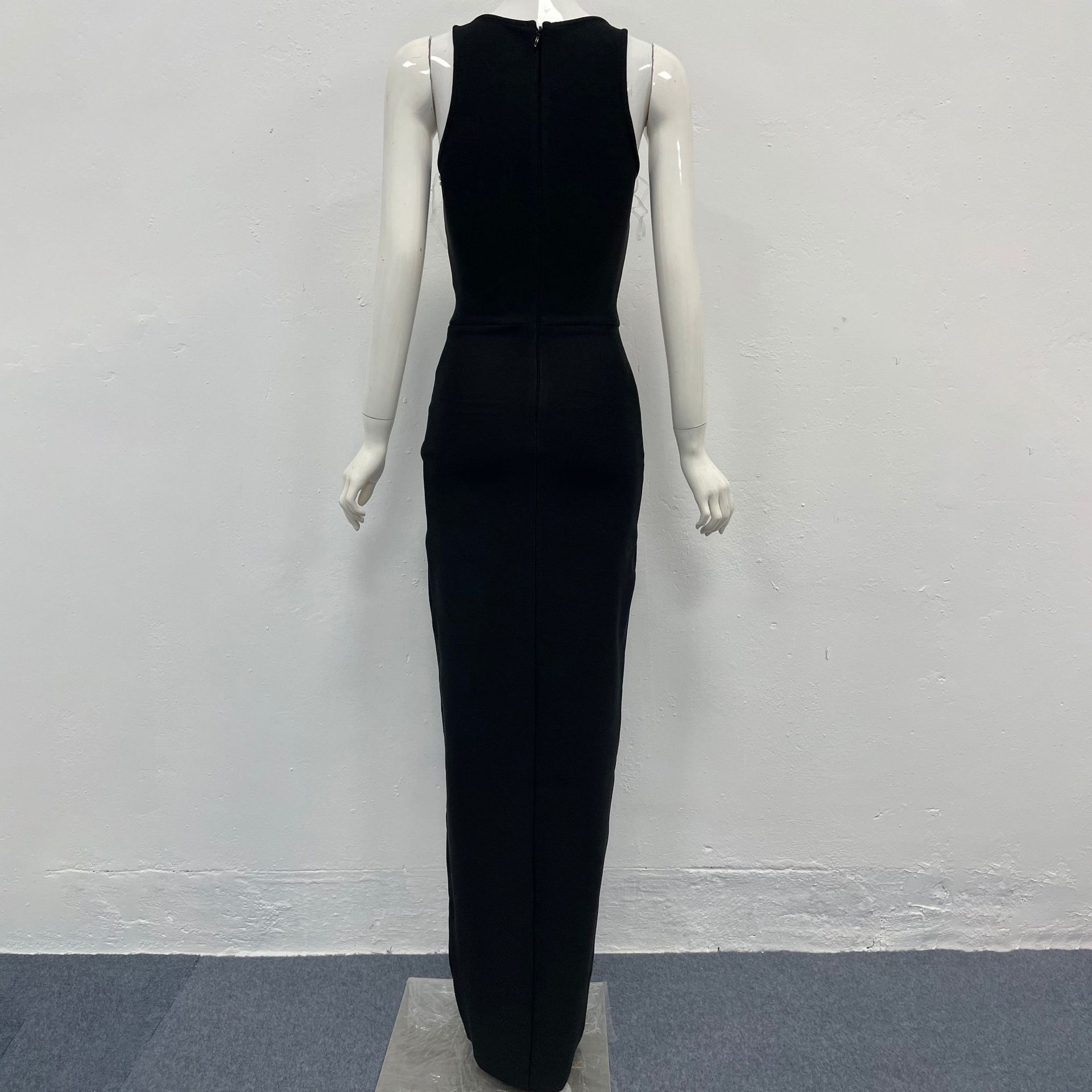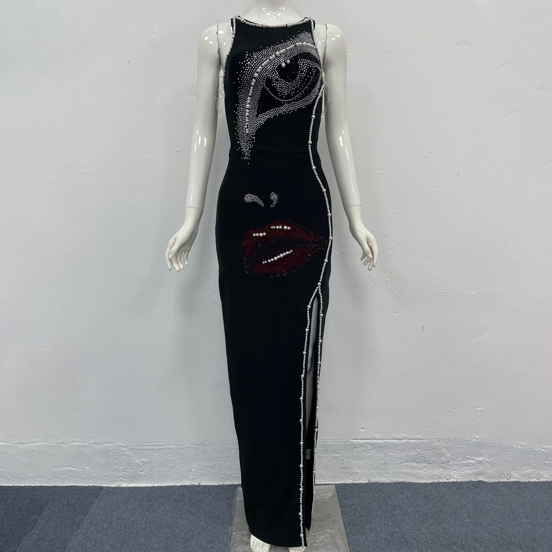 Europeo y Americano Transfronterizo Nueva Moda Lujo Taladro Caliente Sexy Abertura Alta Adelgazante Temperamento Socialité Vestido Vendaje Vestido de Noche