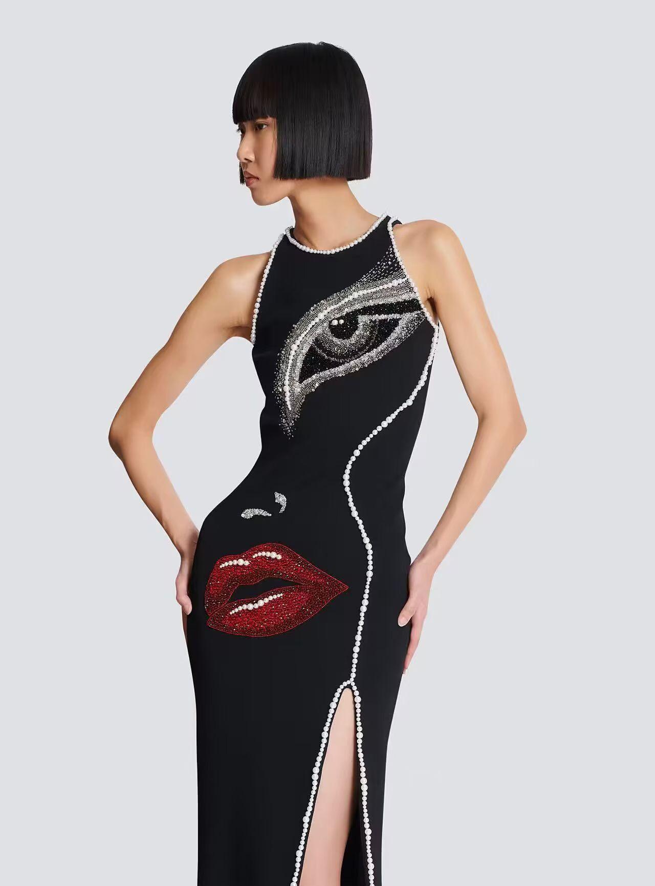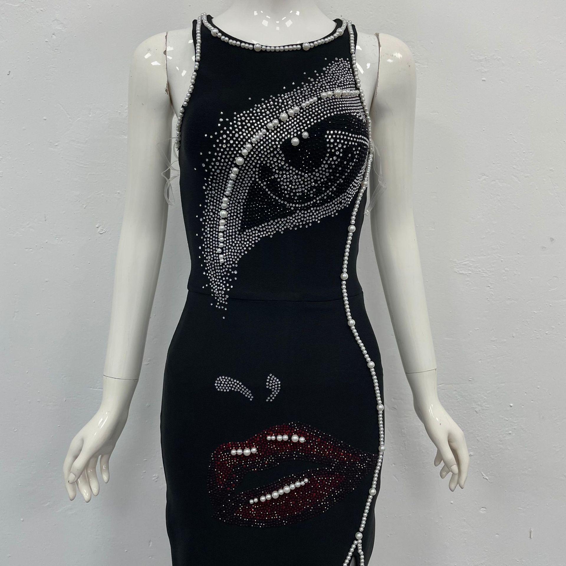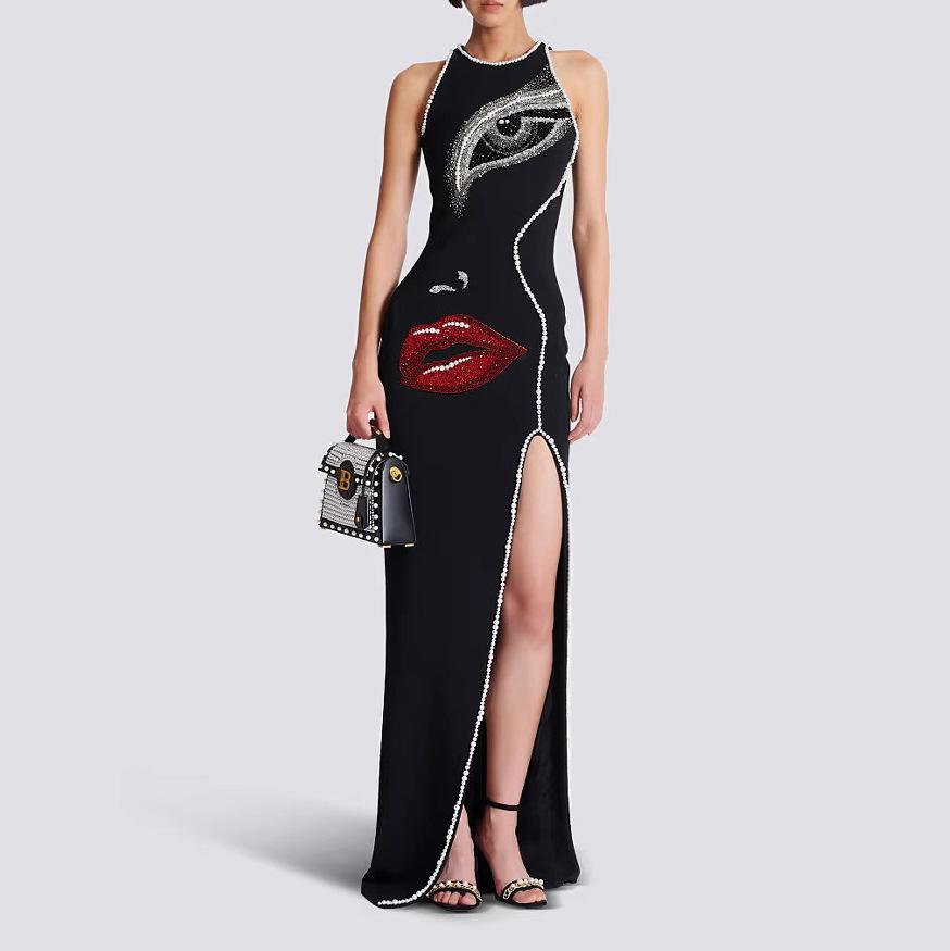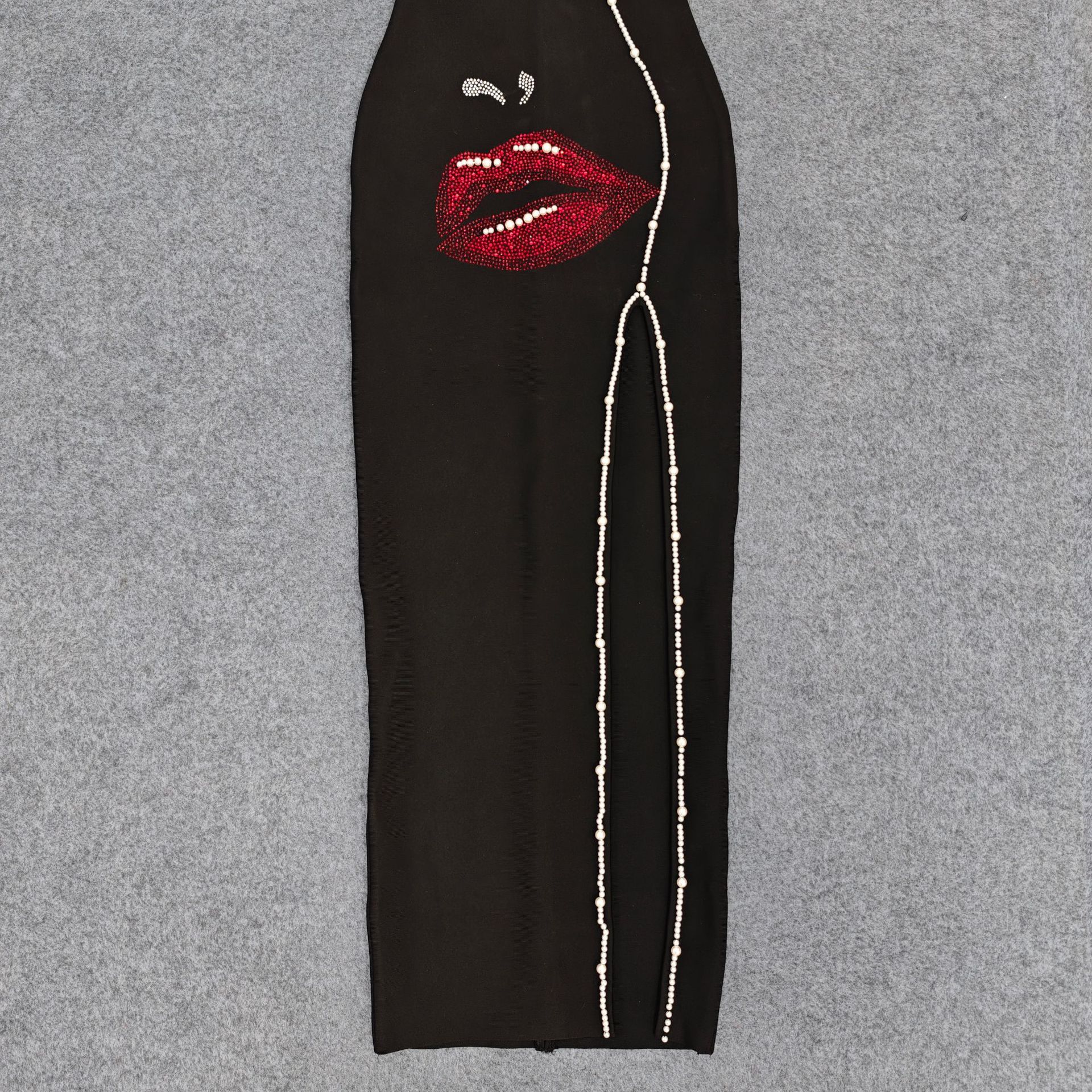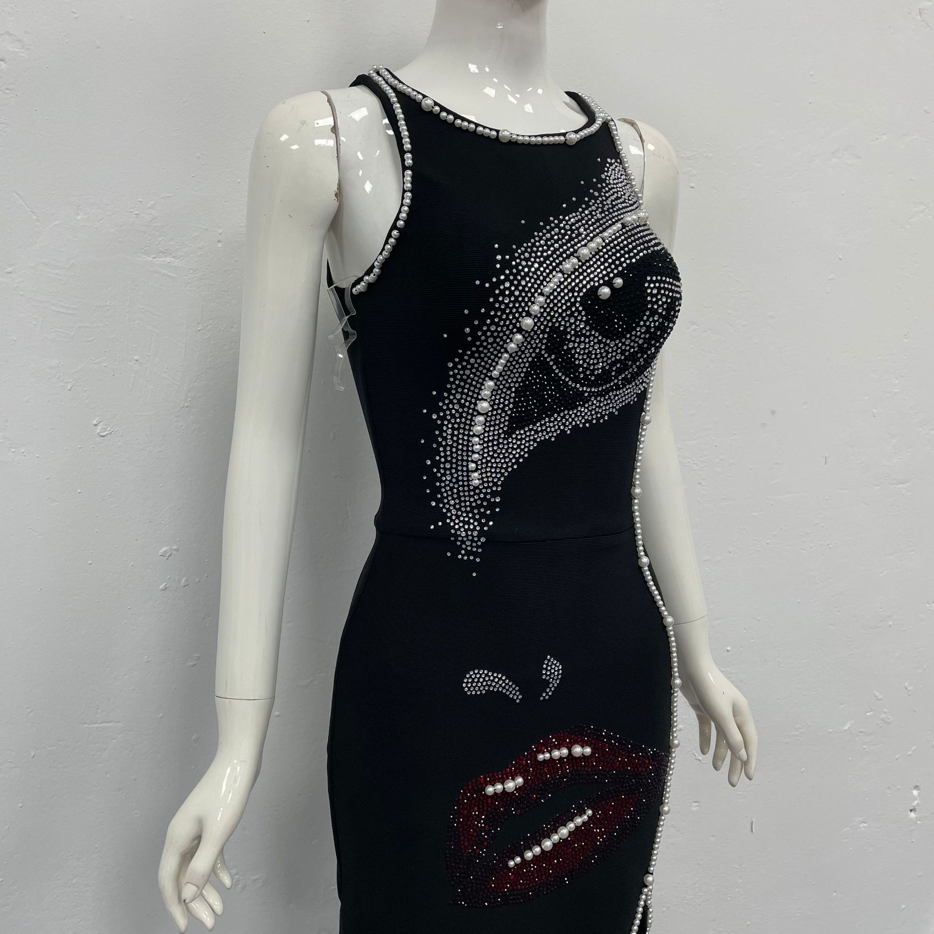 Europeo y Americano Transfronterizo Nueva Moda Lujo Taladro Caliente Sexy Abertura Alta Adelgazante Temperamento Socialité Vestido Vendaje Vestido de Noche