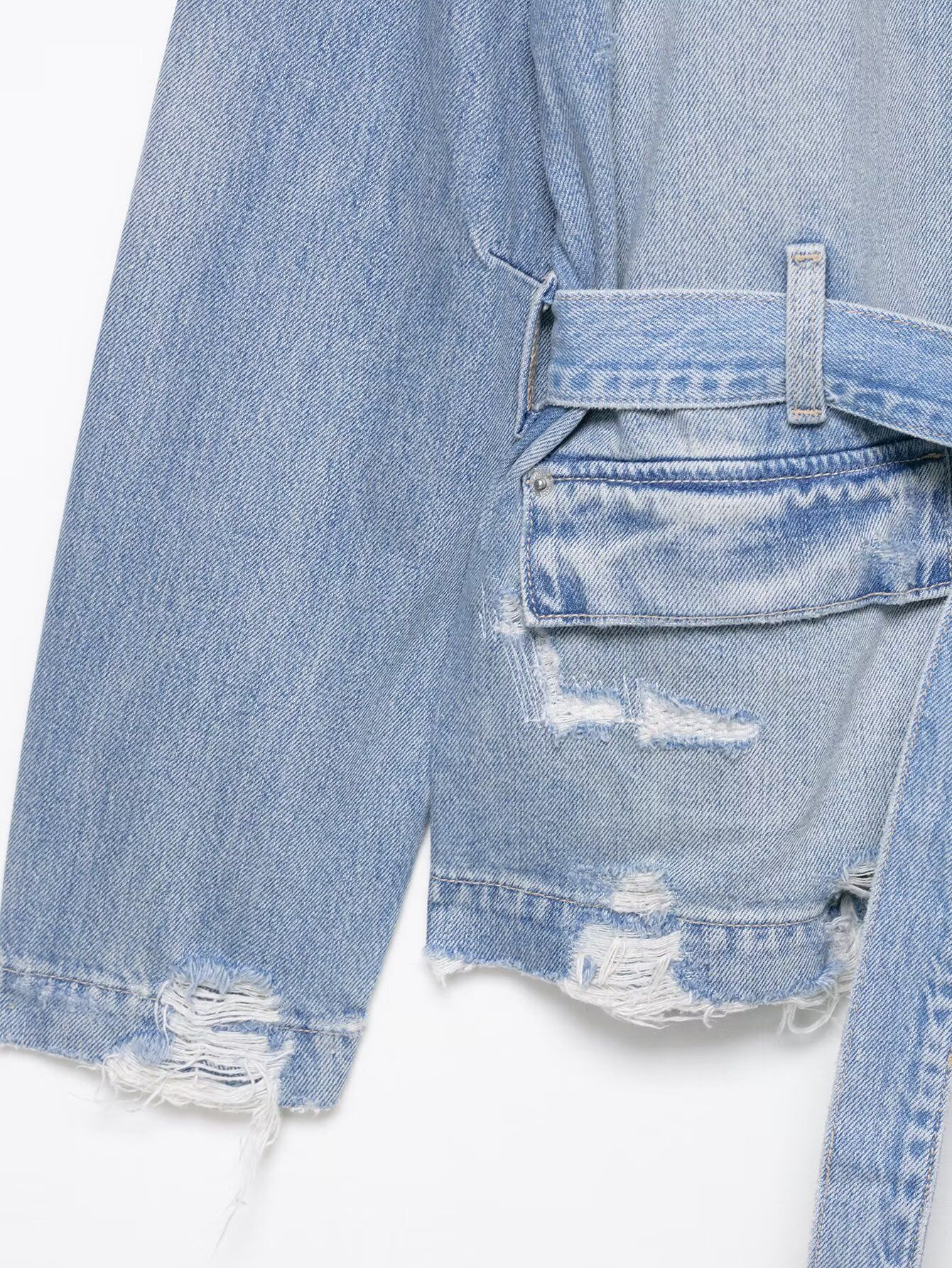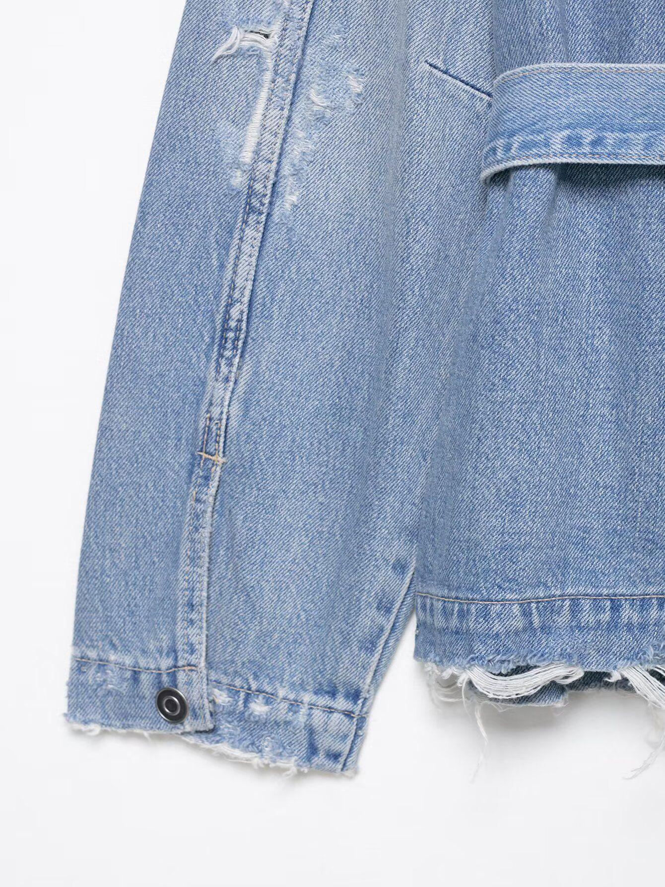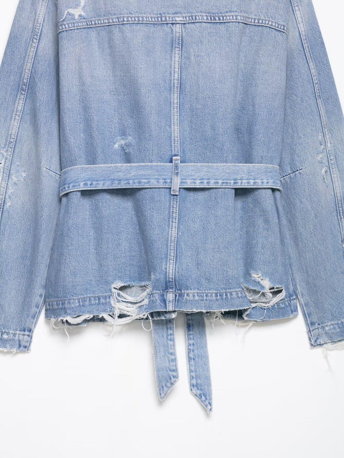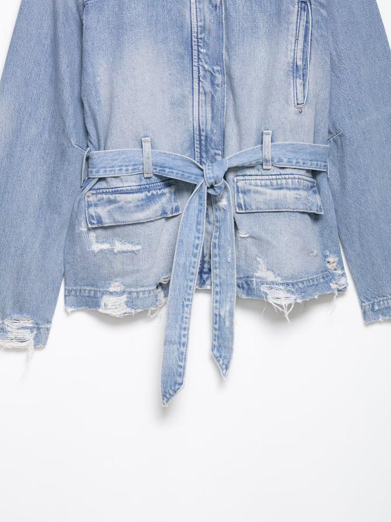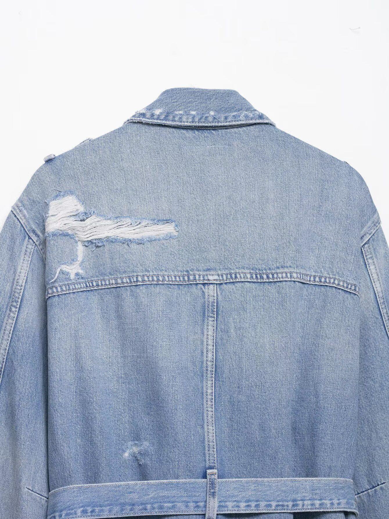 Ropa de mujer de comercio exterior transfronterizo de Amazon 2025 otoño nueva moda decoración de bolsillo cinturón de mezclilla chaqueta abrigo adelgazante para mujer