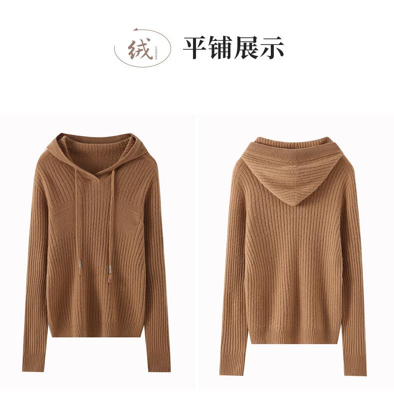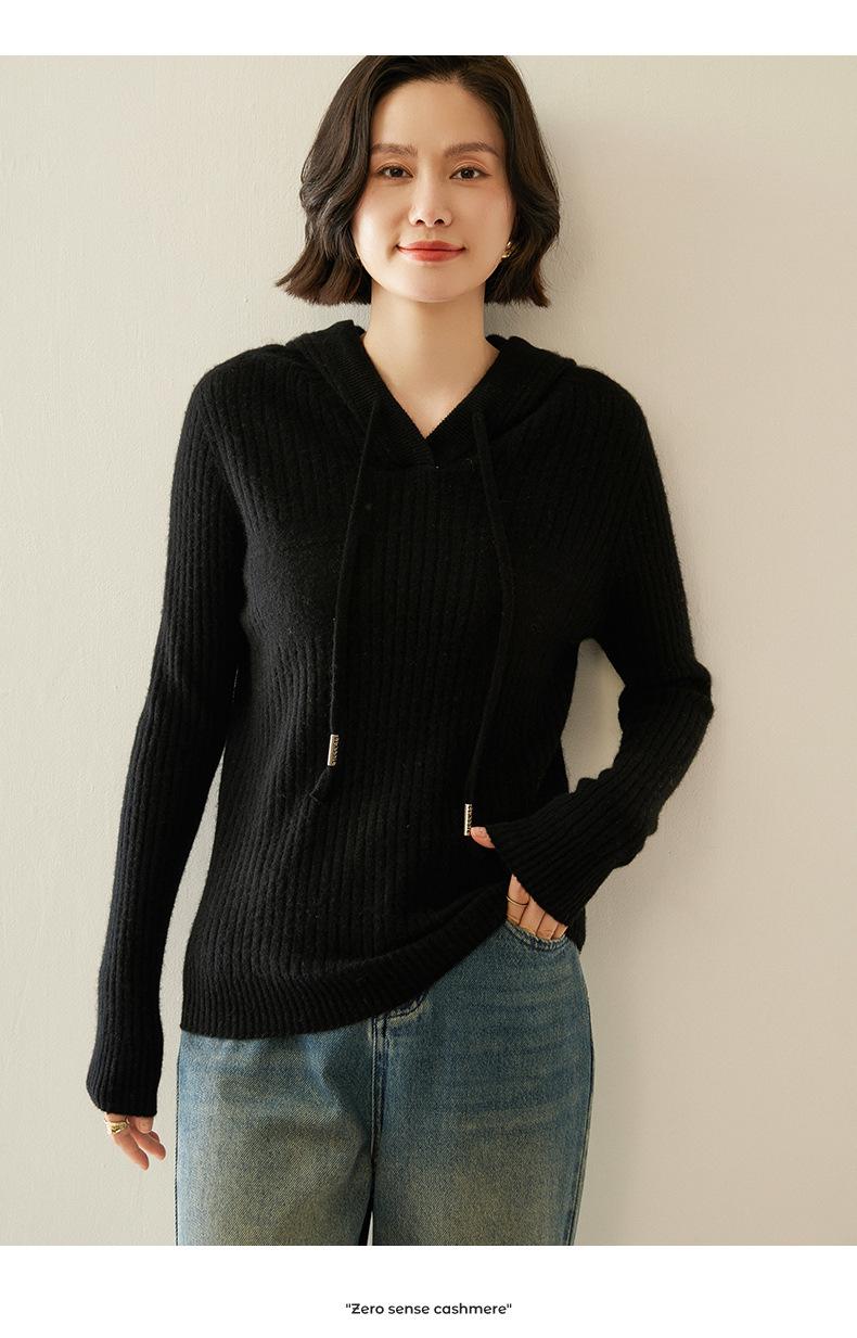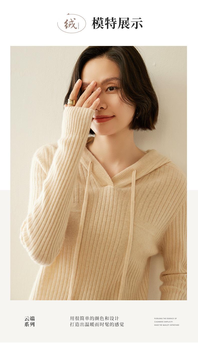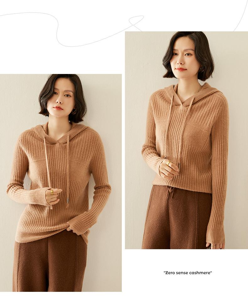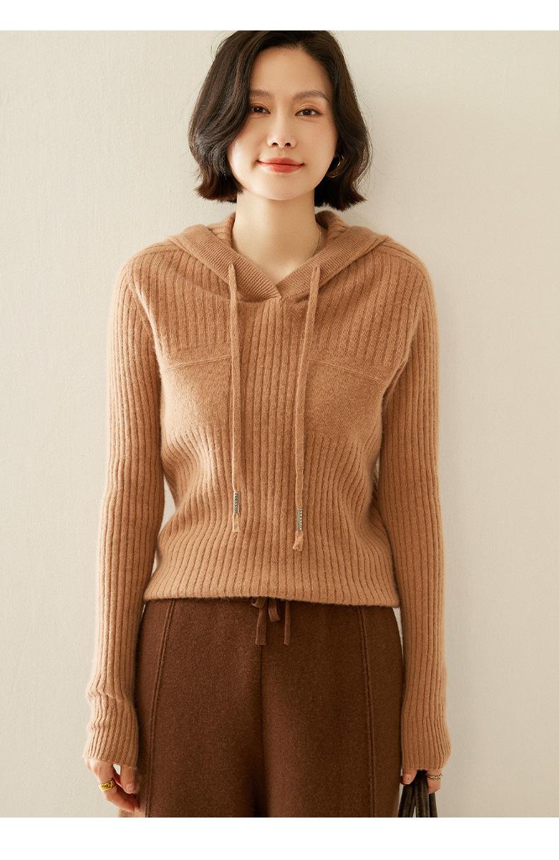 Suéter de Cachemira con Capucha Mujer 2025 Otoño/Invierno Nuevo Sudadera con Capucha Base Acanalada de Primera Línea Casual Suéter Corto