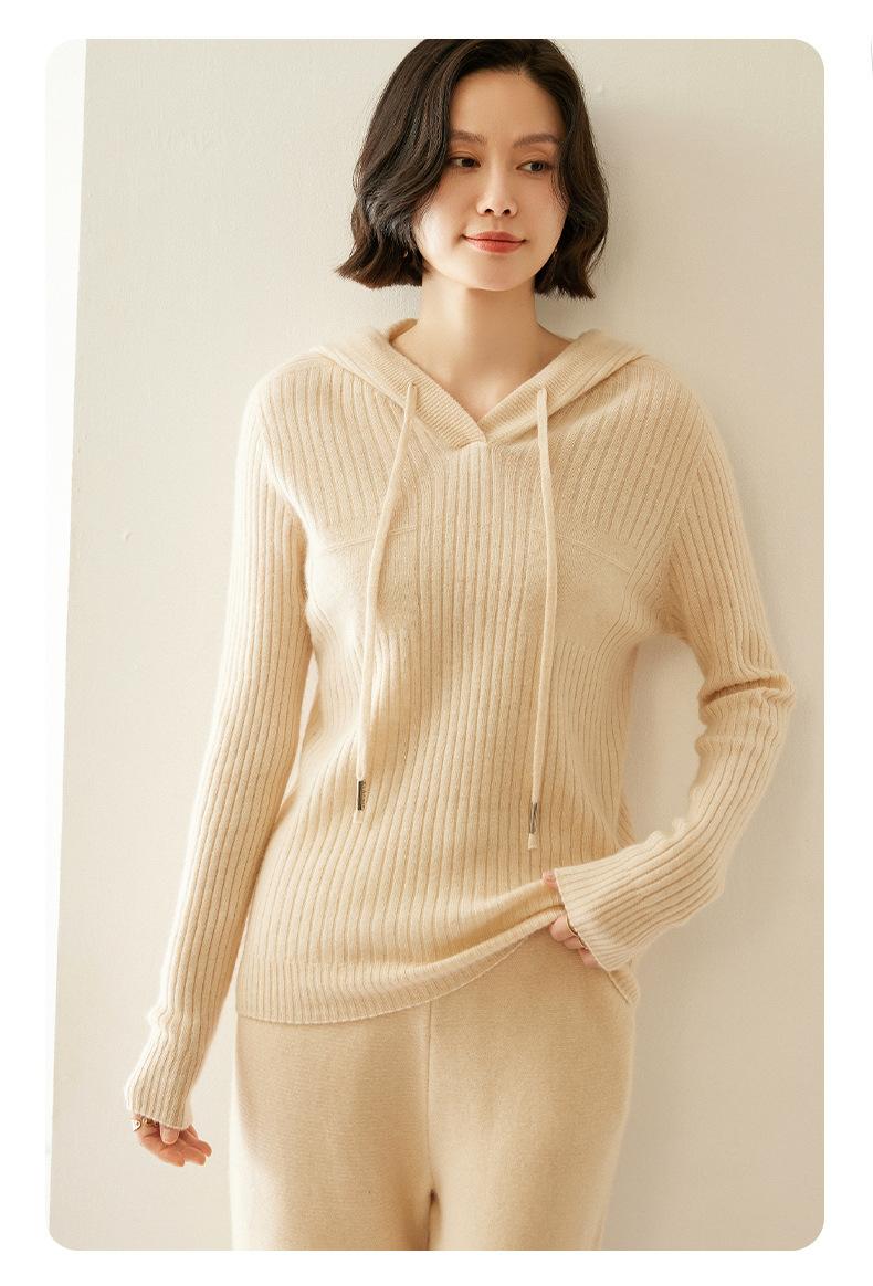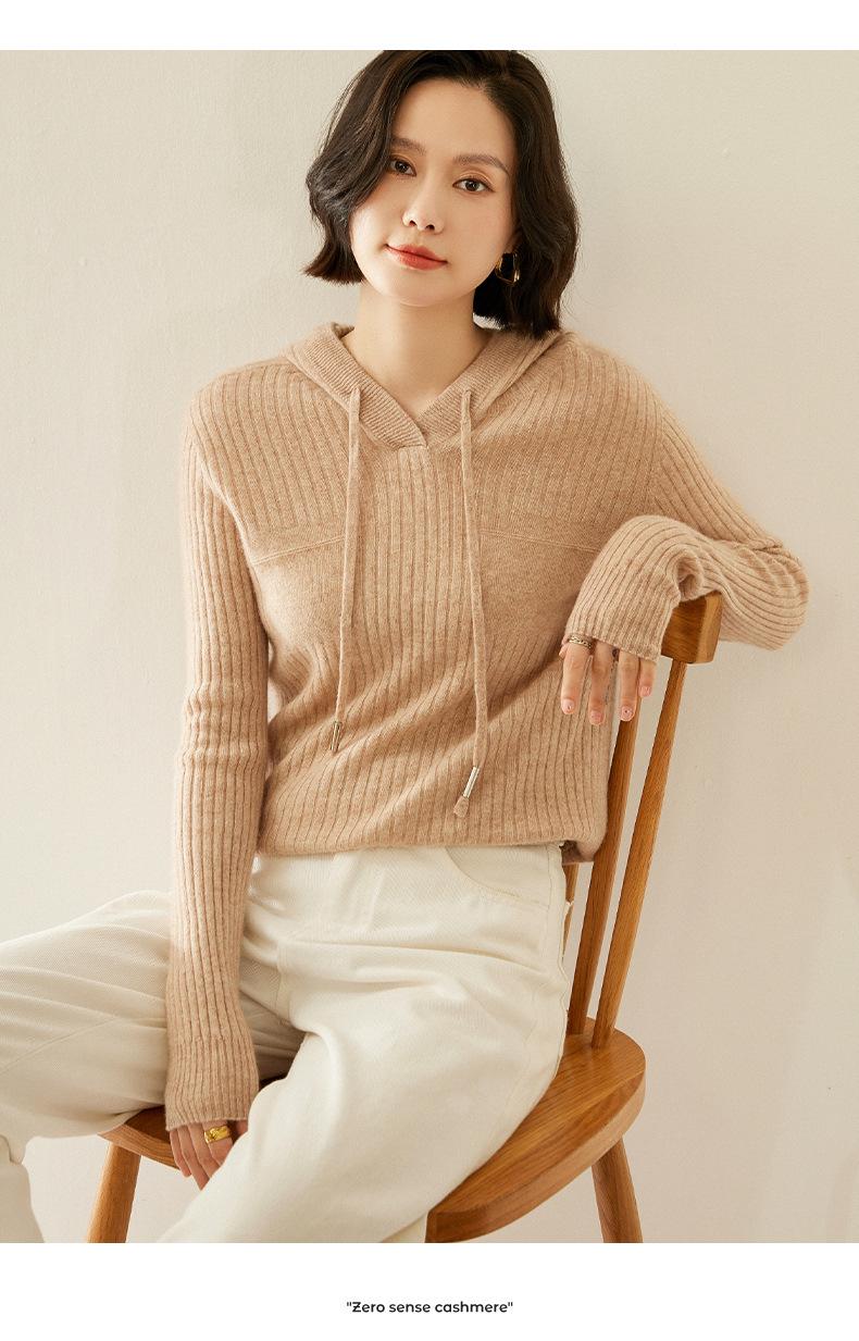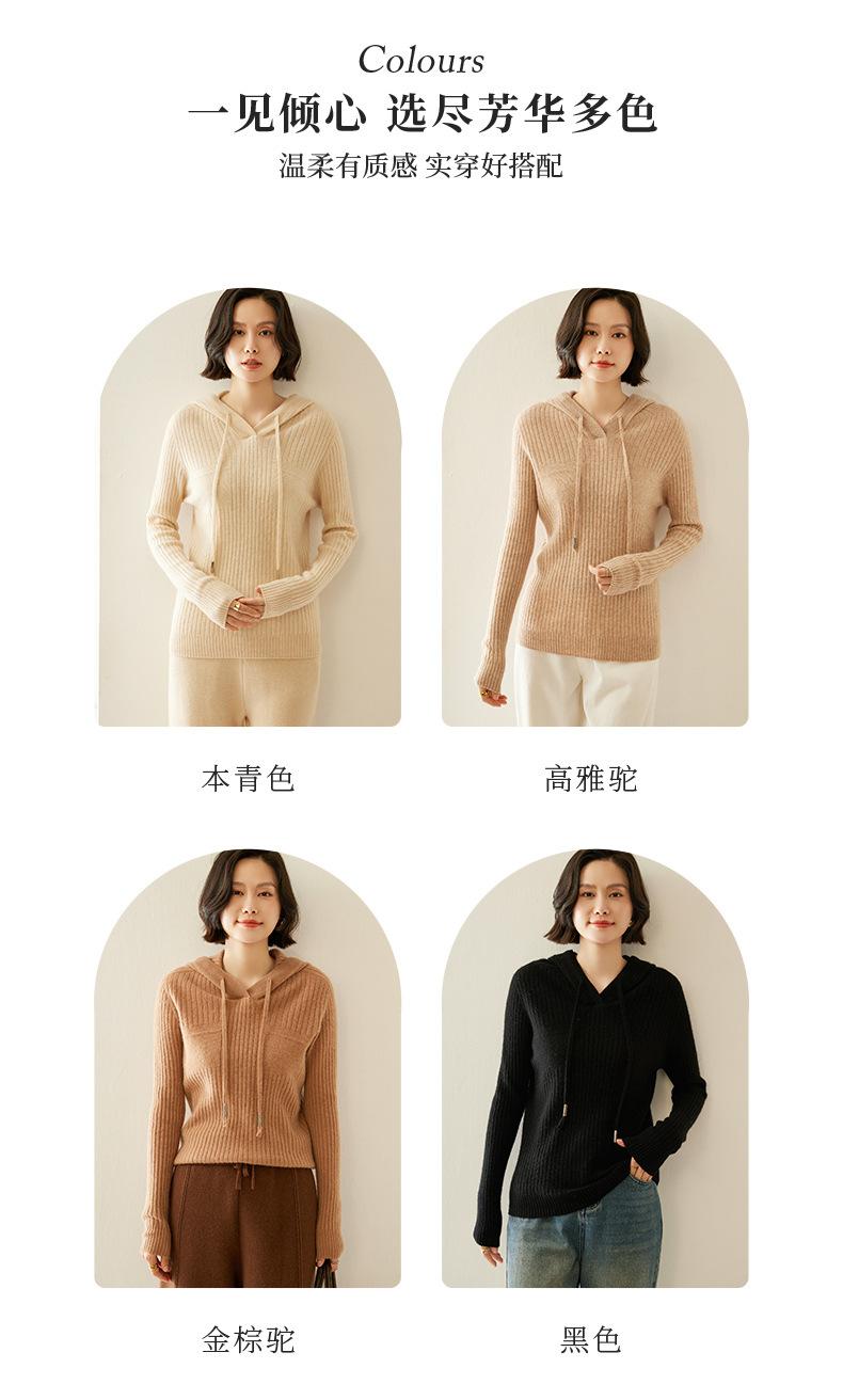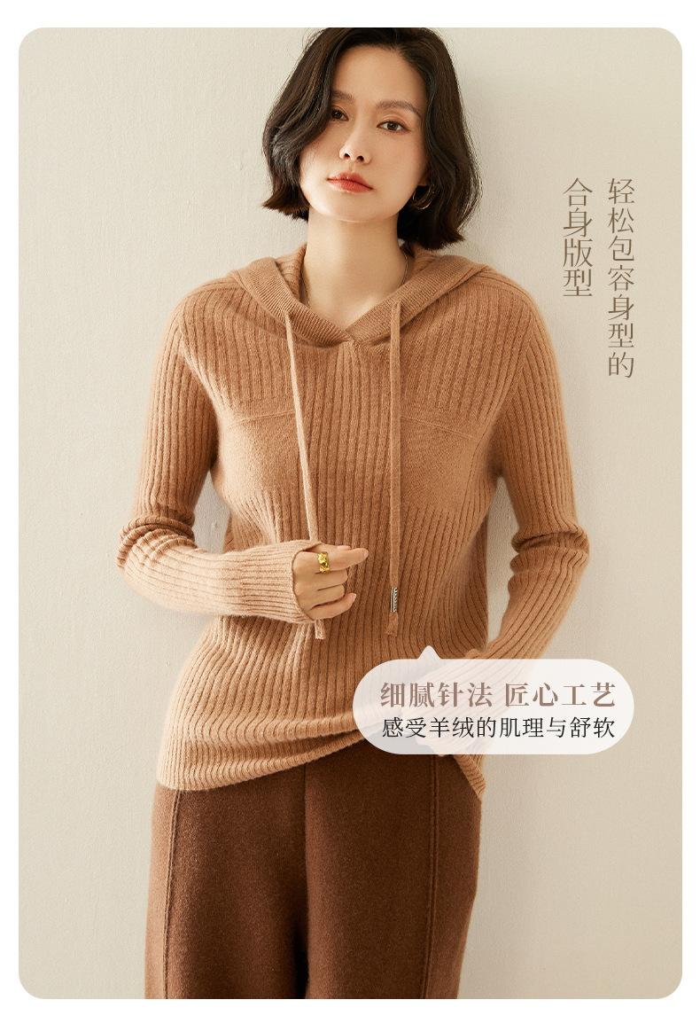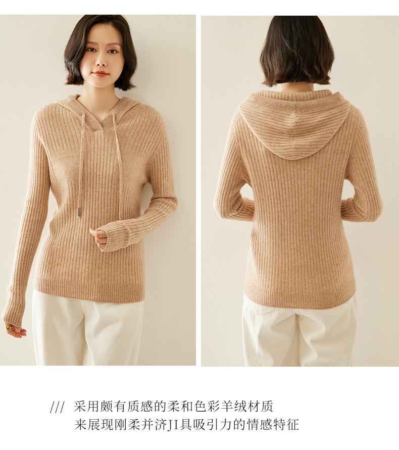 Suéter de Cachemira con Capucha Mujer 2025 Otoño/Invierno Nuevo Sudadera con Capucha Base Acanalada de Primera Línea Casual Suéter Corto