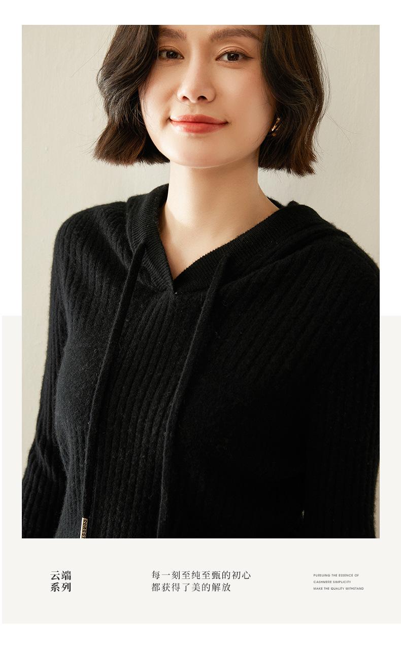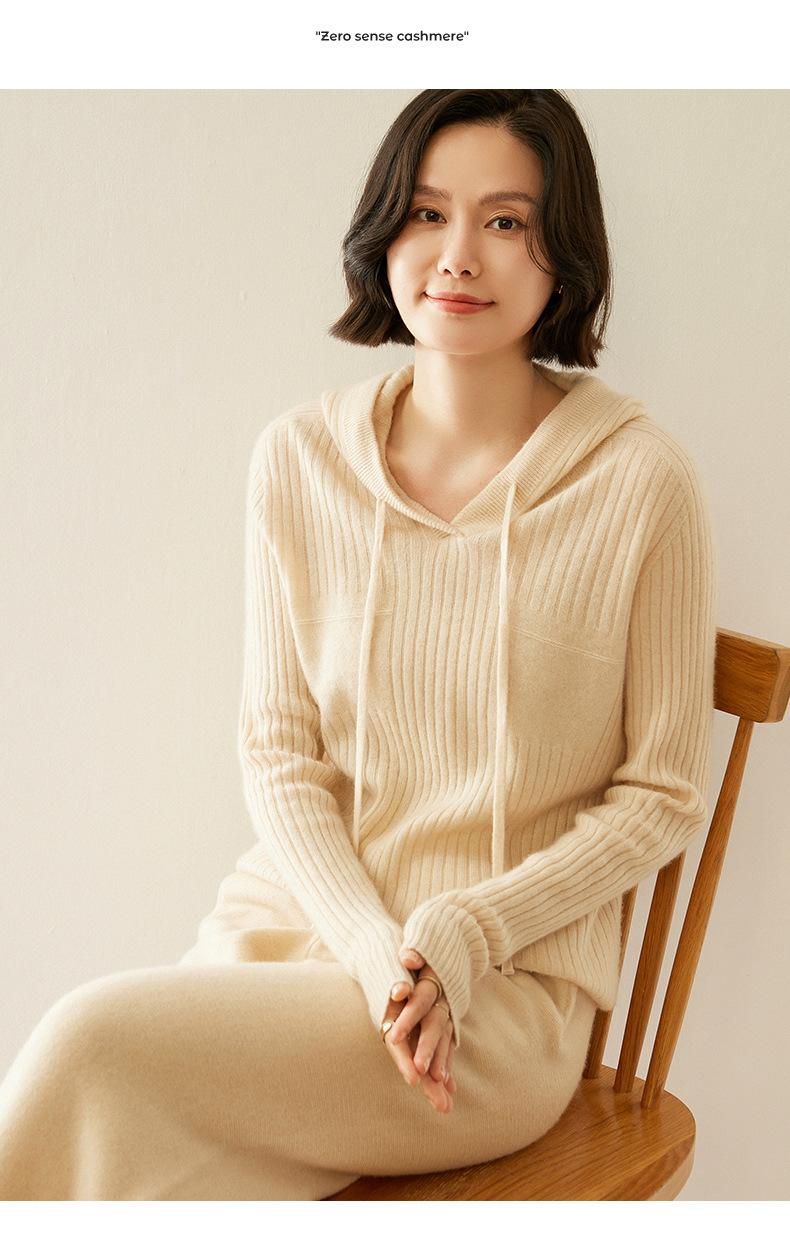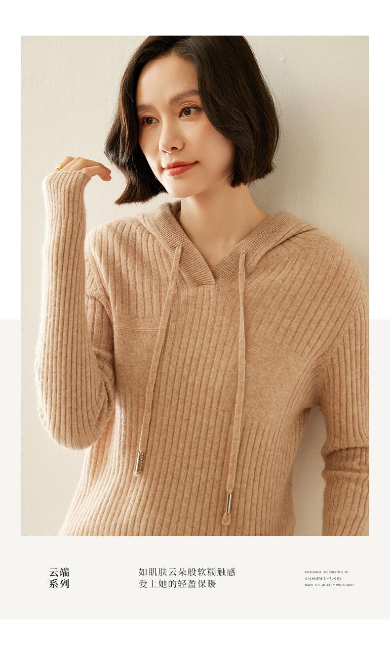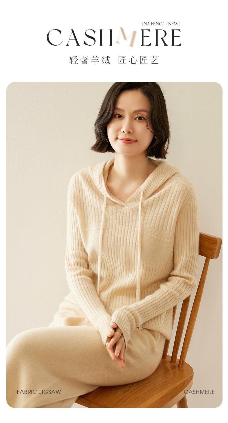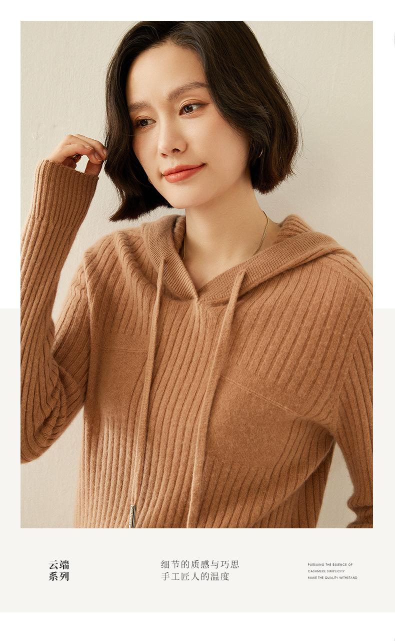 Suéter de Cachemira con Capucha Mujer 2025 Otoño/Invierno Nuevo Sudadera con Capucha Base Acanalada de Primera Línea Casual Suéter Corto