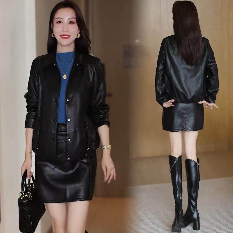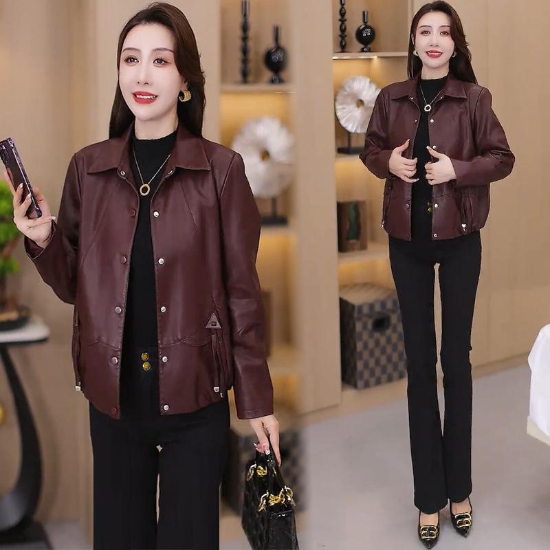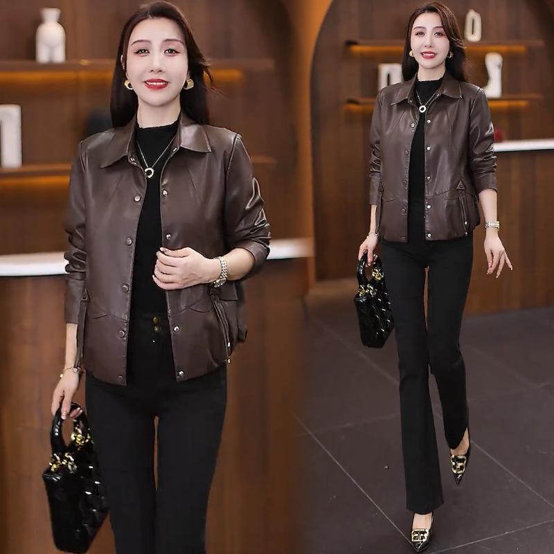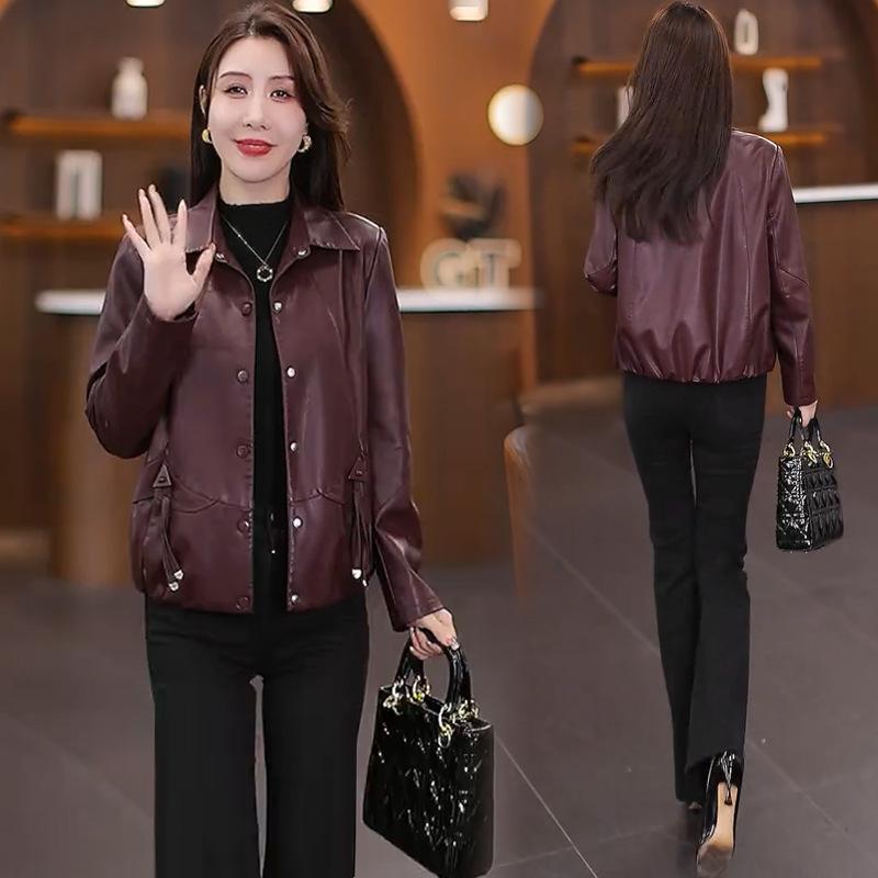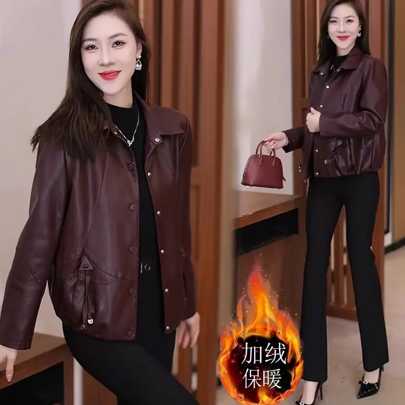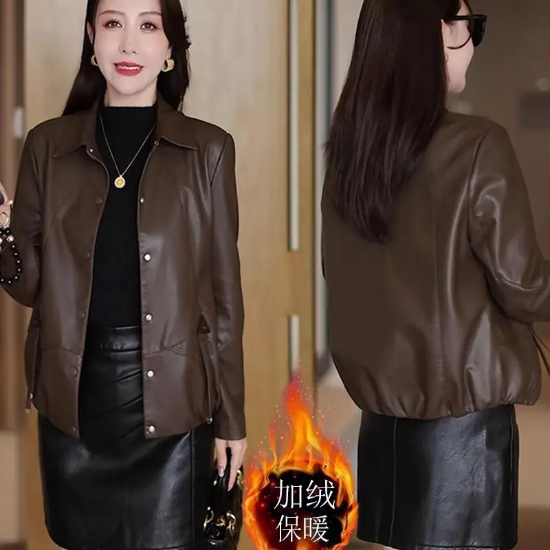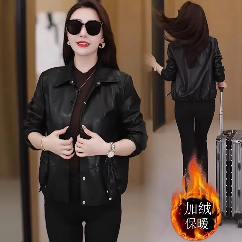 Chaqueta de Cuero de Moda para Mujer 2025 Otoño/Invierno con Forro Polar de Temporada Elegante Adelgazante Casual Versátil Top Chaqueta de Cuero Talla Grande
