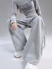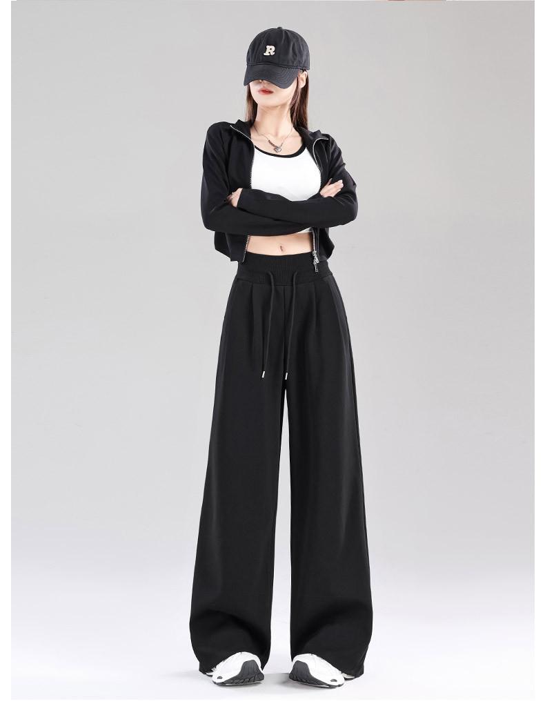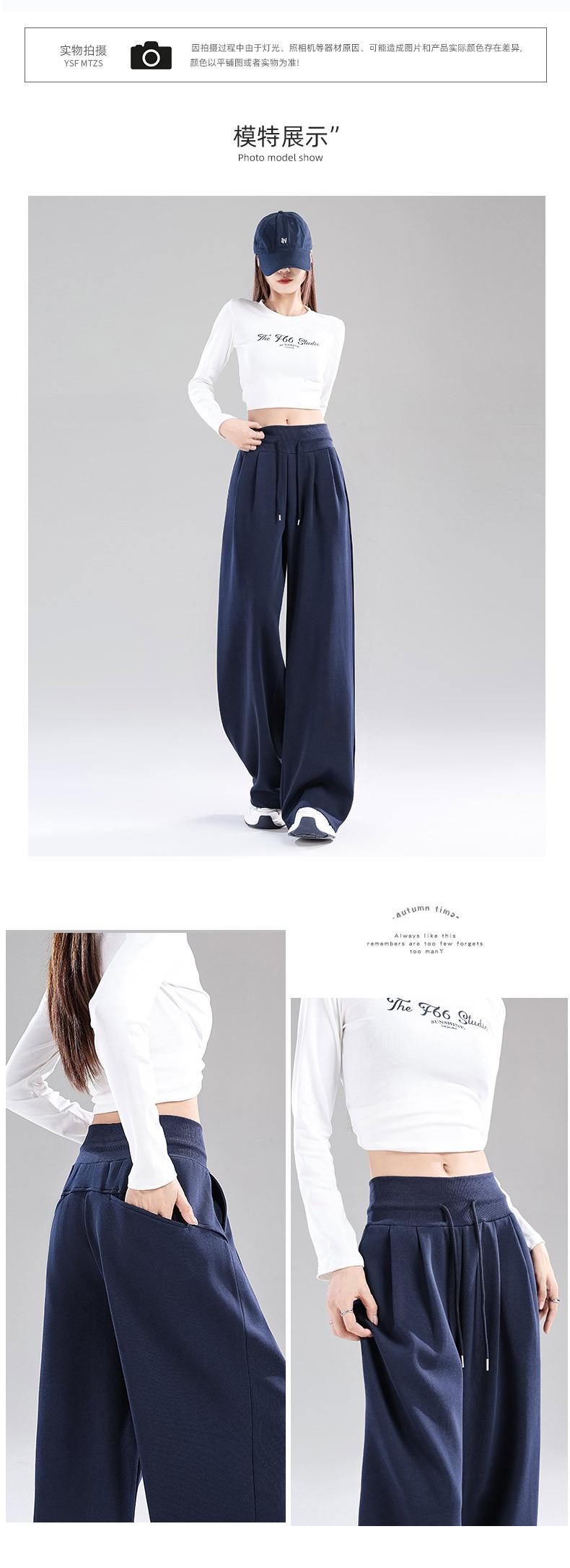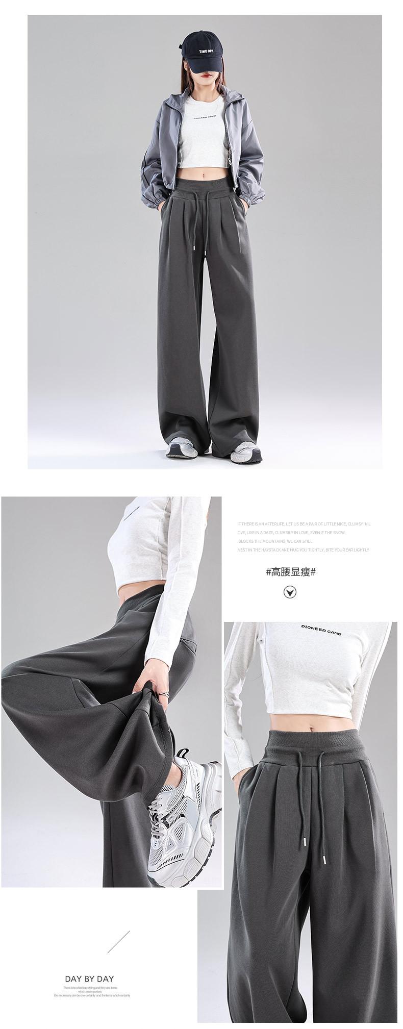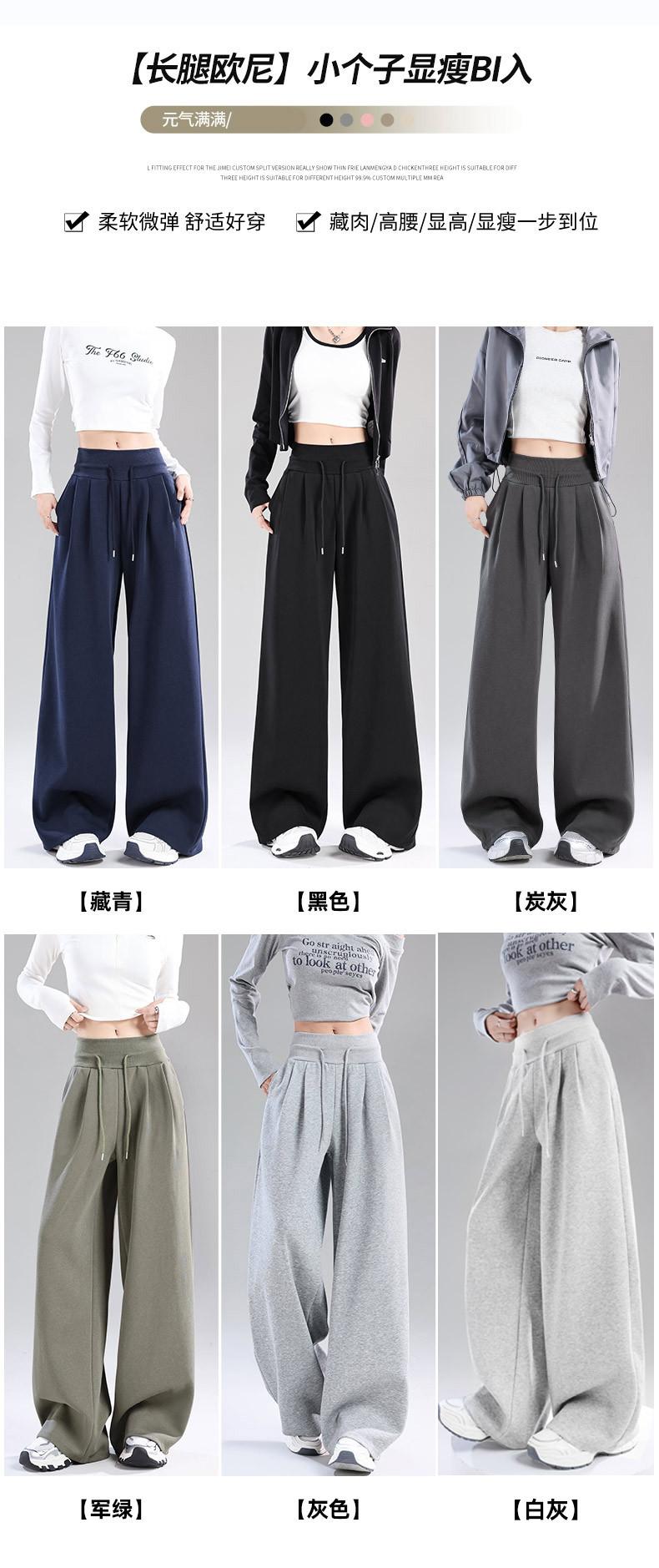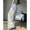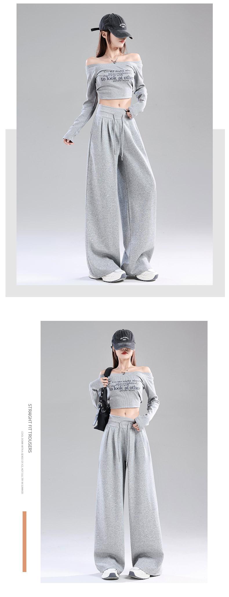 Pantalones deportivos blanco-gris para mujer 2025 nuevo otoño cintura alta caída pierna recta pierna ancha casual holgados joggers