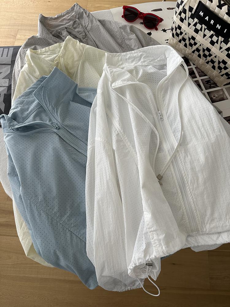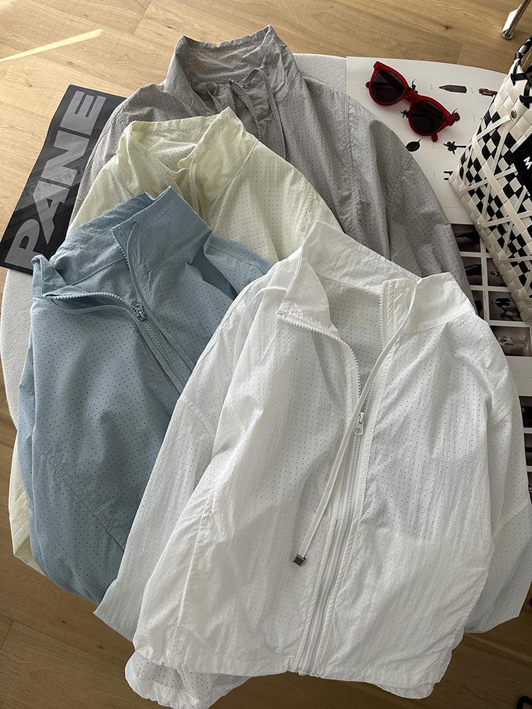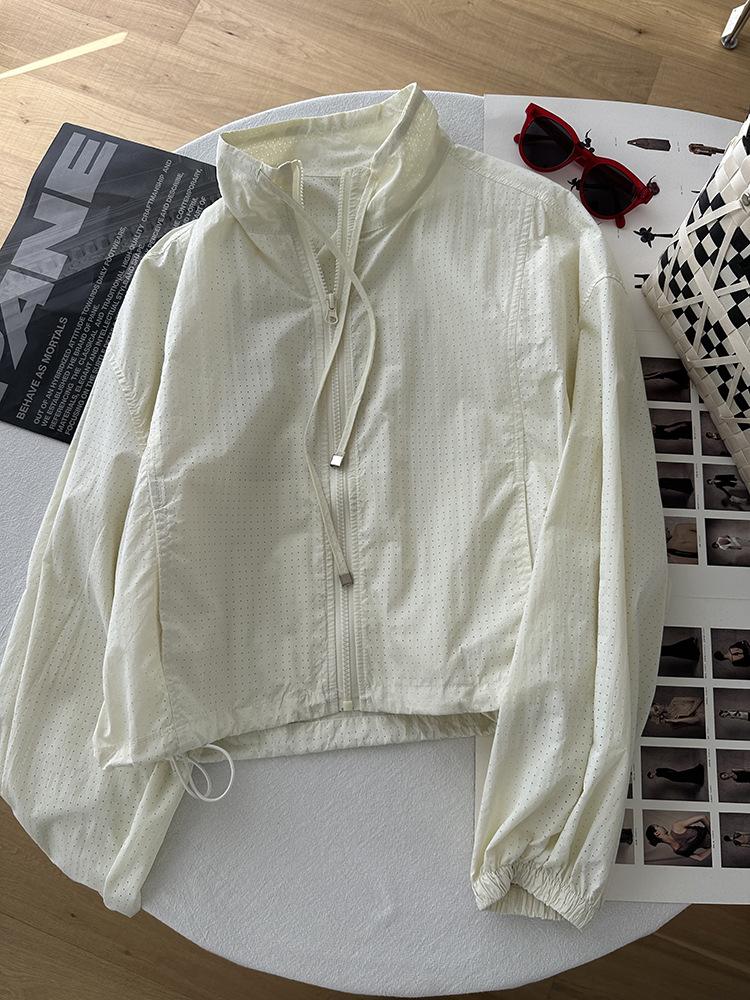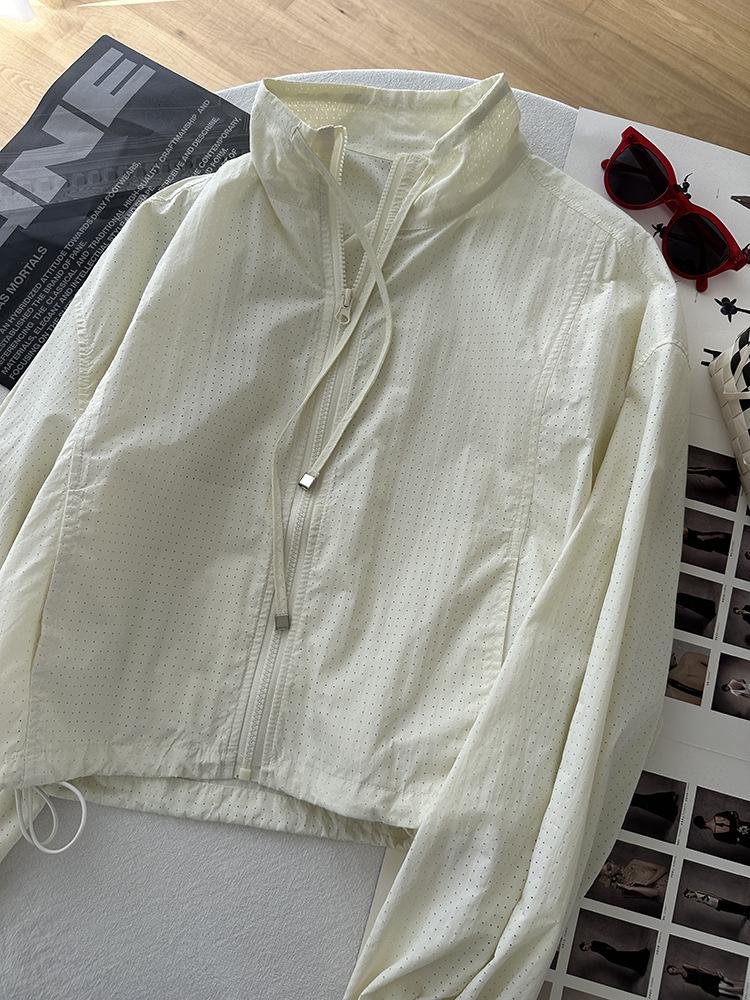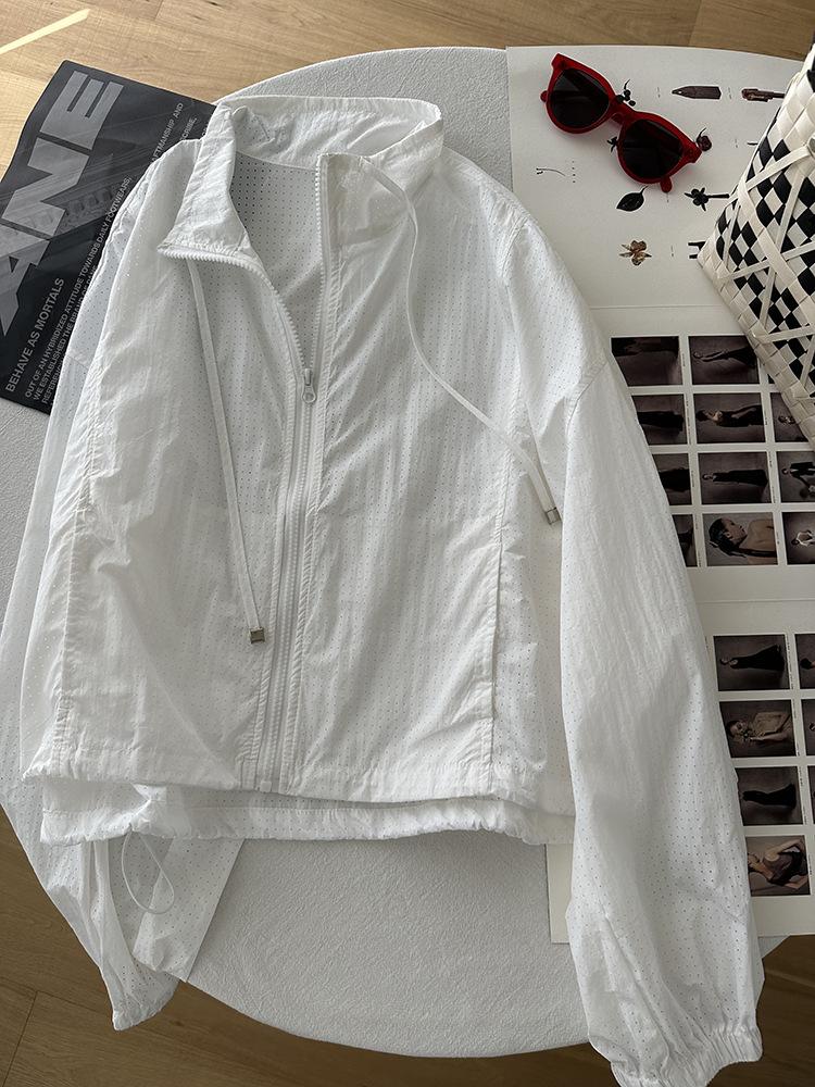 Ropa Protectora Solar de Cuello Blanco para Mujer Verano 2025 Nuevo Estilo Coreano Combinable Ajustada Corta Ligera Transpirable Chaqueta con Cremallera