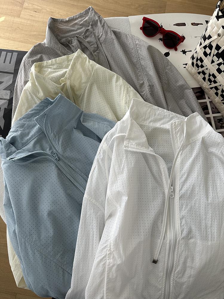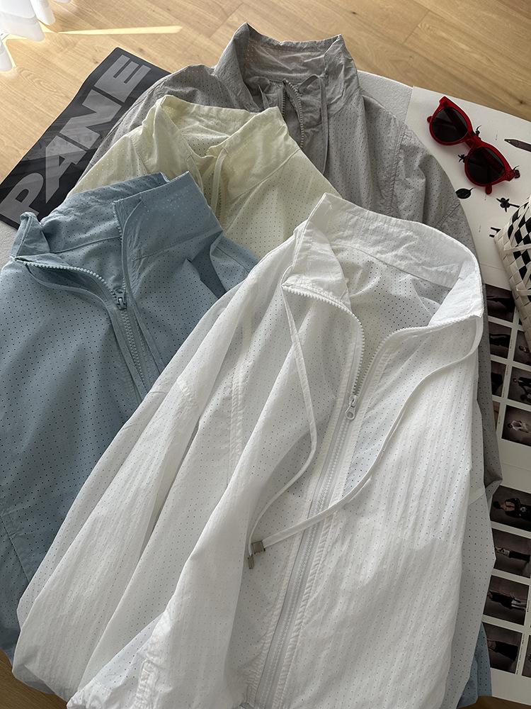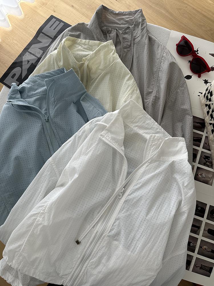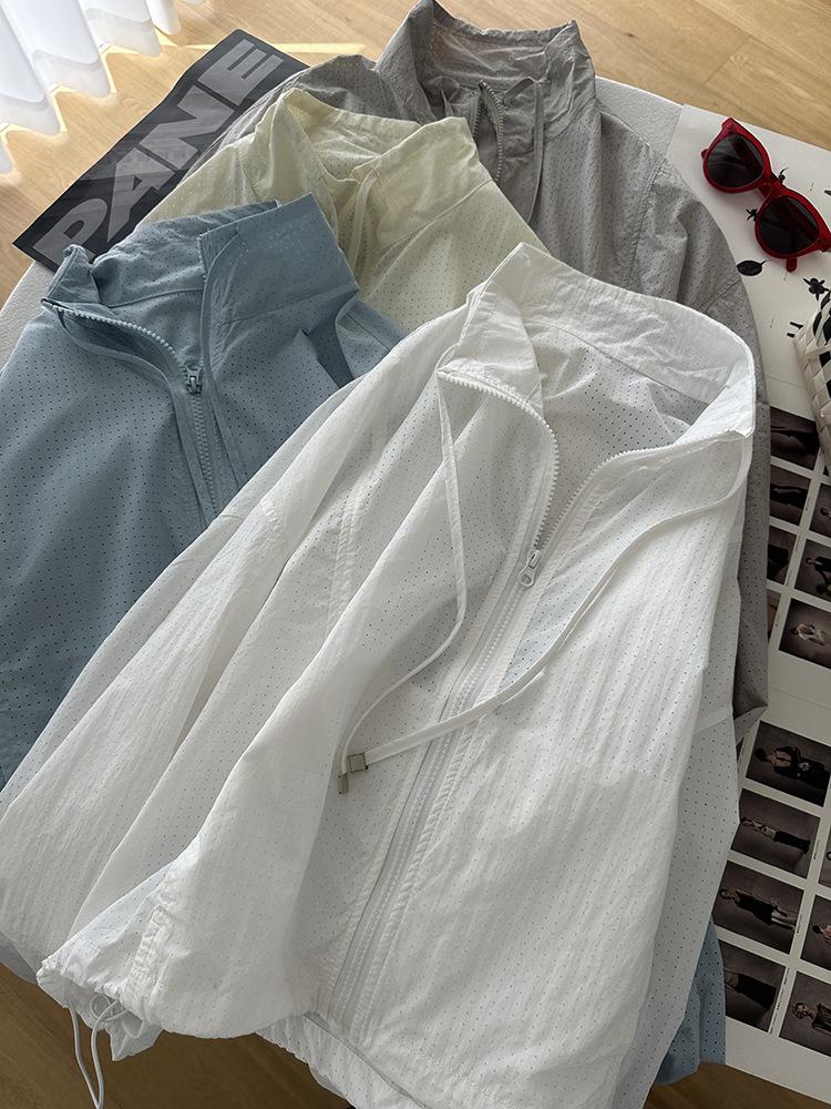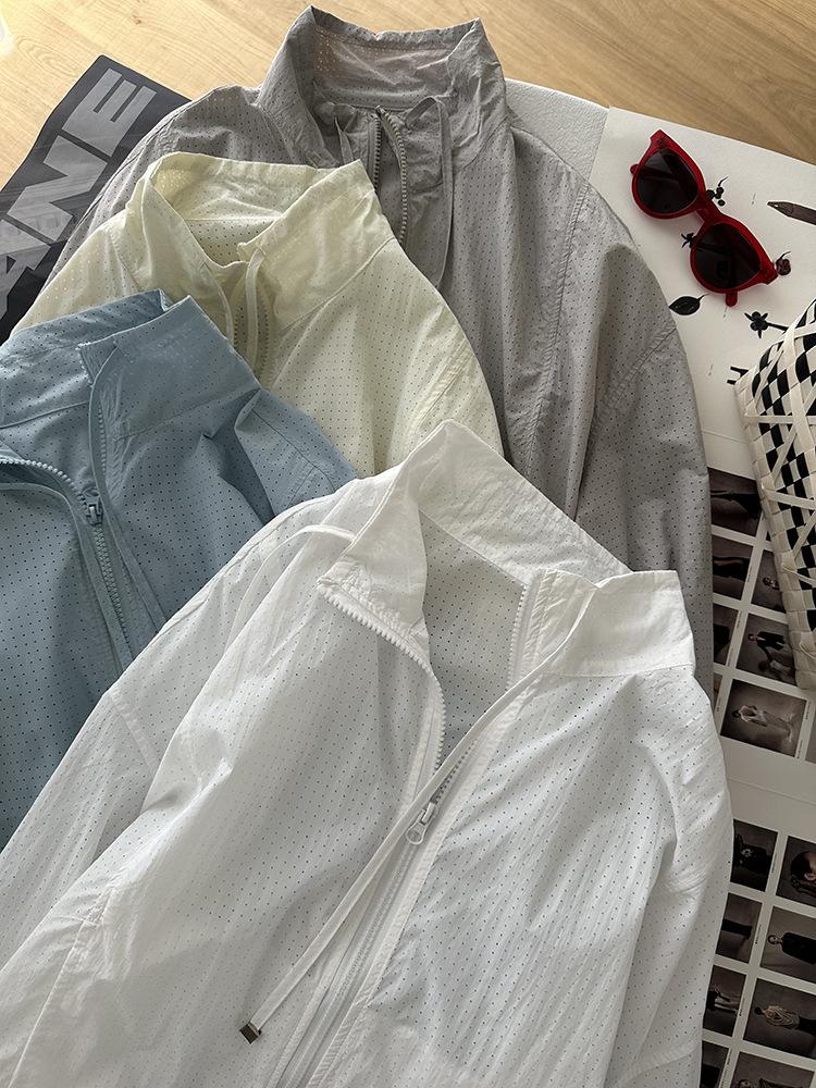 Ropa Protectora Solar de Cuello Blanco para Mujer Verano 2025 Nuevo Estilo Coreano Combinable Ajustada Corta Ligera Transpirable Chaqueta con Cremallera