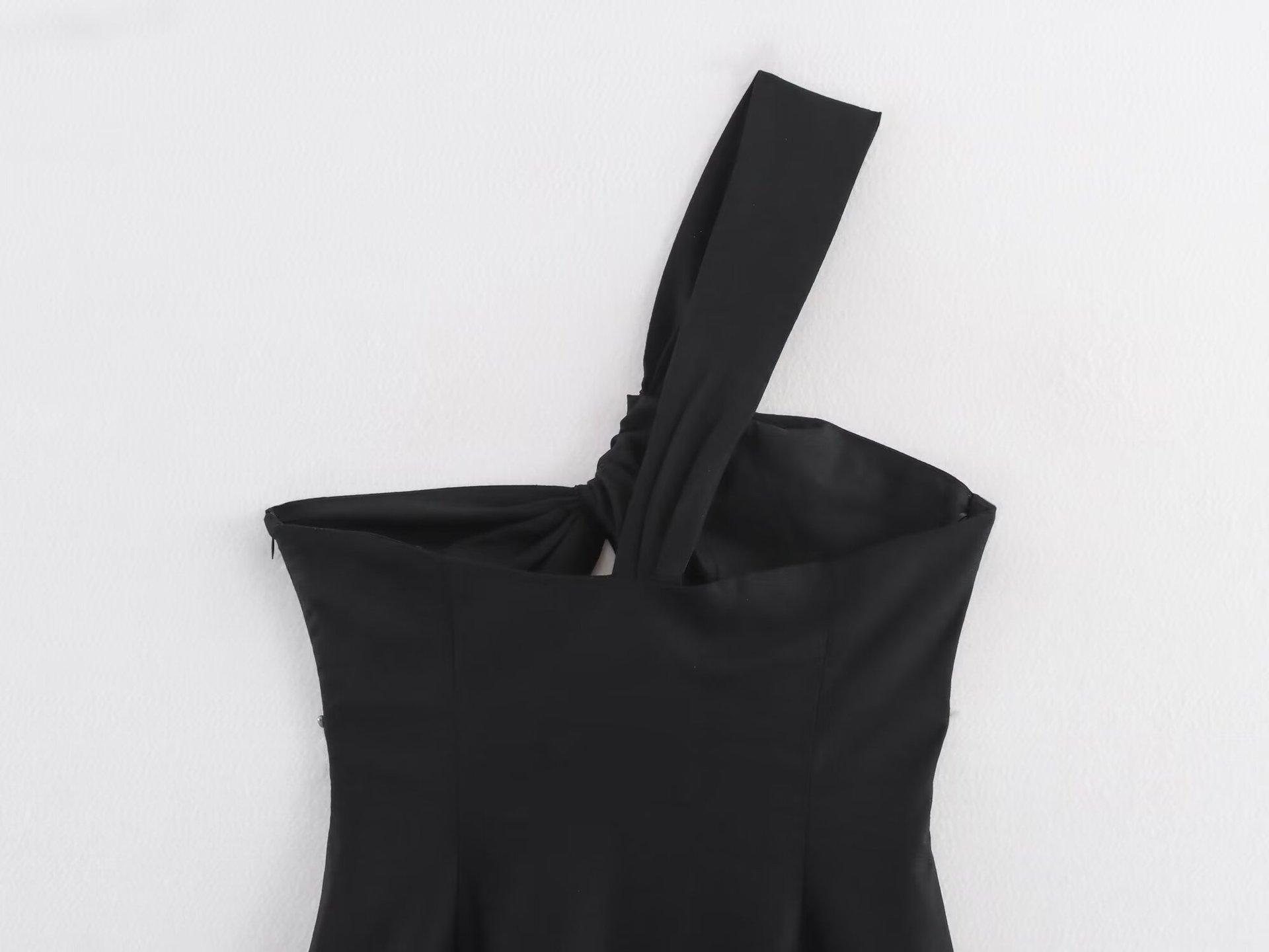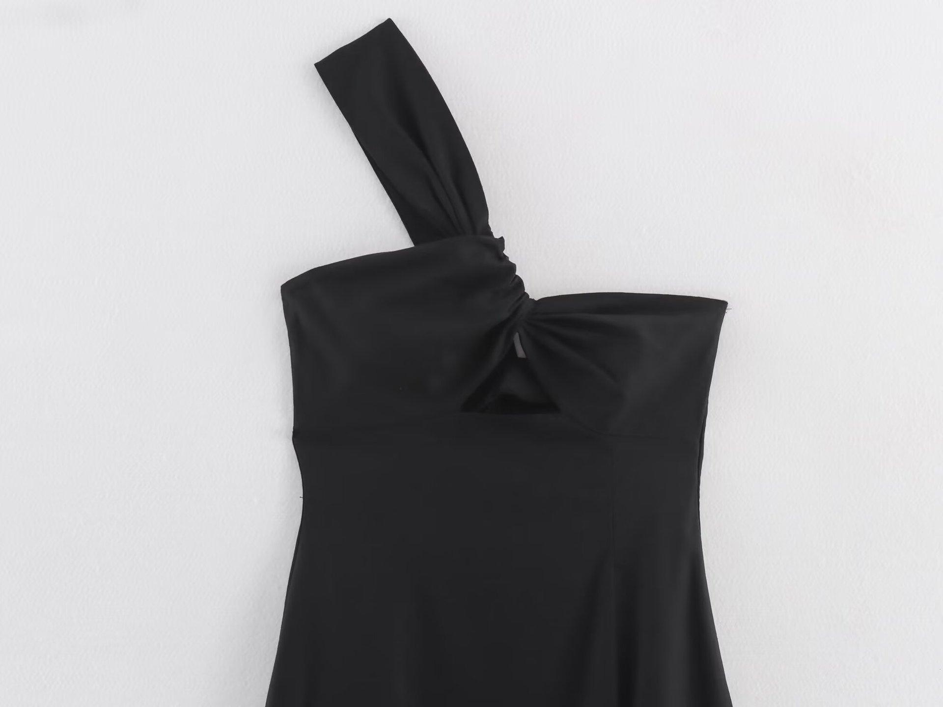 Transfronterizo 2025 estilo europeo y americano al por mayor verano nuevo vestido midi asimétrico de diseño abierto sin mangas para mujer